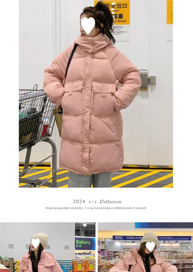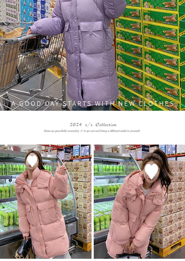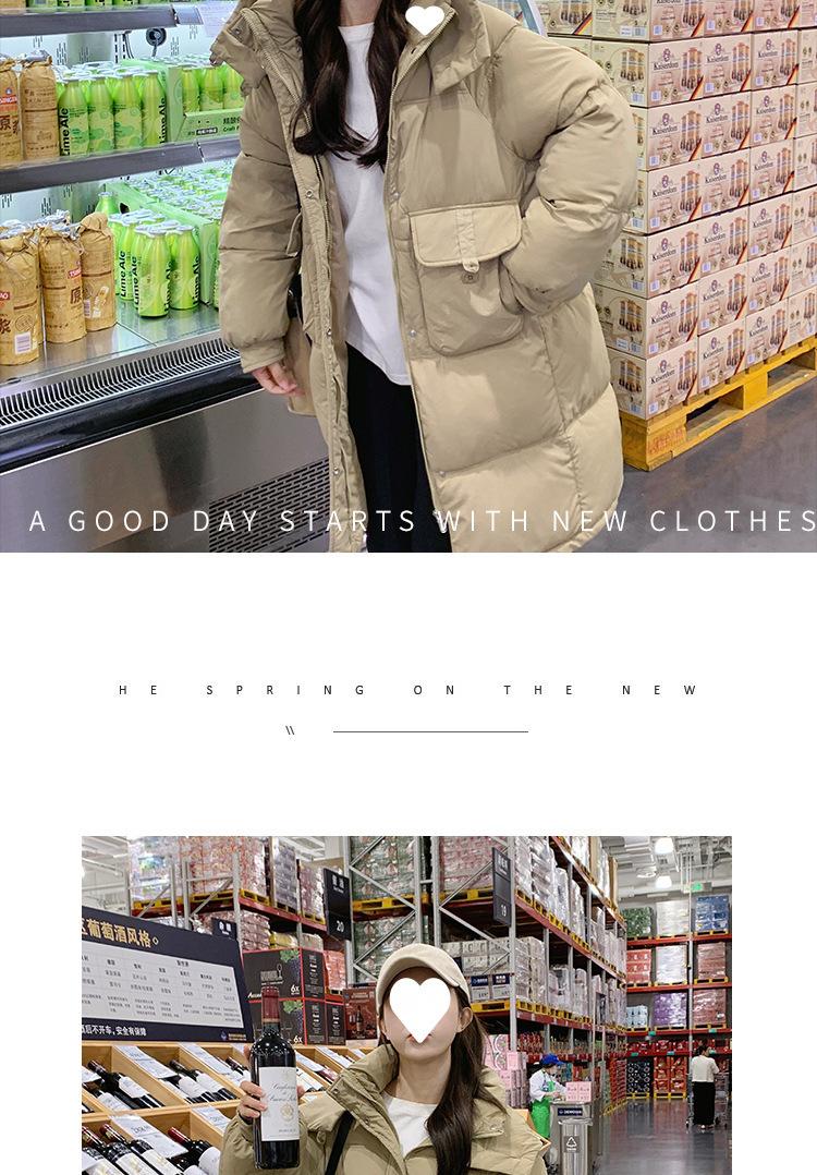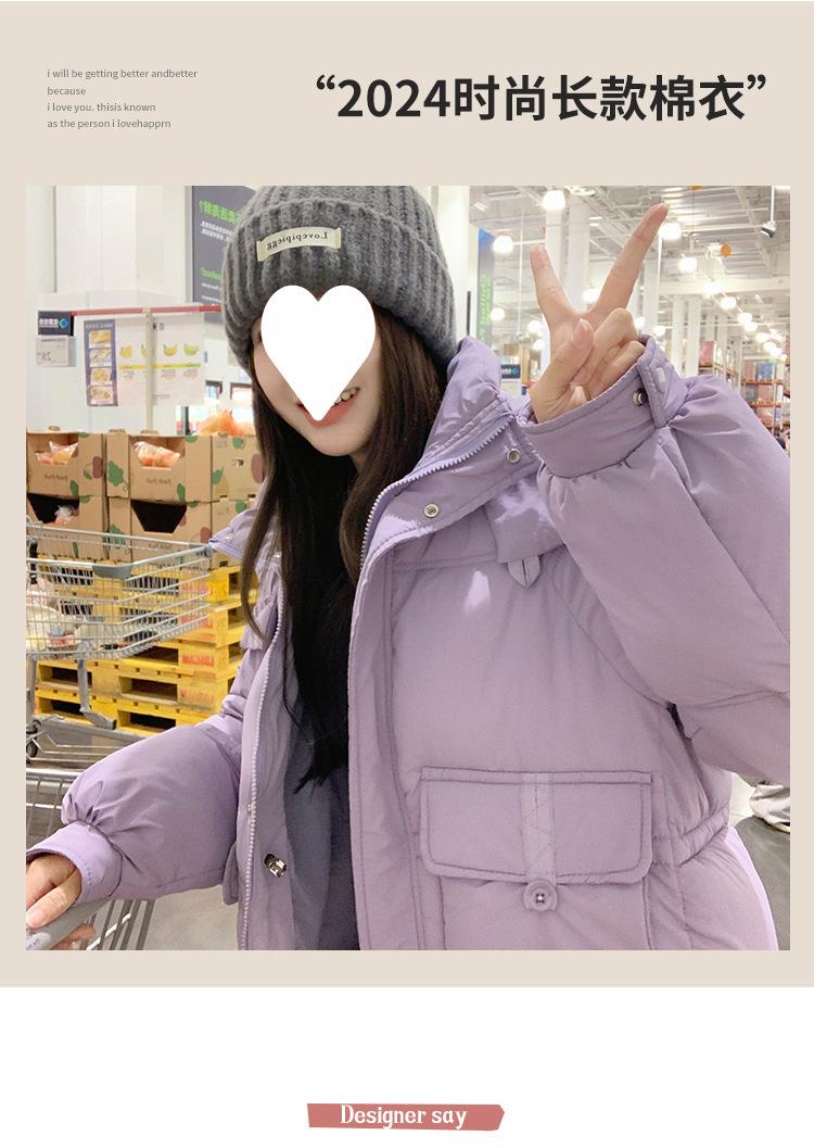 Abrigo de Algodón para Mujer de Largo Medio 2024 Invierno Nuevo Estilo Coreano Holgado Adelgazante con Capucha Grueso Cálido Abrigo Exterior para Mujer