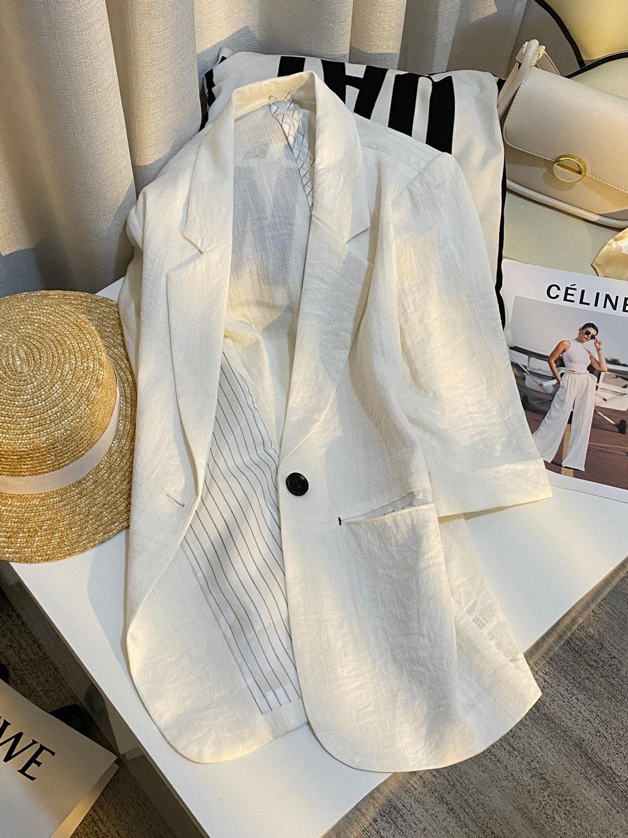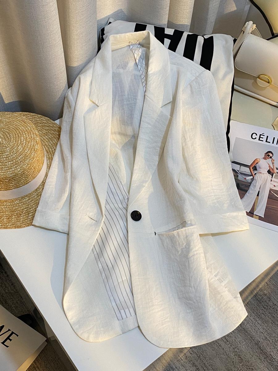 2025 Nuevo Blazer Blanco de Verano para Mujer Diseño Simple Elegante Nicho Casual Ropa de Trabajo Top a la Moda
