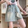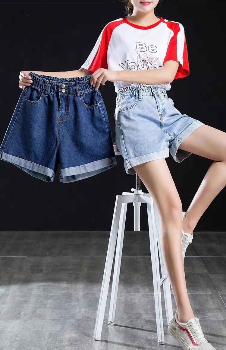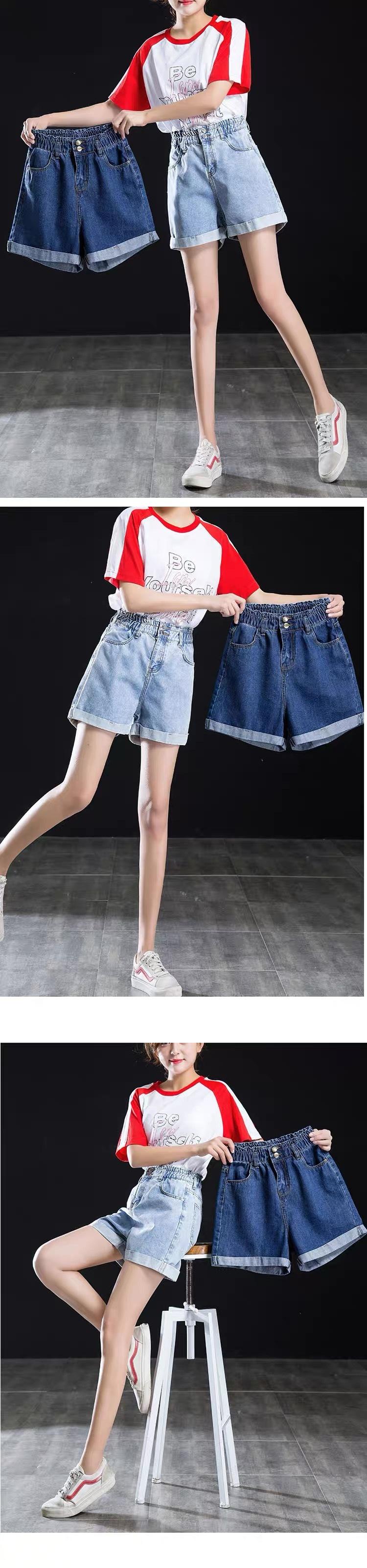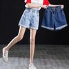 Shorts de Mezclilla 2025 Verano Delgados mm Elásticos Talla Grande Nuevos Slim Cintura Alta Sueltos Pierna Ancha con Dobladillo Pantalones Cortos Calientes para Mujer