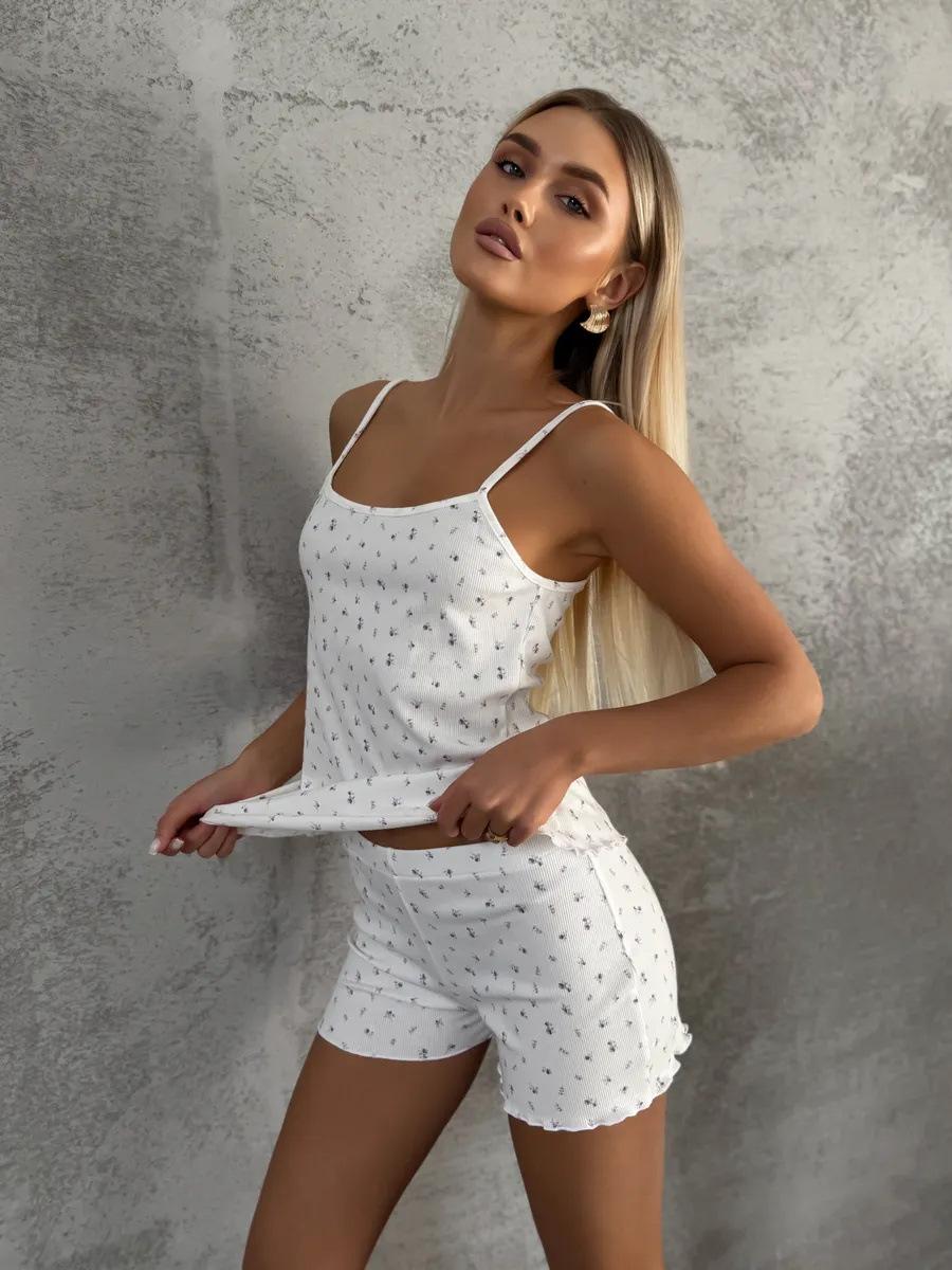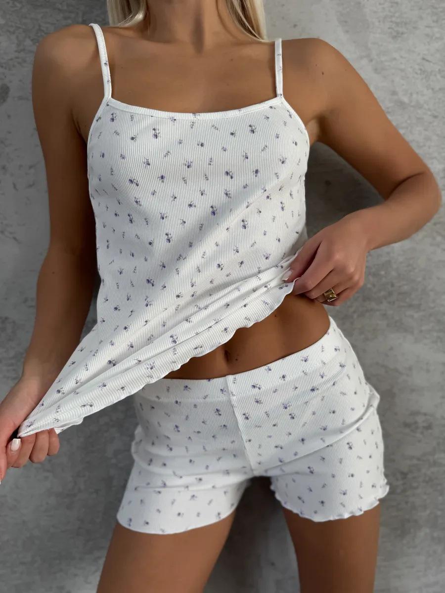 Traje estilo europeo y americano Top con tirantes Shorts Pijama Ropa de casa cómoda floral dulce de alta gama para mujer Verano Nuevo