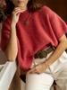 Amazon Europeo y Americano Transfronterizo Suave y Esponjoso Estilo Coreano Nuevos Tops Retro Cuello Redondo Manga Corta Suéteres y Tops de Punto