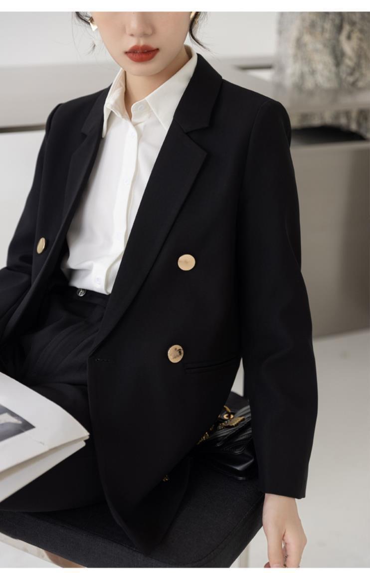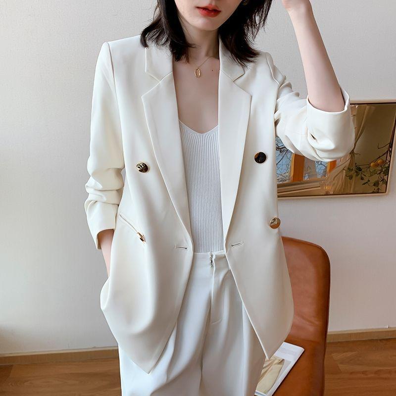 Nuevo temperamento de moda femenina doble botonadura corte ajustado chaqueta de traje pequeña blazer ropa exterior para primavera y otoño
