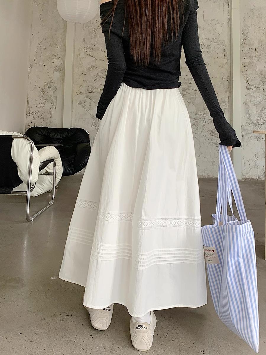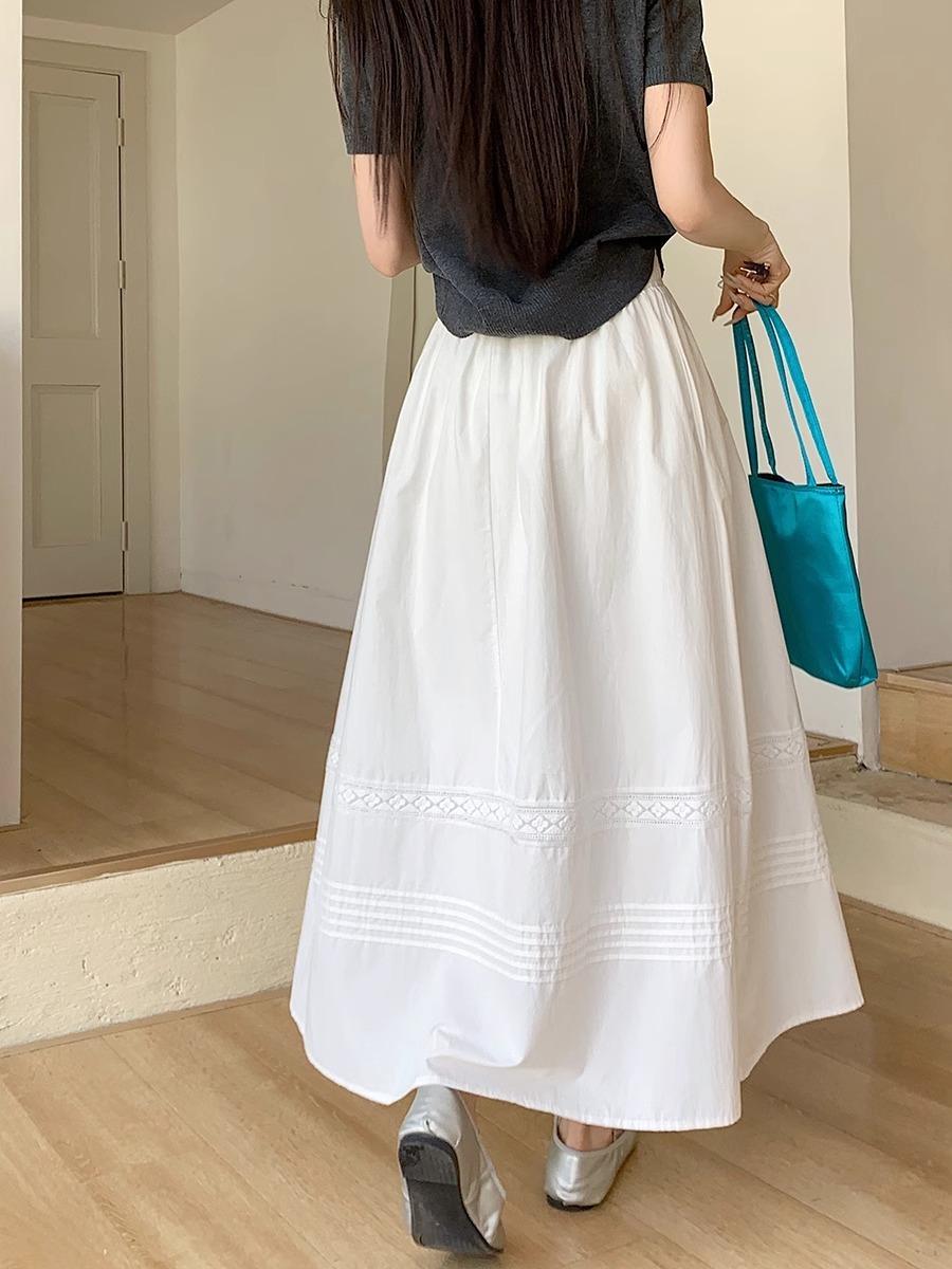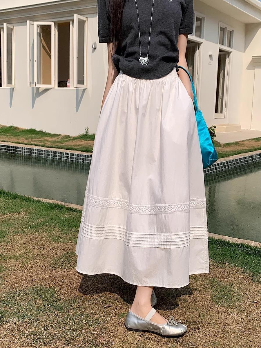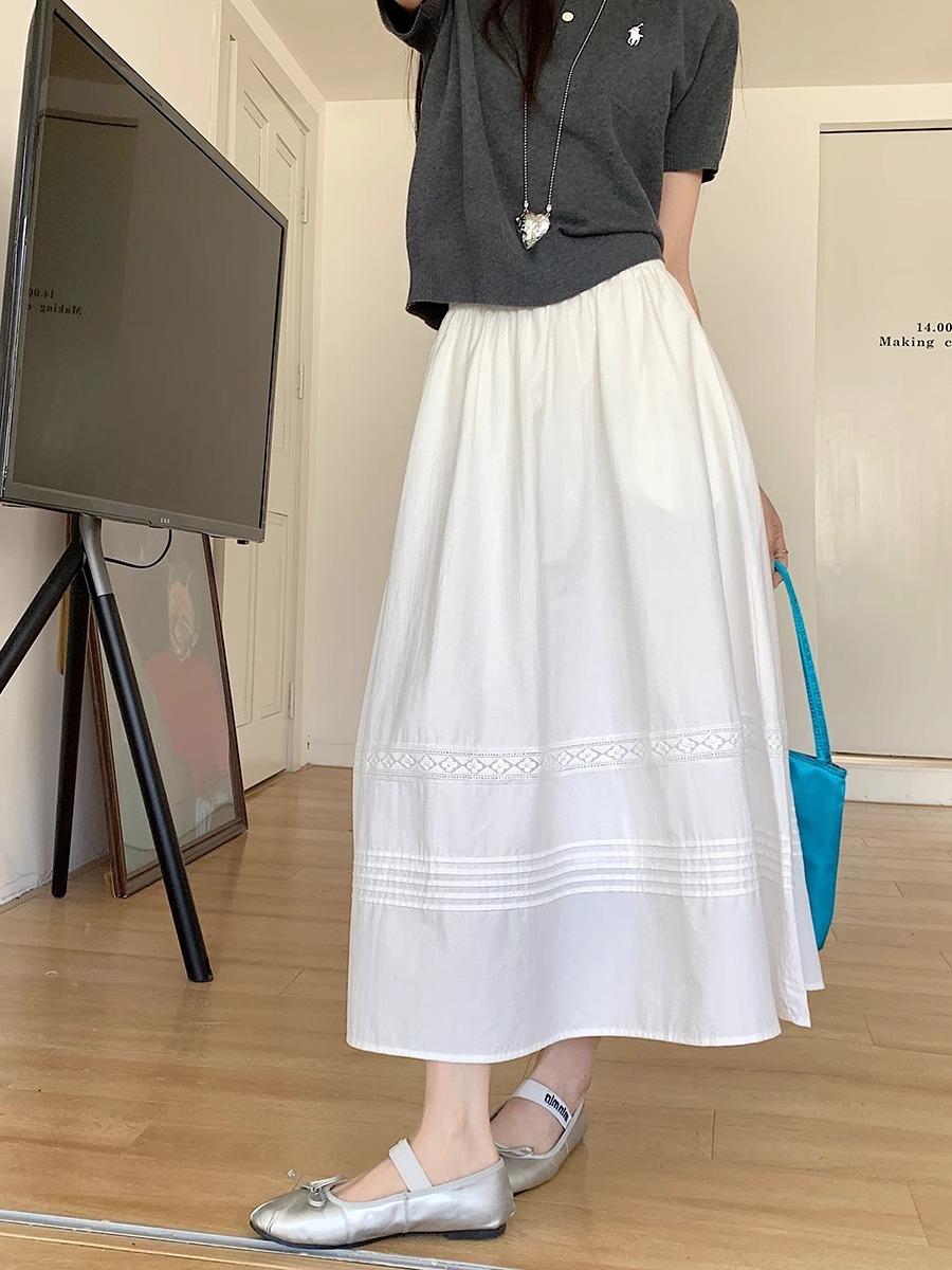 Falda Blanca de Largo Medio con Encaje Empalmado de Estilo Suave y Relajado para Mujer Estilo Hong Kong Verano Cubre Caderas Falda Larga A-Line
