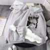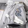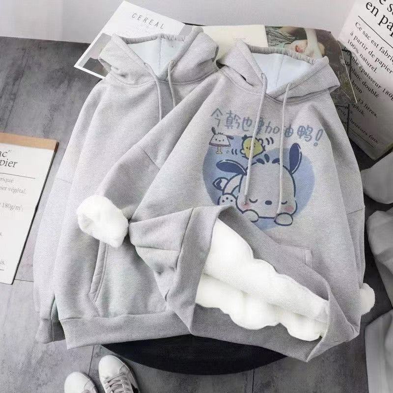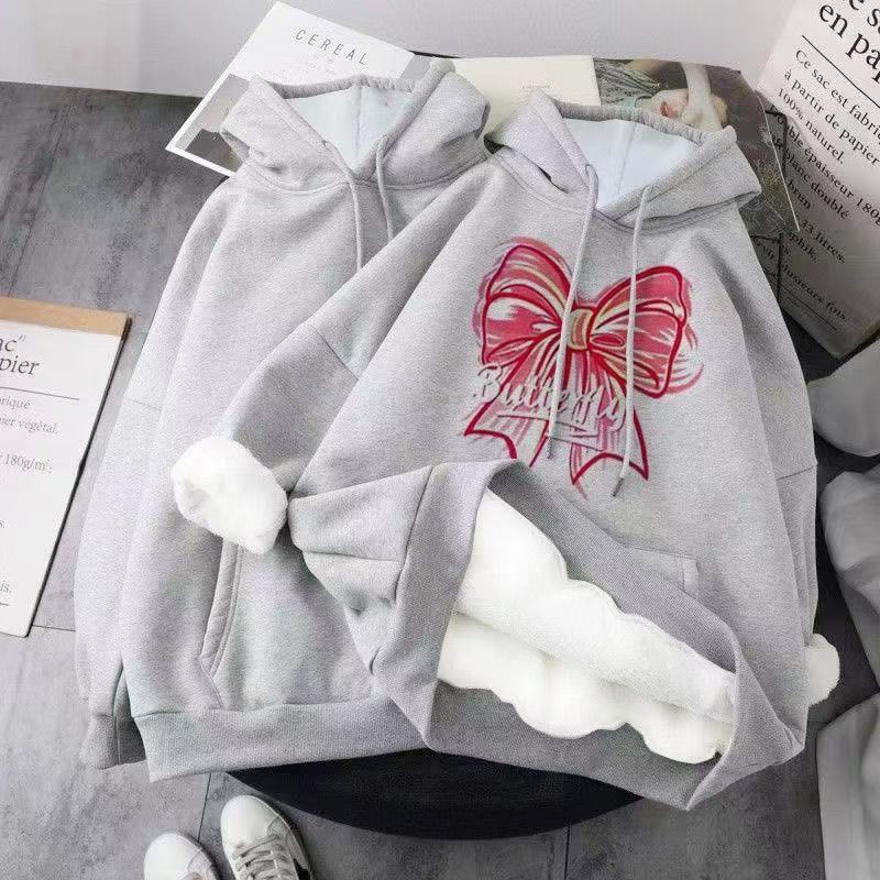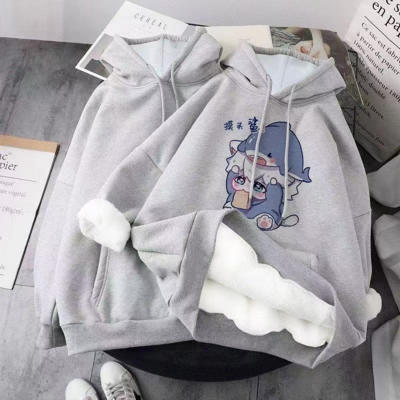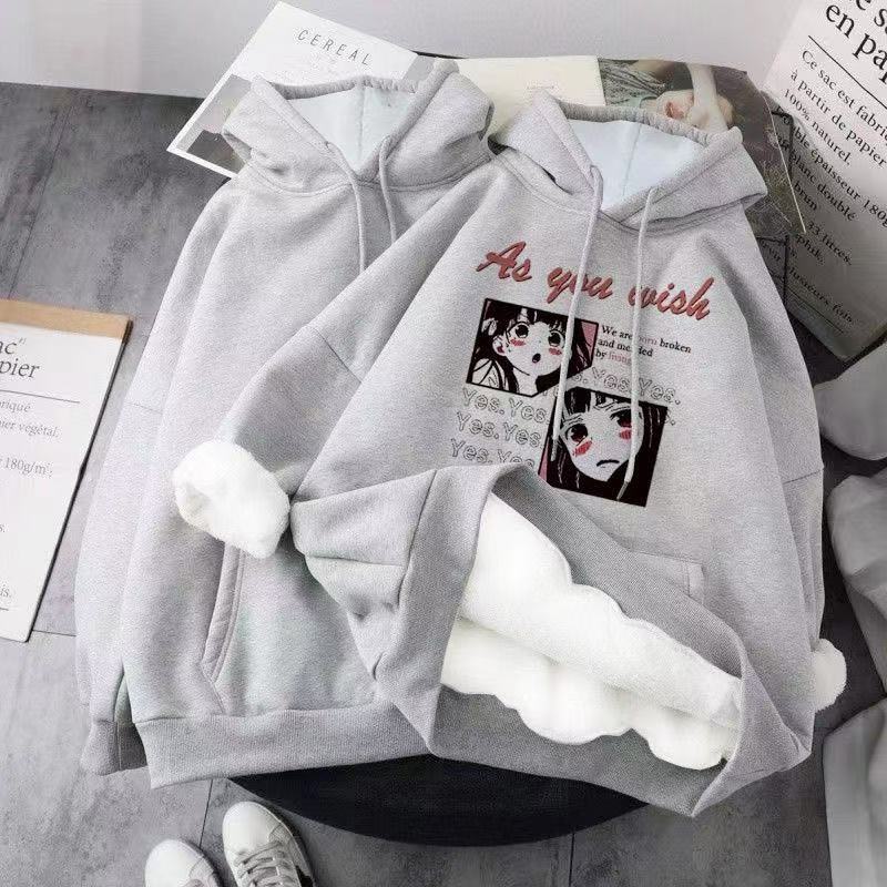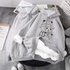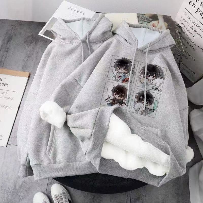 Mask Bear【Gray Fleece-lined】, Smiling Girl【Gray with Fleece】, Black font [gray plus velvet], Blue girl【Gray fl...
