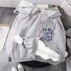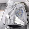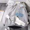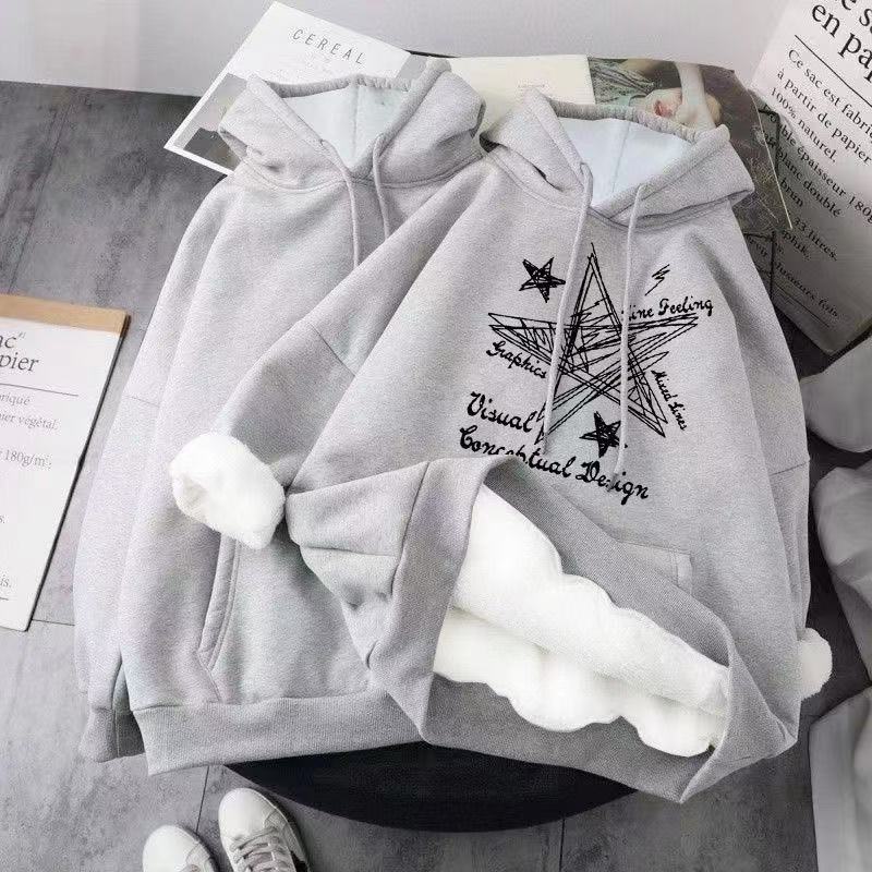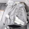 Sudadera con capucha forrada de polar sin pilling para mujer otoño/invierno estilo universitario casual con letras cool moderna holgada para estudiante