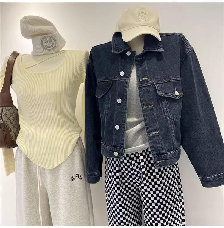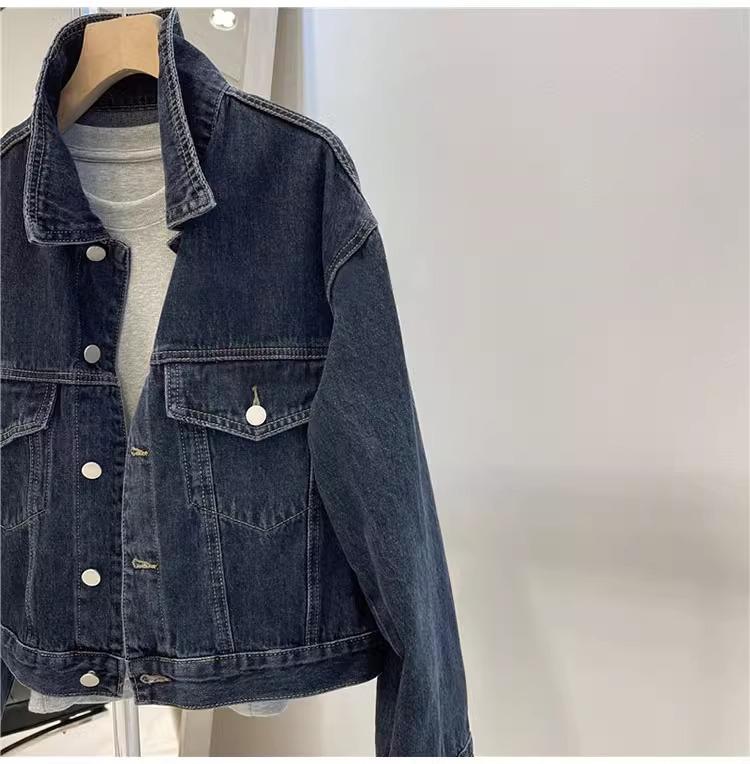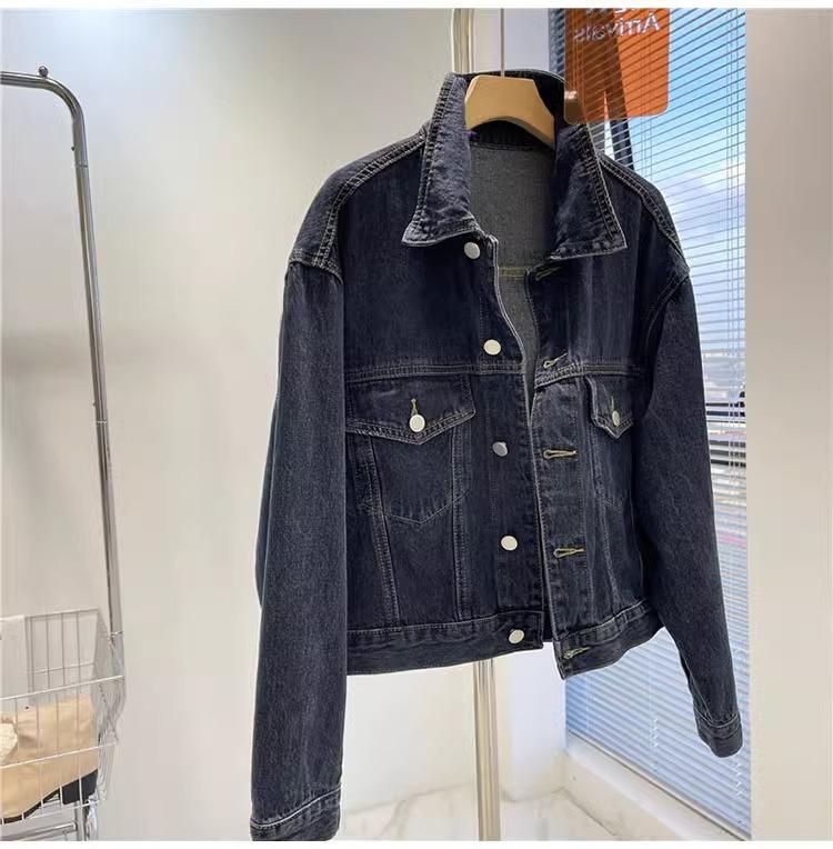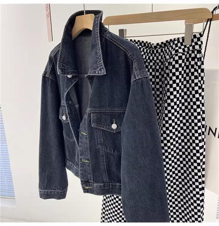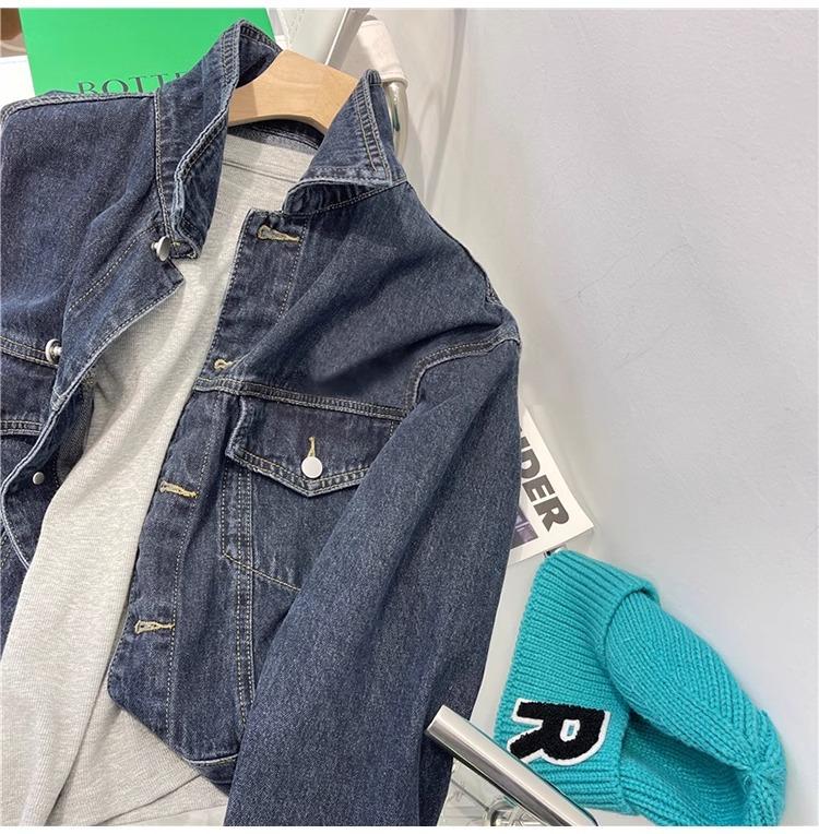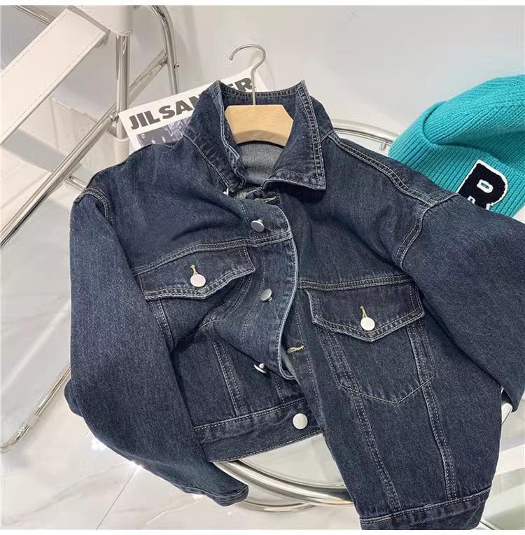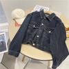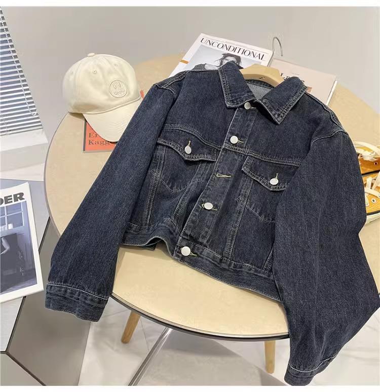 Chaqueta corta de mezclilla para mujer 2024 primavera nueva talla pequeña adelgazante temperamento nicho solapa chaqueta retro top