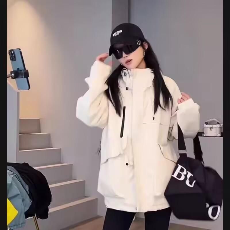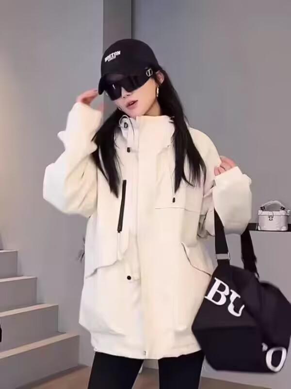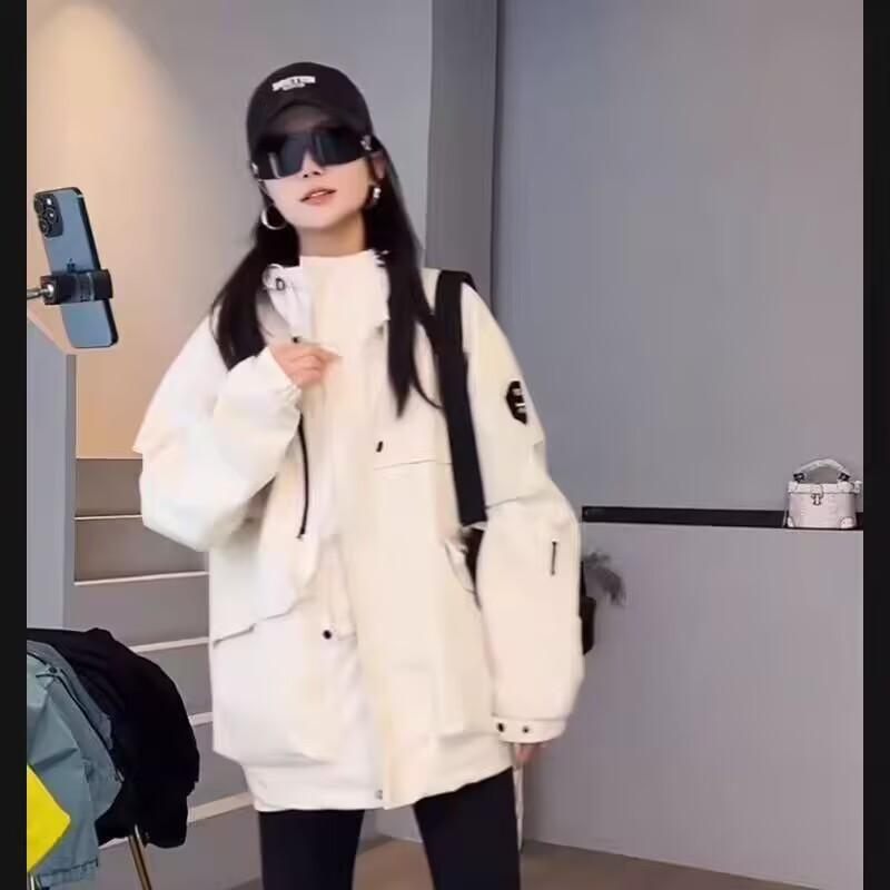 2025 Otoño Nueva Moda Versátil Suelta Adelgazante Chic Chaqueta Cortavientos Casual con Capucha para Mujer Top de Moda