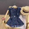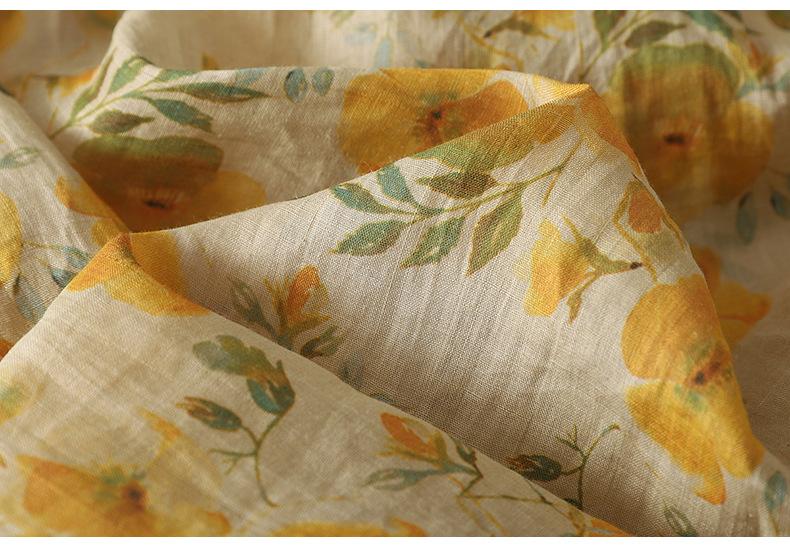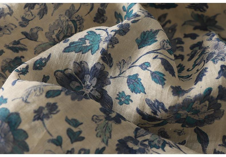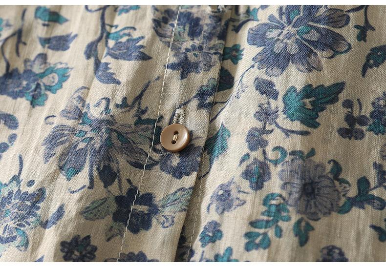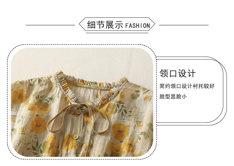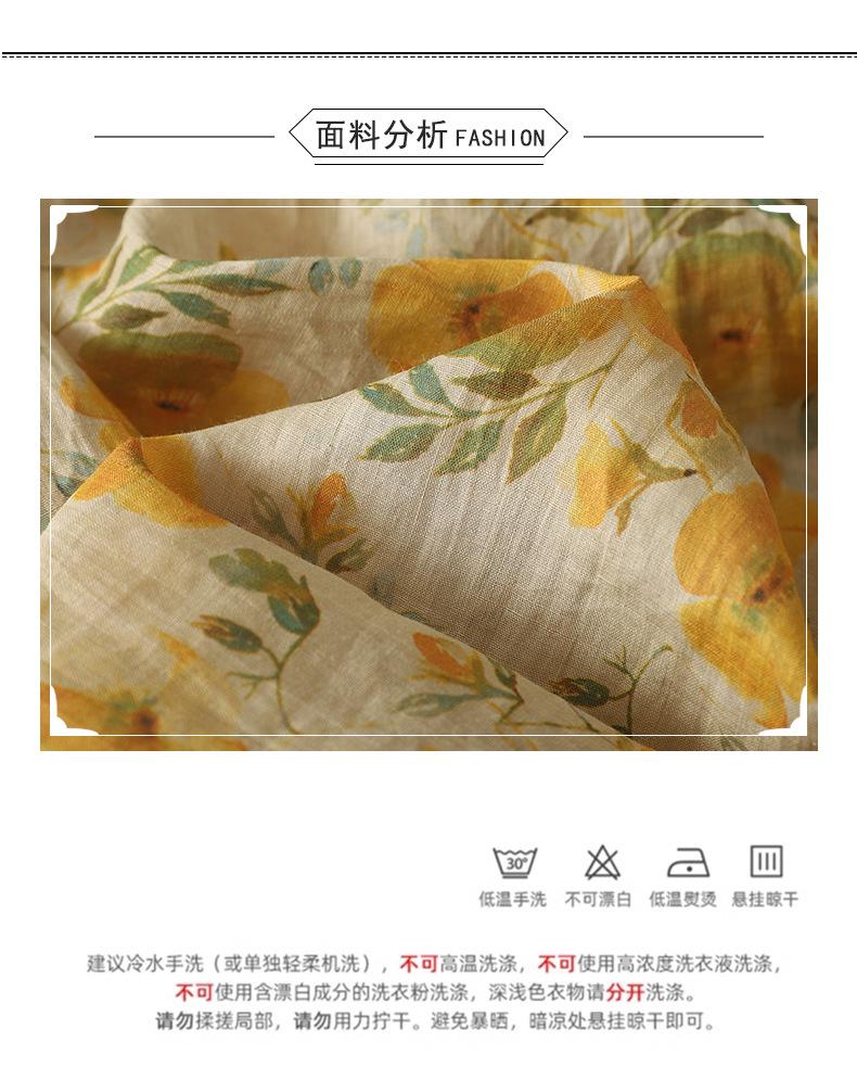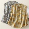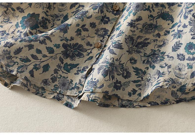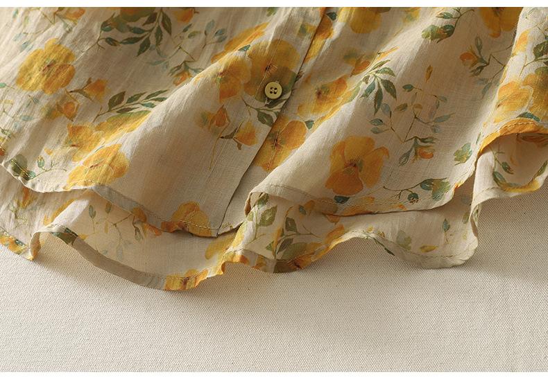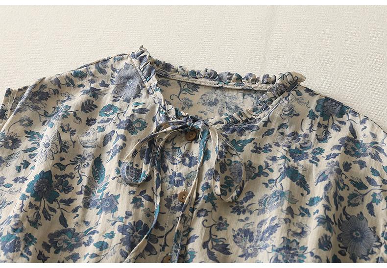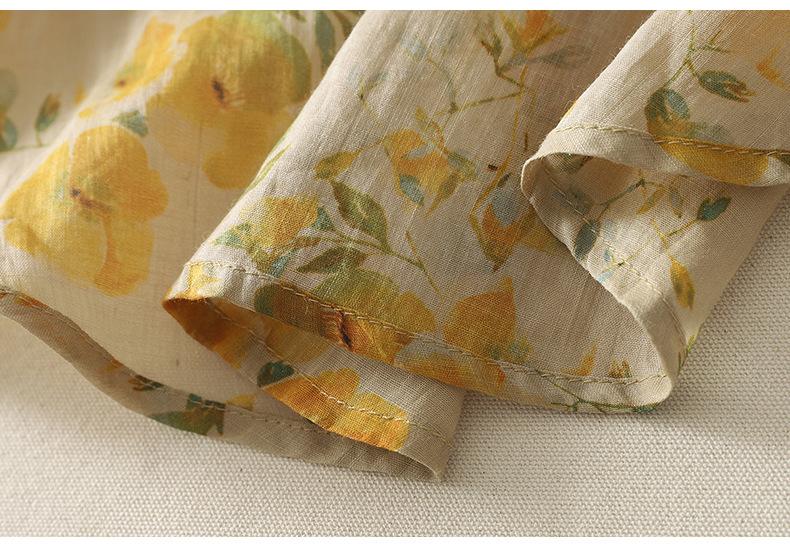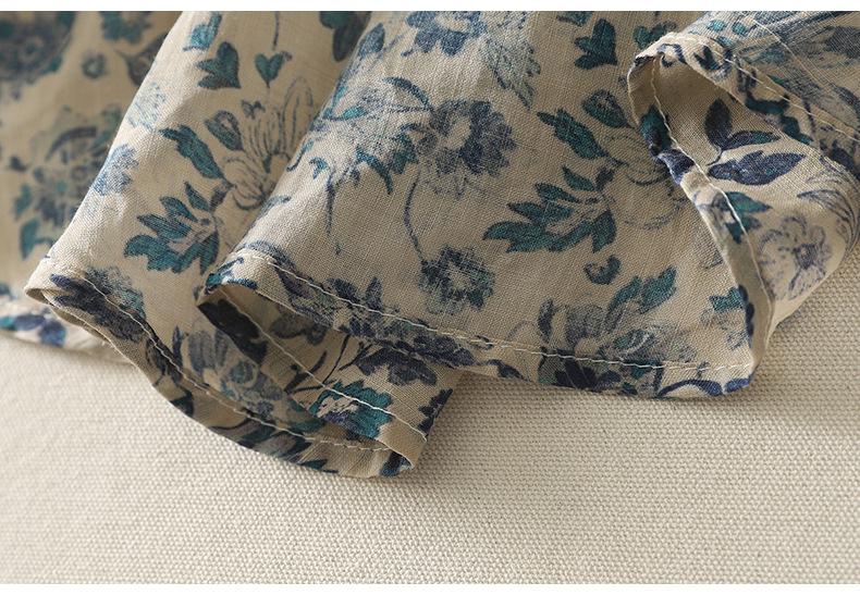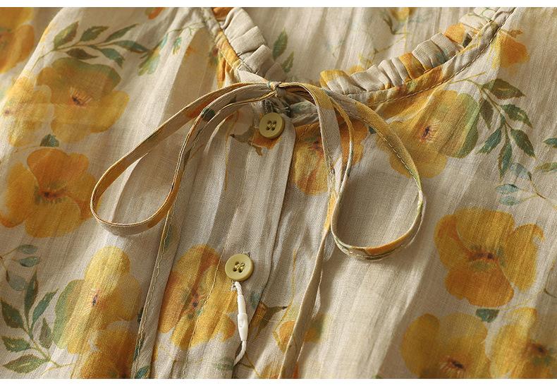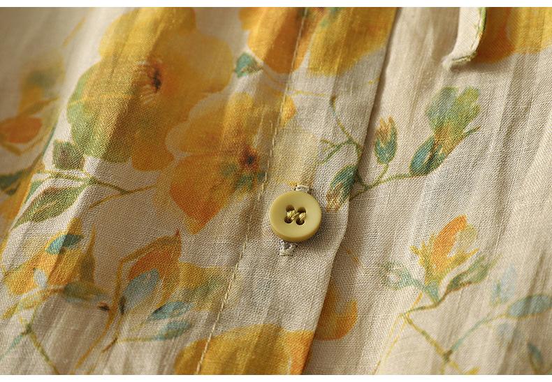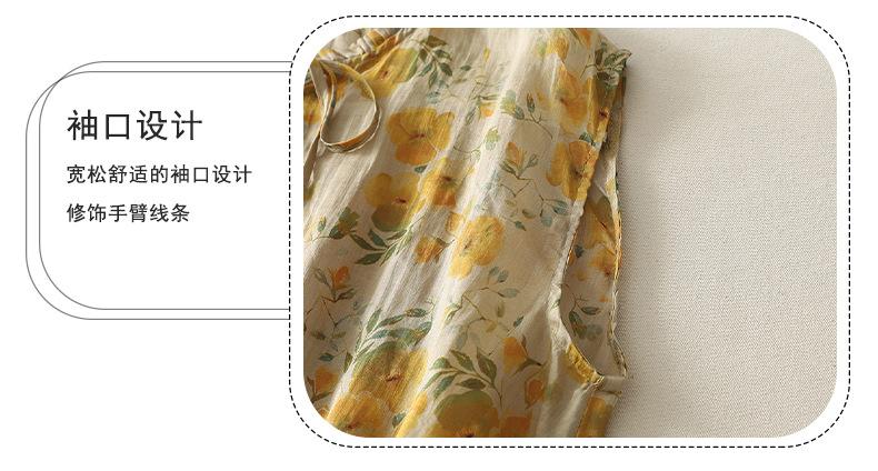 2025 Verano Nuevo Versátil Estilo Literario Estampado Lazo Cuello Botones Sin Mangas Algodón Lino Blusa