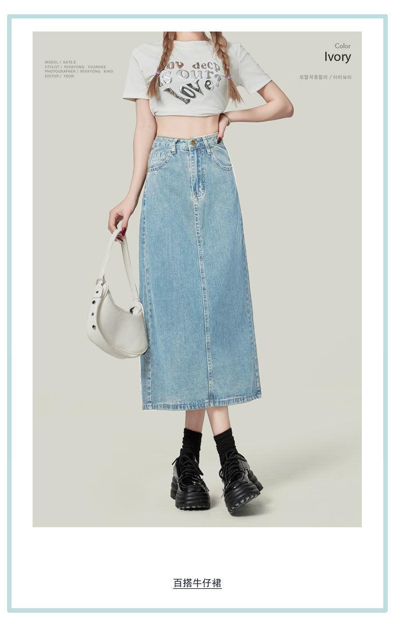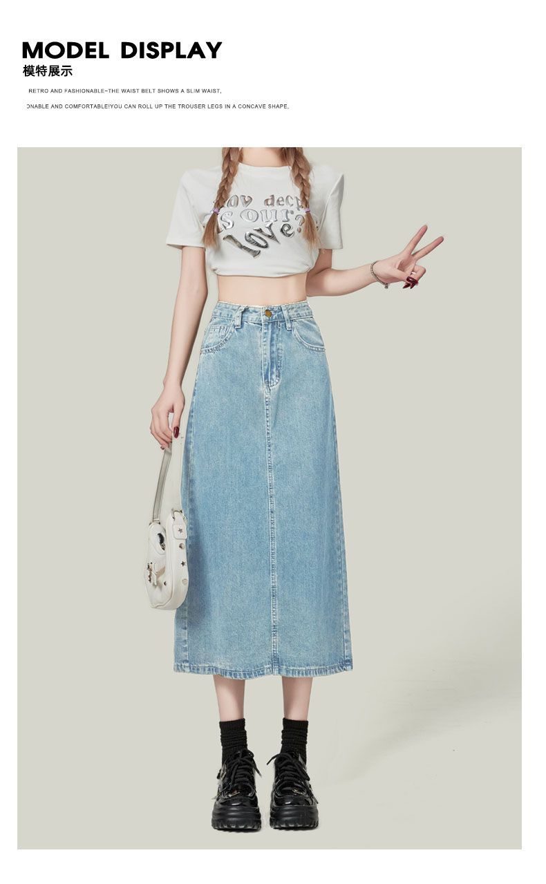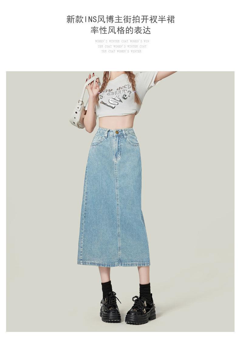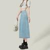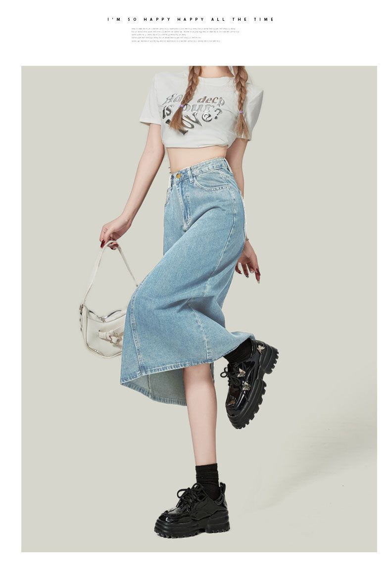 Falda de Mezclilla Dividida para Mujer 2025 Combinación con Todo Nueva Llegada azul claro Falda Línea A Pequeña Adelgazante Media Longitud Falda de Cadera