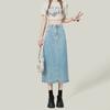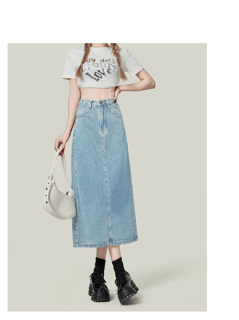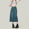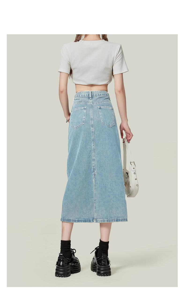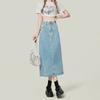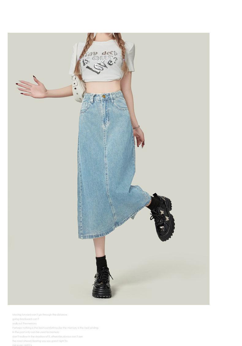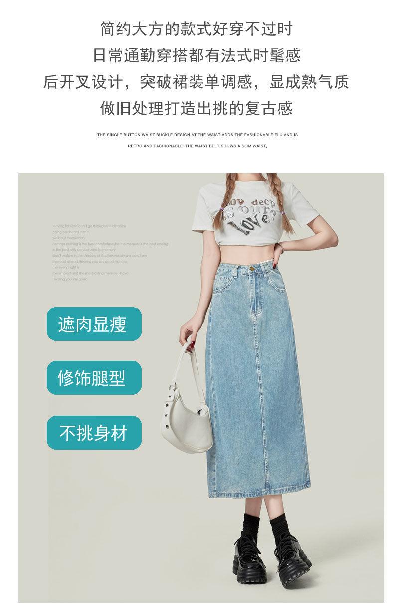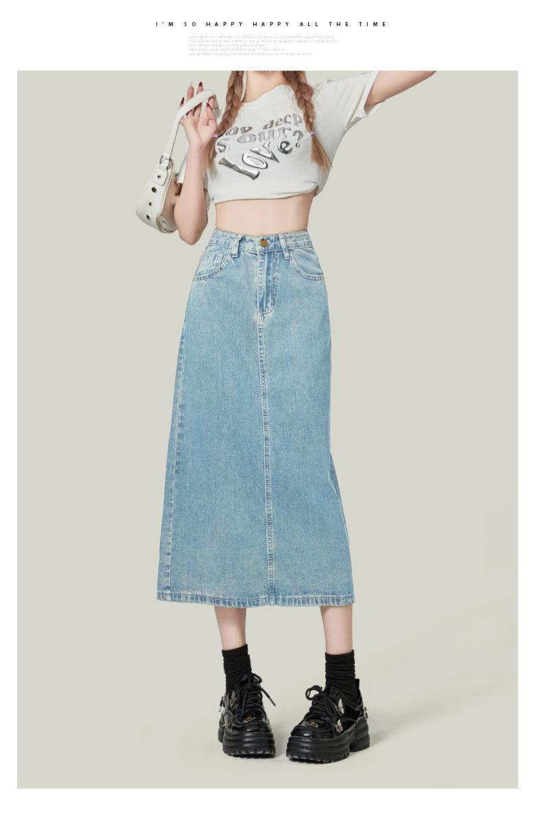 Falda de Mezclilla Dividida para Mujer 2025 Combinación con Todo Nueva Llegada azul claro Falda Línea A Pequeña Adelgazante Media Longitud Falda de Cadera