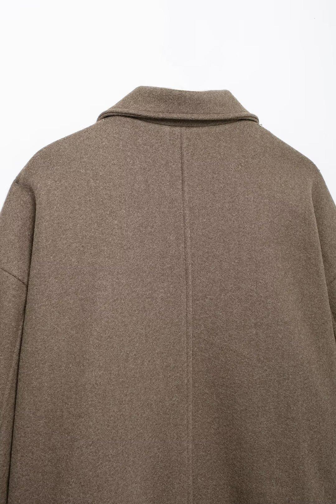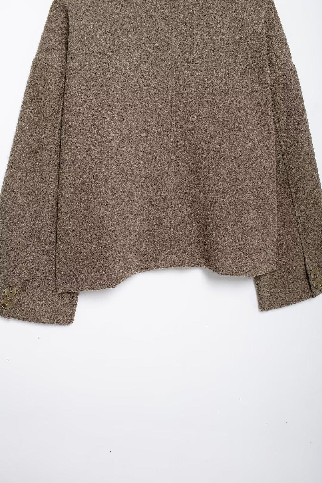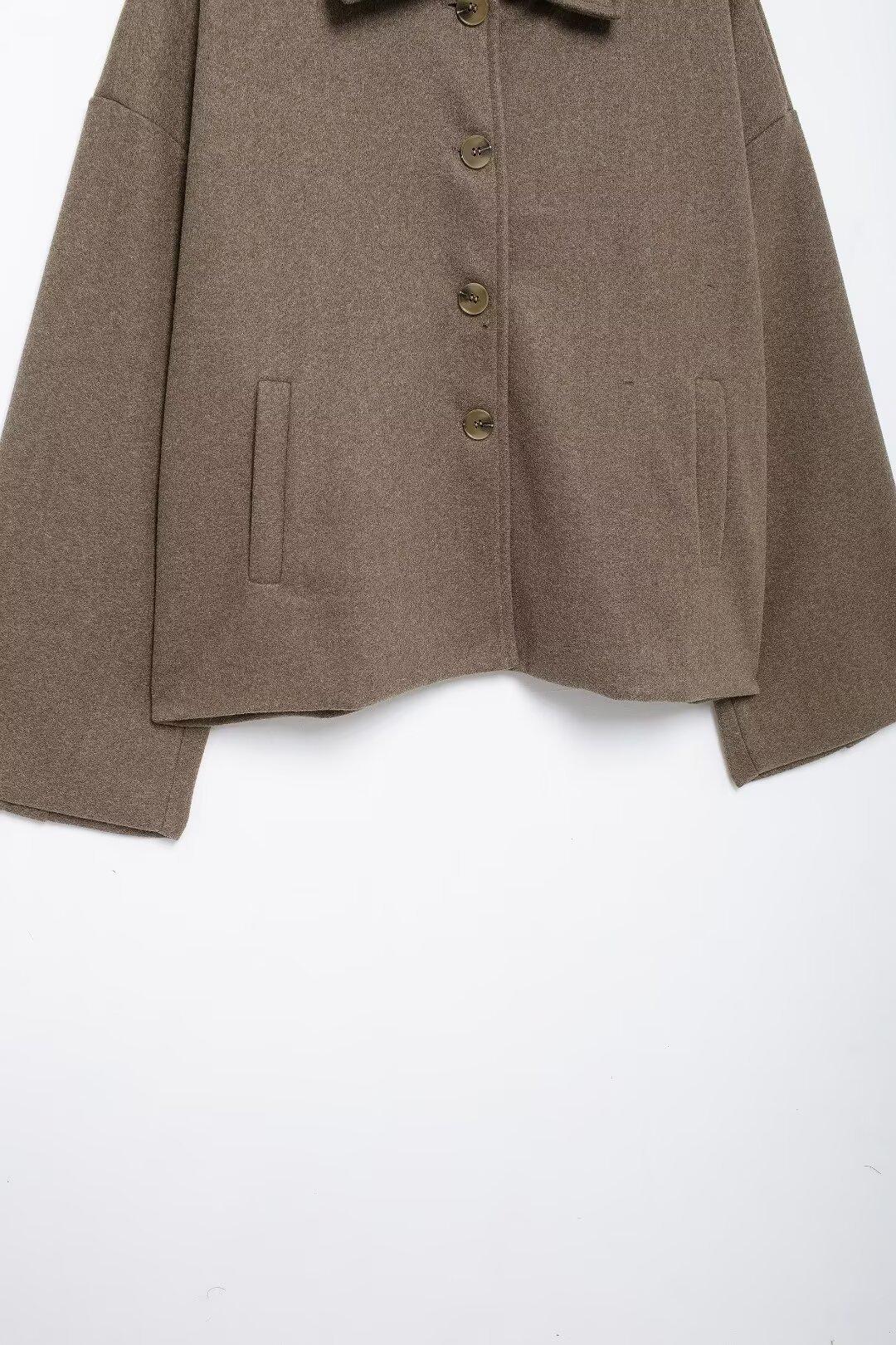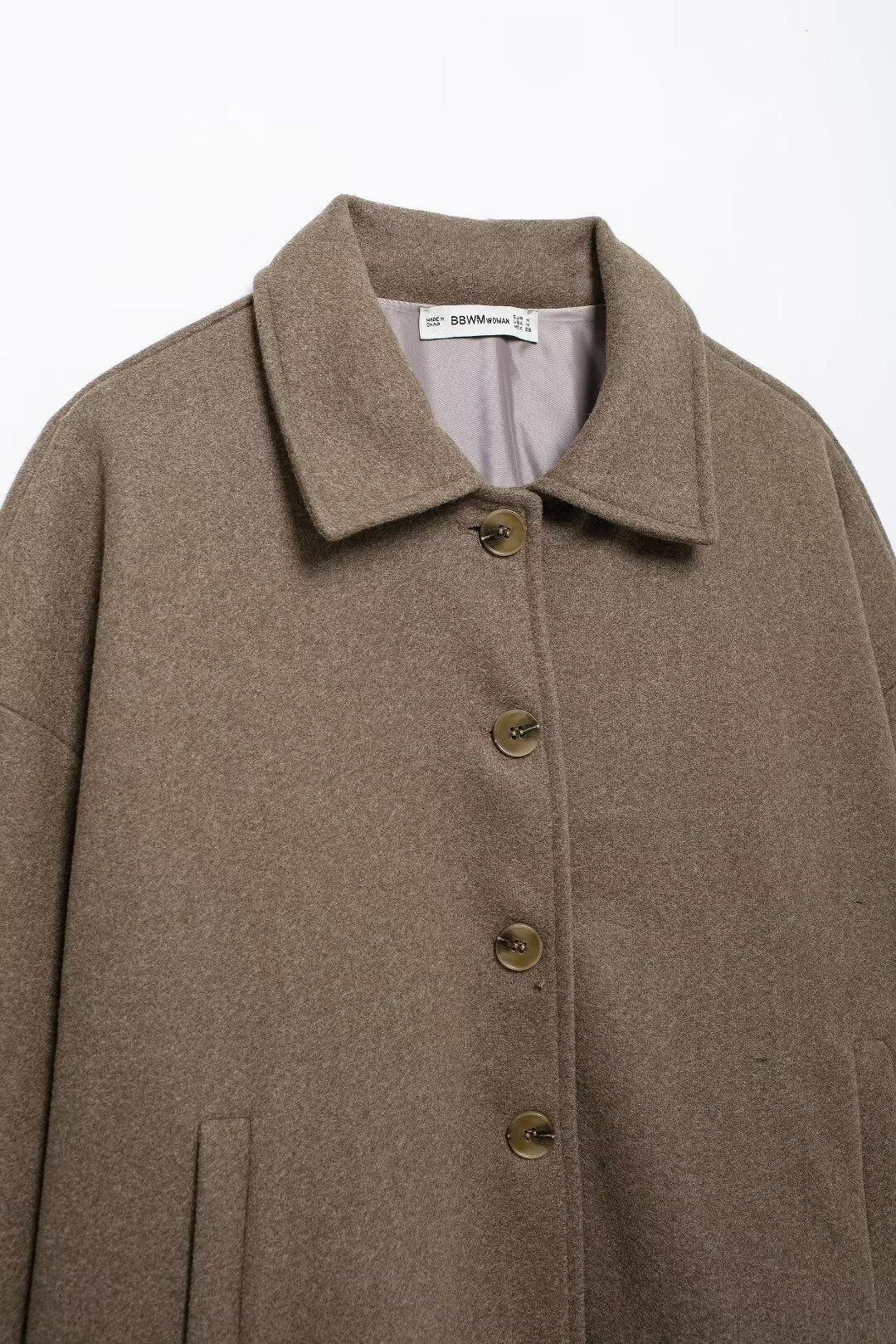 Ropa de Otoño para Mujer 2024 Nuevo Estilo Europeo y Americano Moda Simple Versátil Camisa Corta con Cuello Chaqueta de Lana