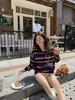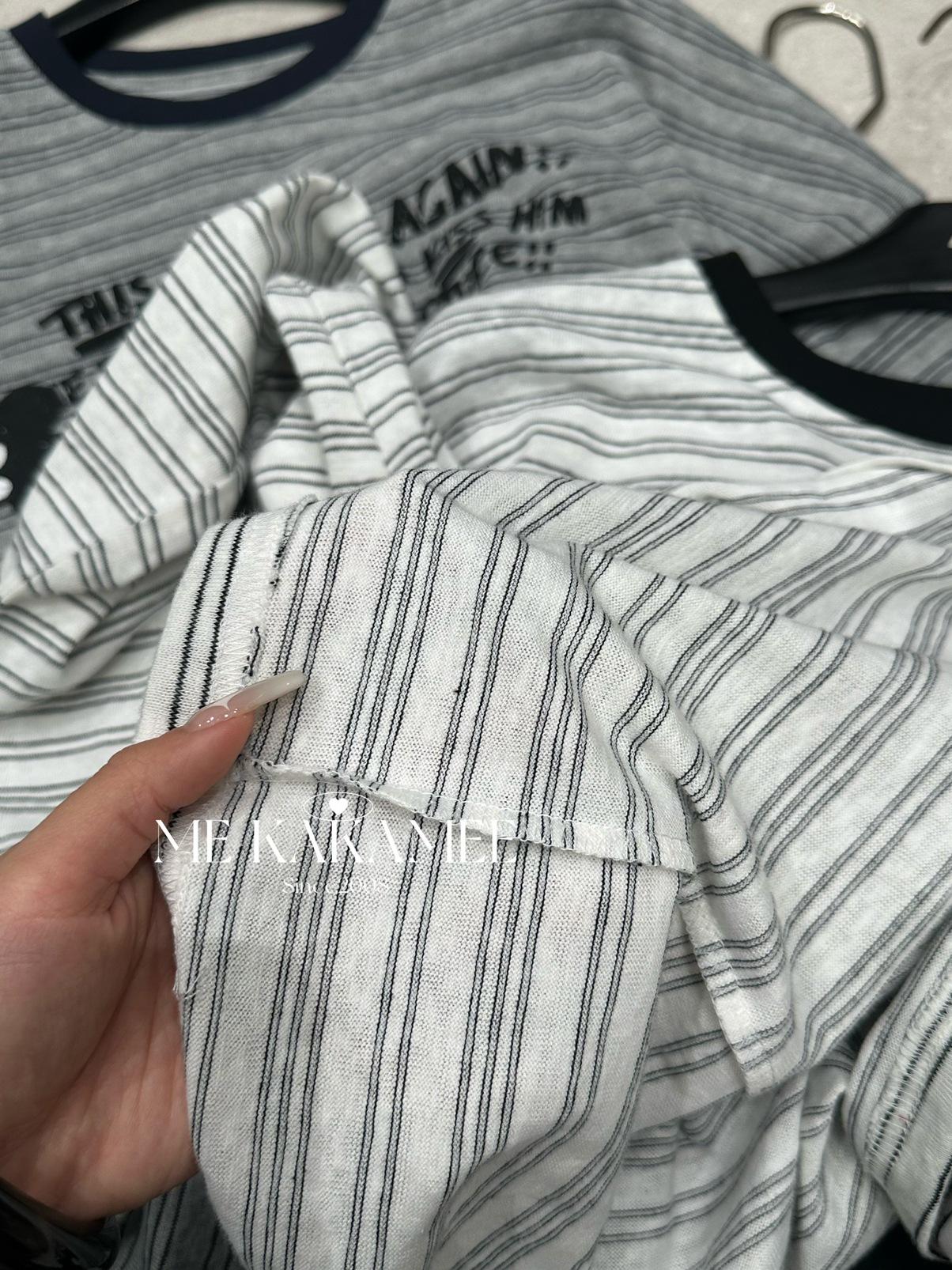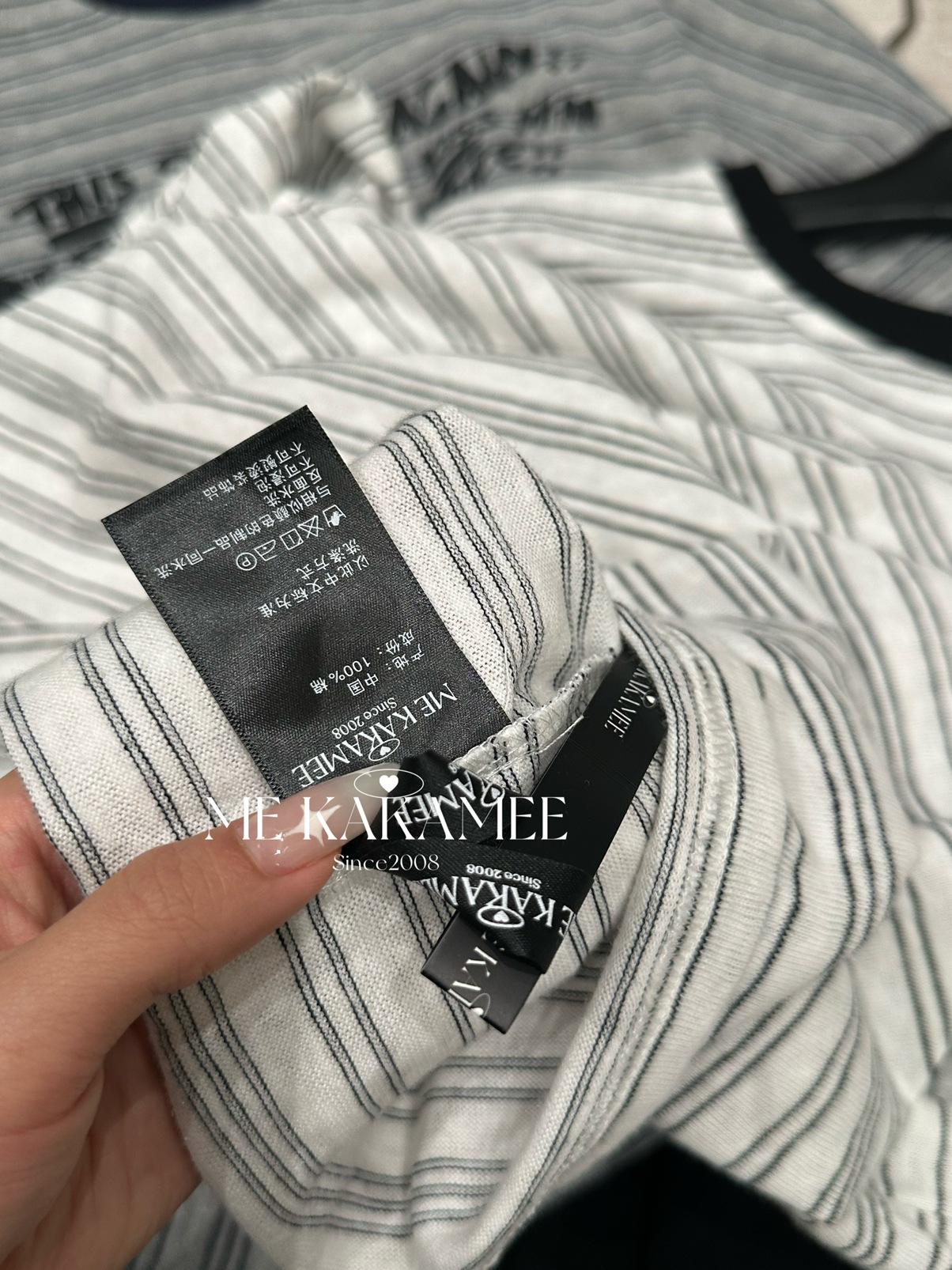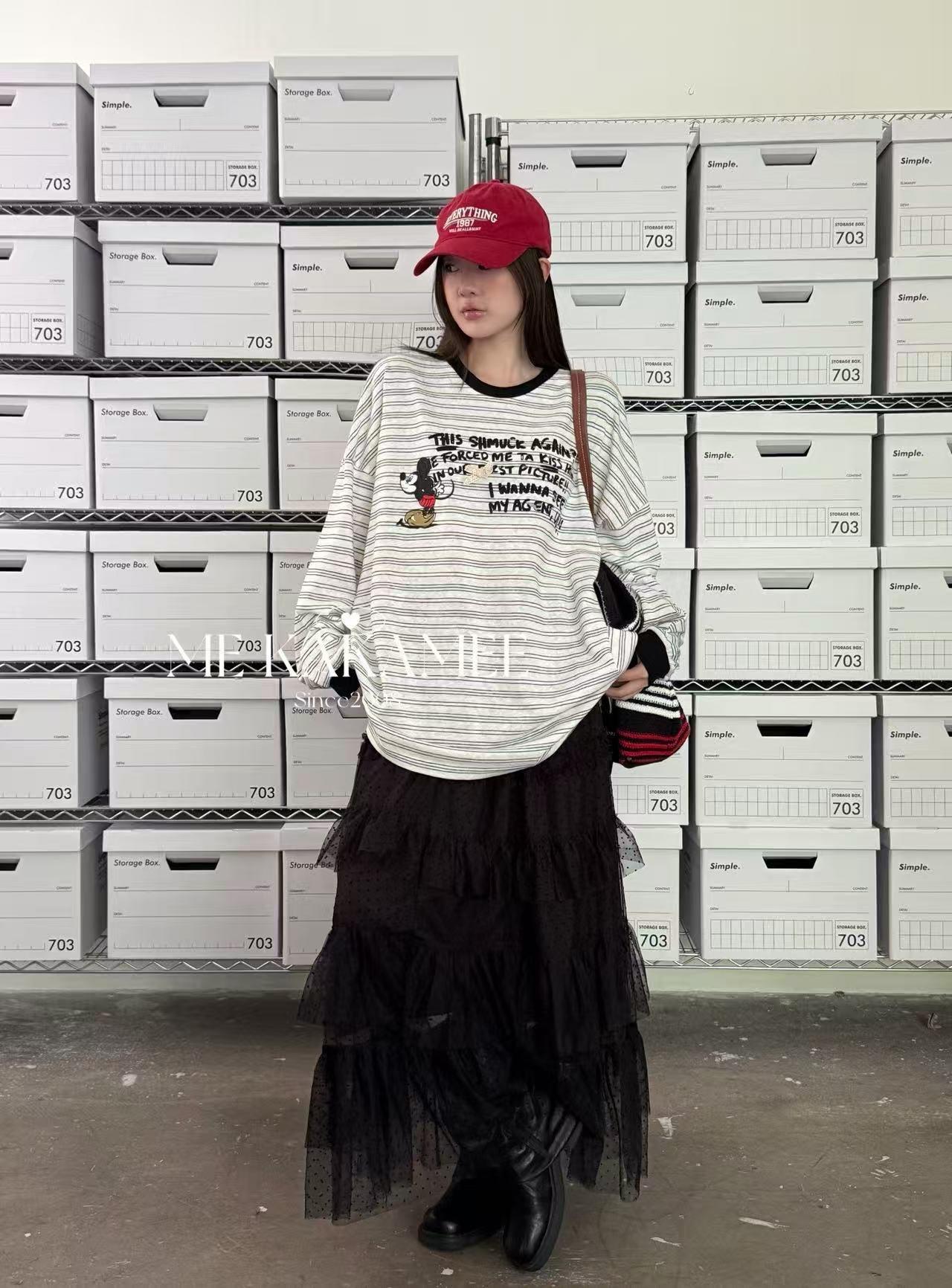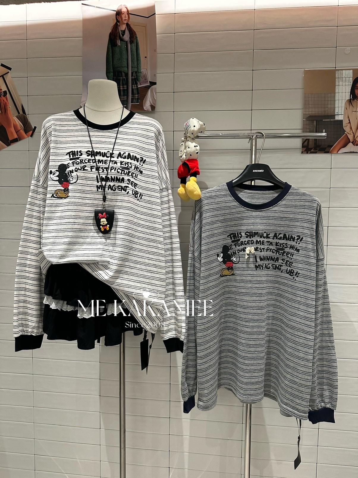 ME KAKAMEE Trece Líneas Otoño Nueva Tendencia American Graffiti Rayas MQ Camiseta de Manga Larga Holgada Mujer Coreana 8819