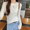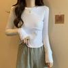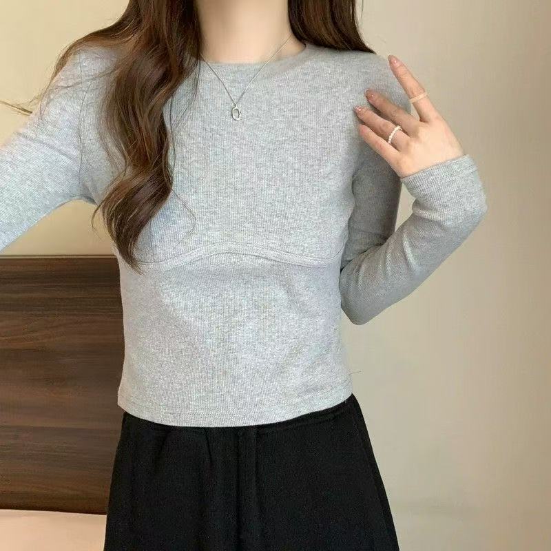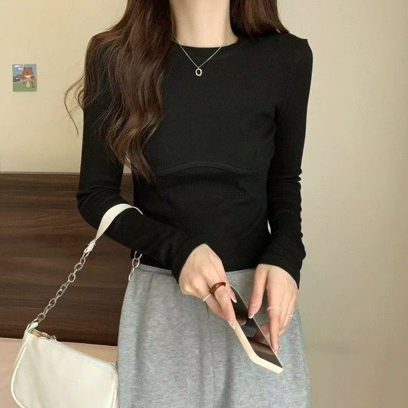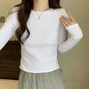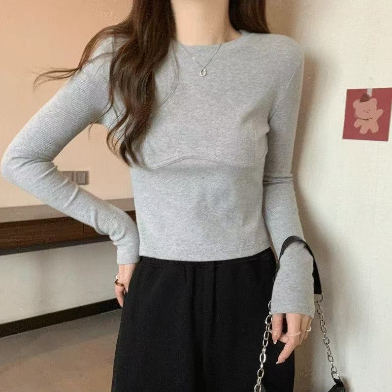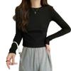 Playera de Manga Larga de Algodón Puro para Mujer Temporada Primavera Otoño Dulce Picante Algodón Acanalado Forro Polar Delgado Ajuste Slim Estilo Corto Tendencia de Moda Camiseta Básica