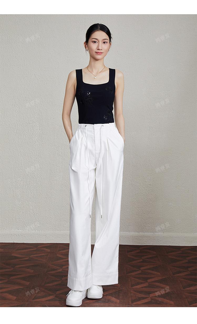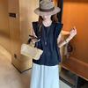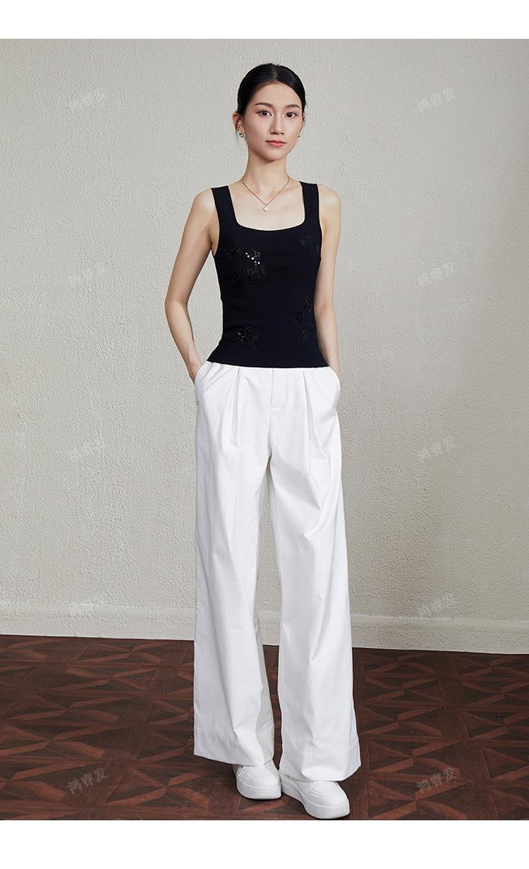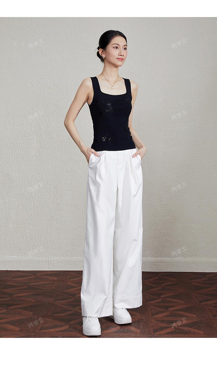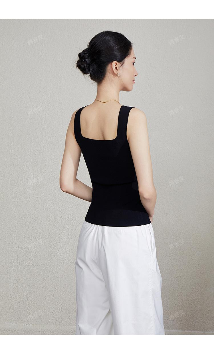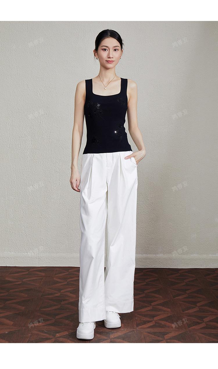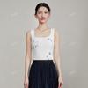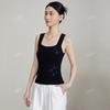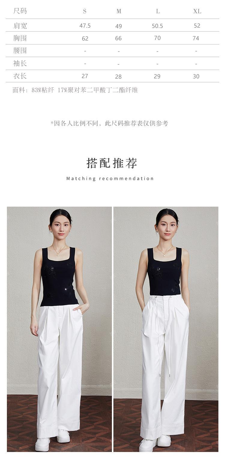Verano 2025 Nuevo Camisola de Moda Slim Versátil de Punto con Cuello Cuadrado Bordado con Lentejuelas Pesadas Top de Seda Hielo