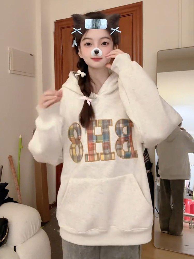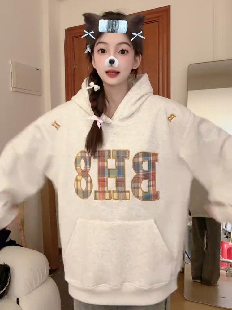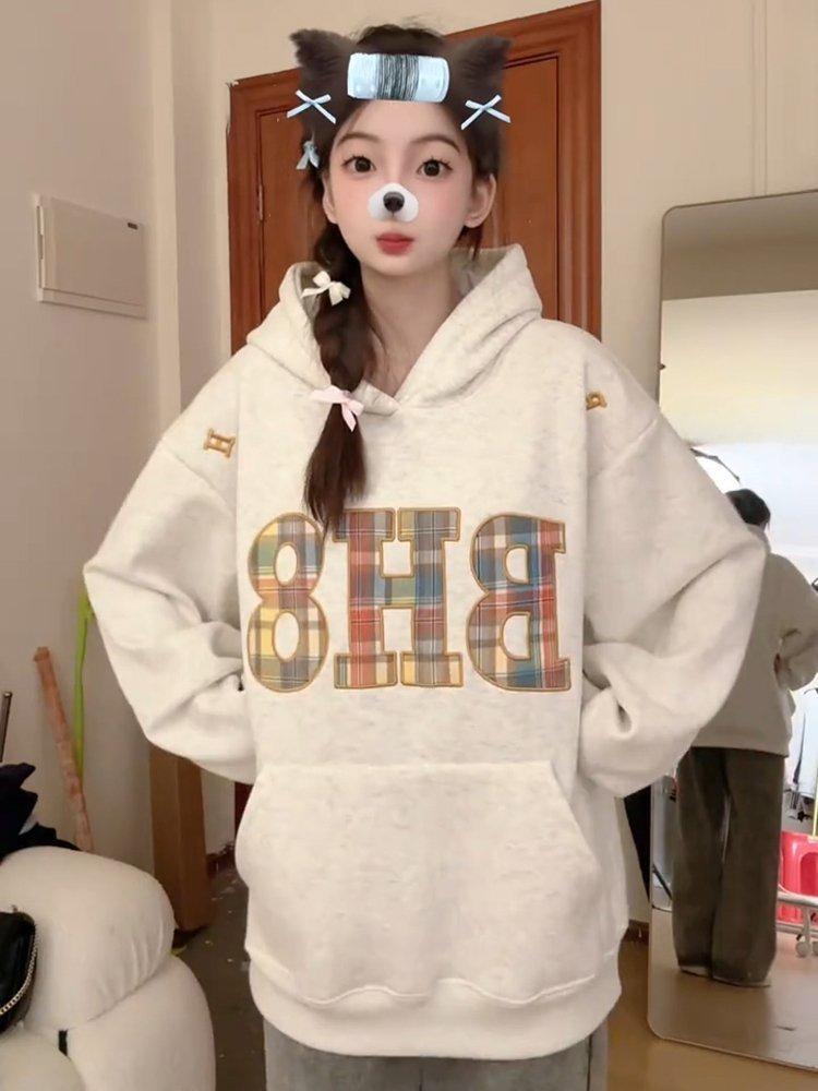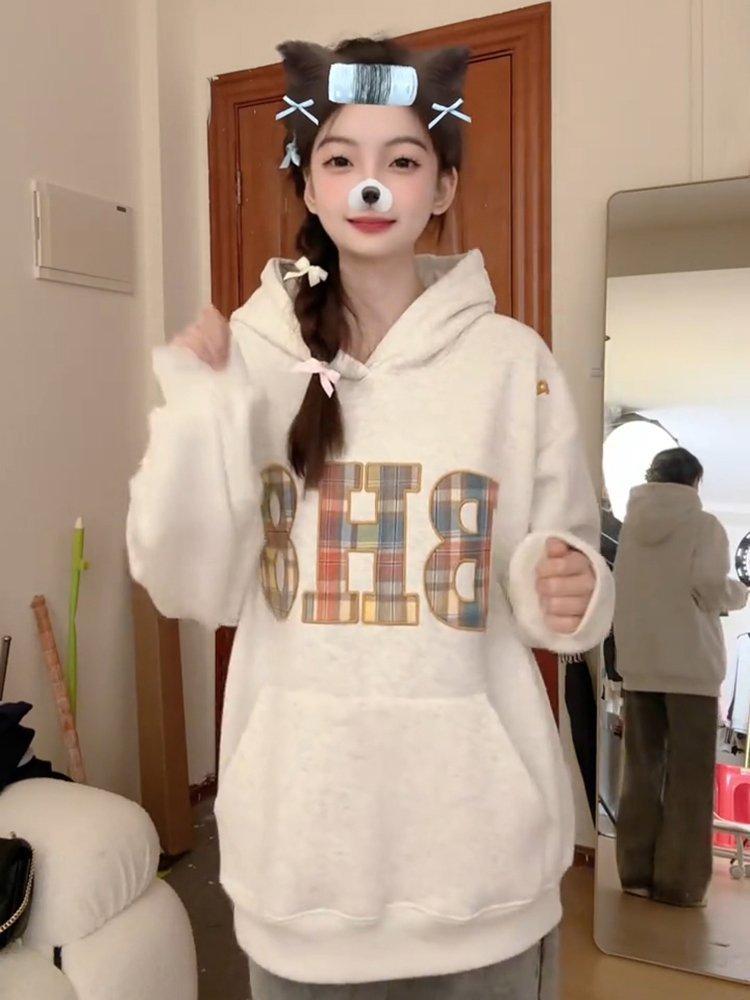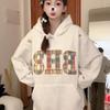 Británico Nuevo Japonés y Coreano Manga Larga Sudadera con Capucha Unisex para Mujer Mori Sudadera con Capucha Sexy para Mujer Estampada Delgada