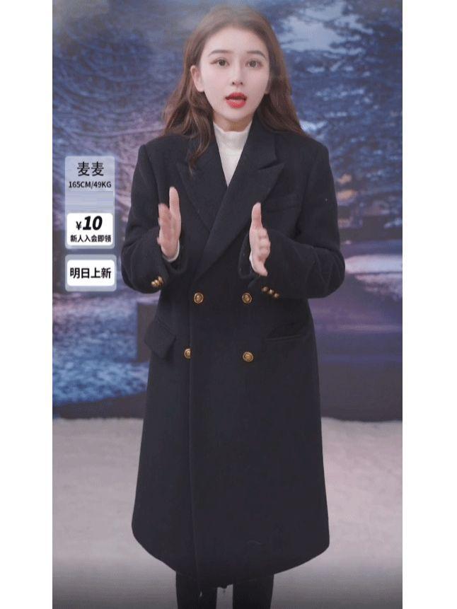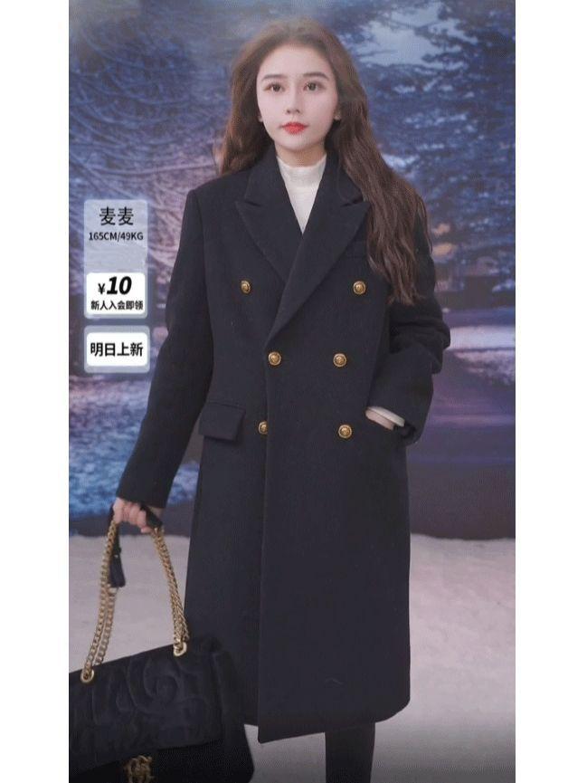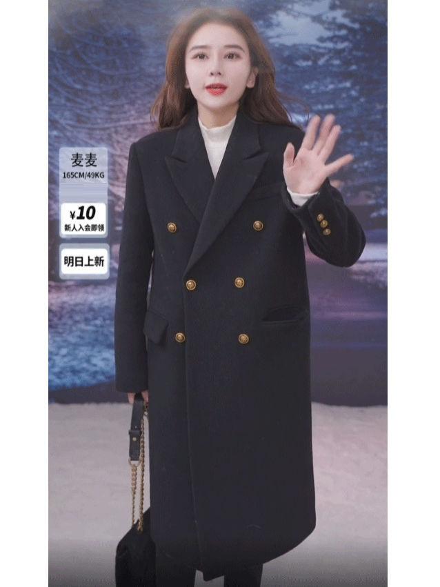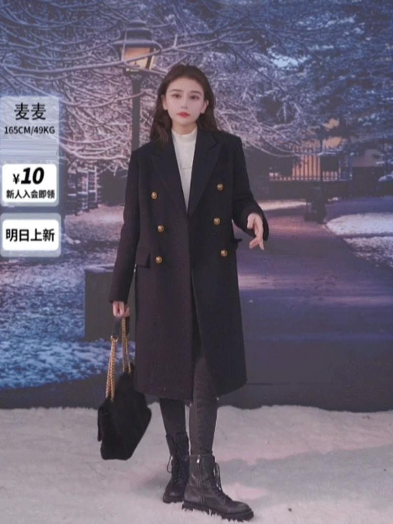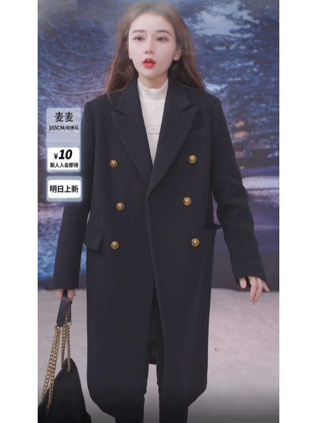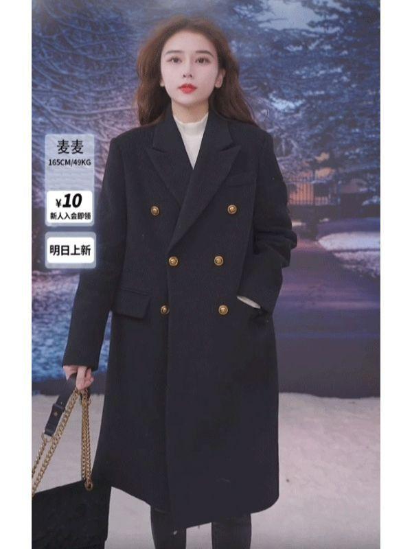 Abrigo de Lana Negro para Mujer 2025 Otoño e Invierno Nuevo Estilo Maillard Estilo Coreano Pequeño Elegante Engrosado Abrigo de Lana Trendy