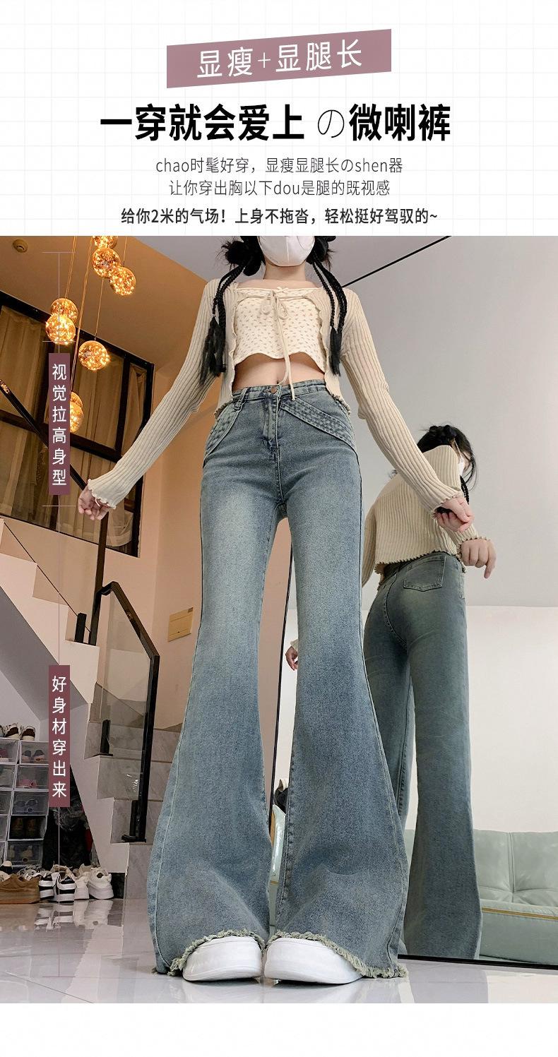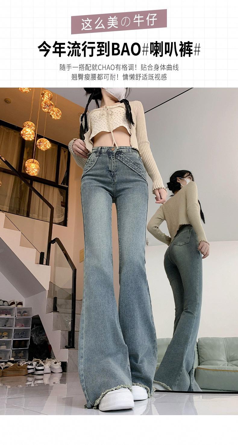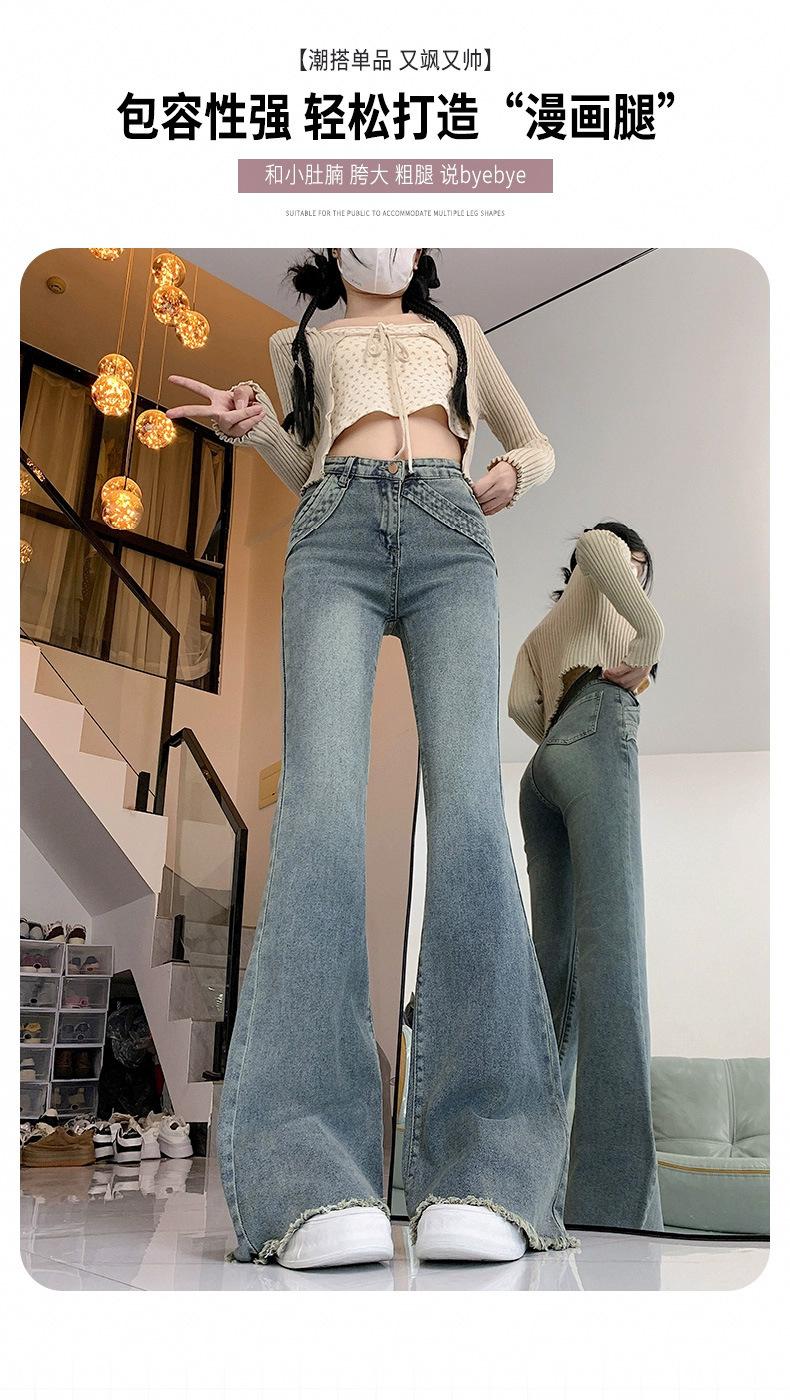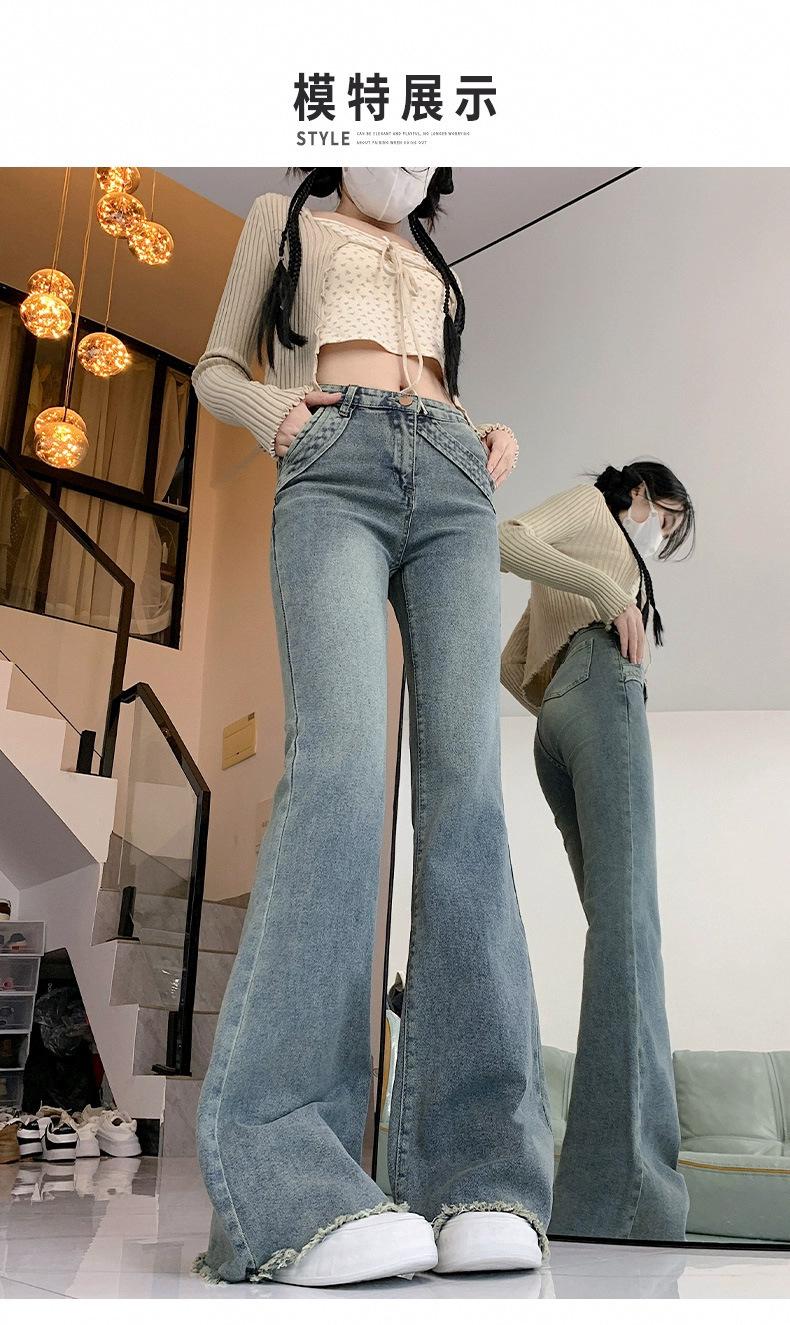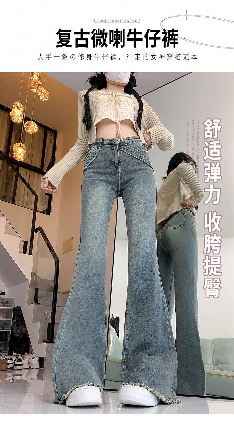 Jeans Elásticos para Mujer Diseño de Costuras Bolsillo Cintura Alta Estilo Americano Slim Recto Pantalones Rectos Pantalones de Herradura