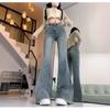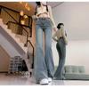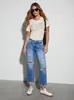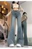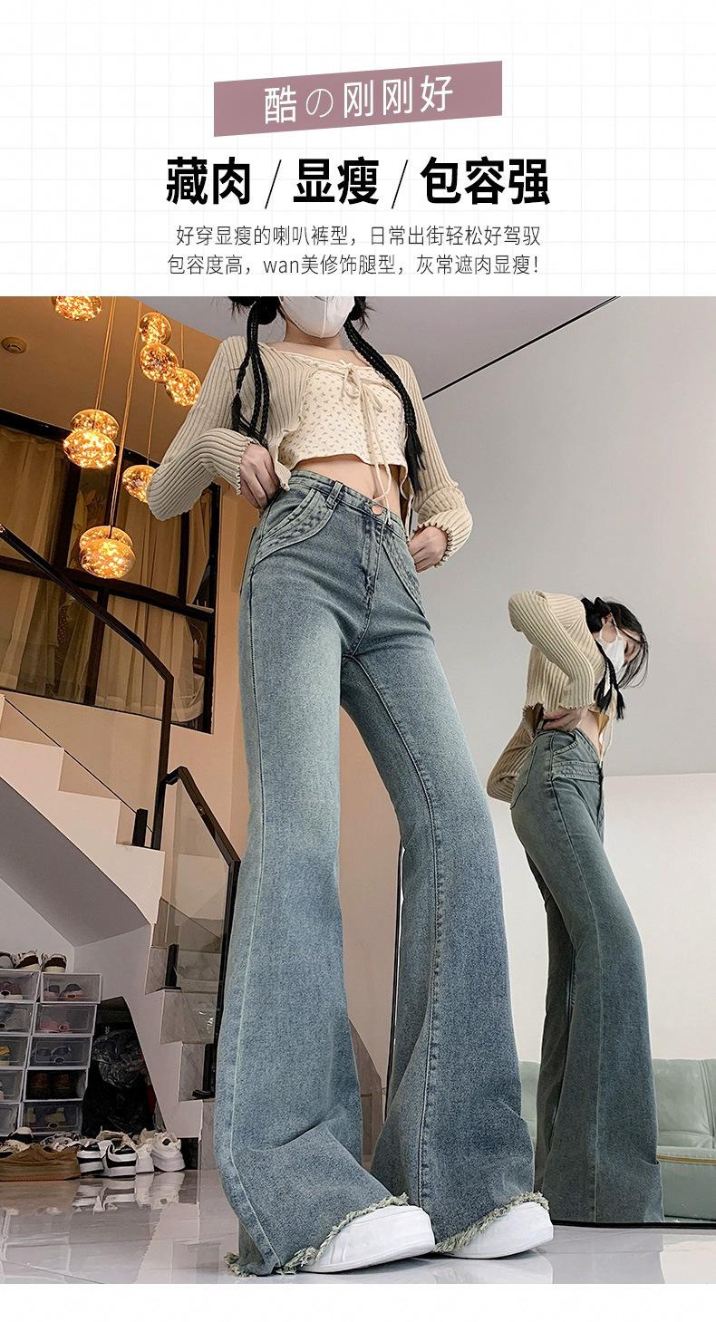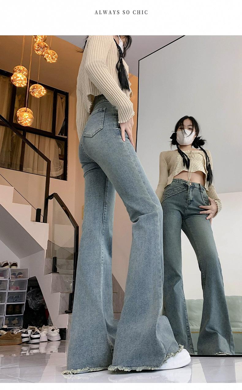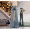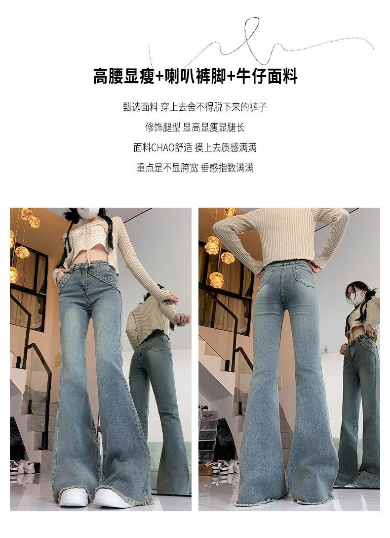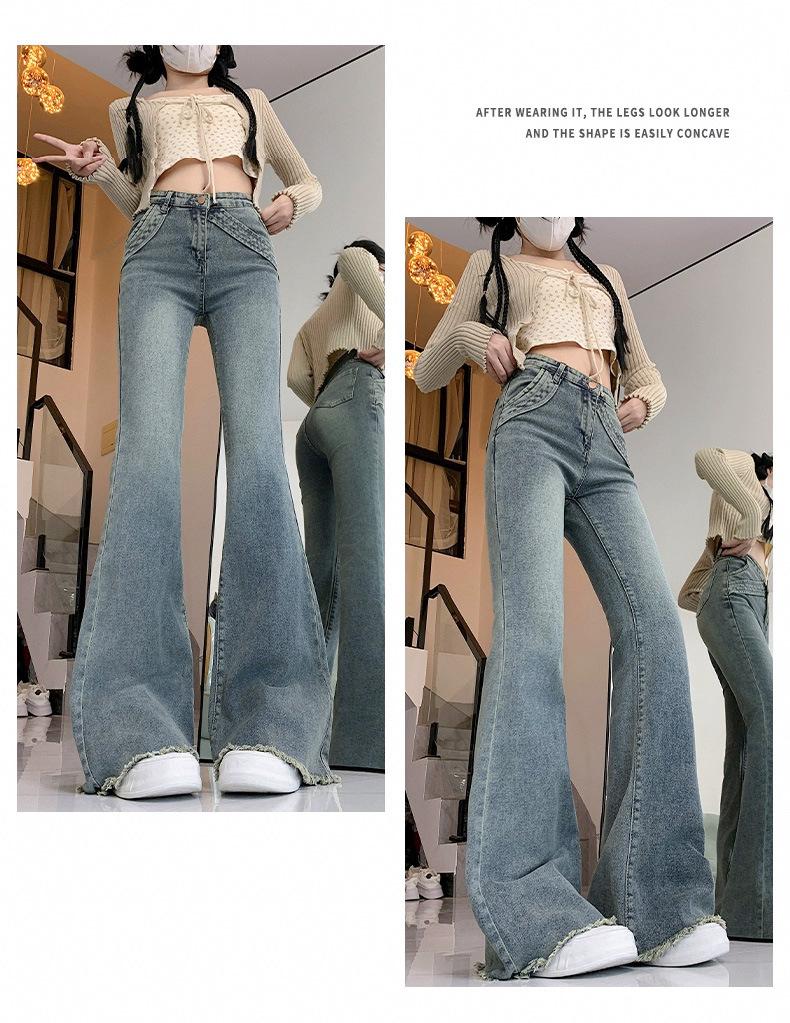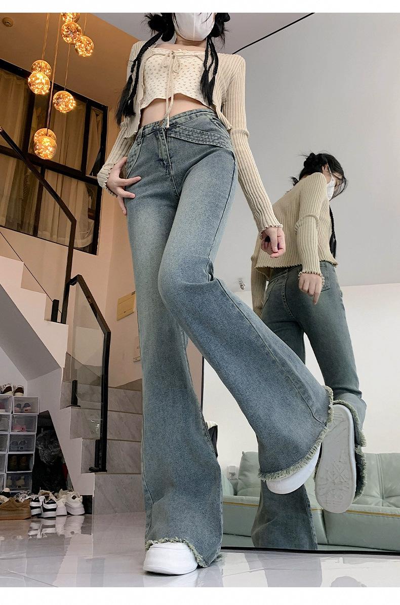 Jeans Elásticos para Mujer Diseño de Costuras Bolsillo Cintura Alta Estilo Americano Slim Recto Pantalones Rectos Pantalones de Herradura