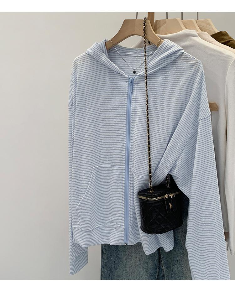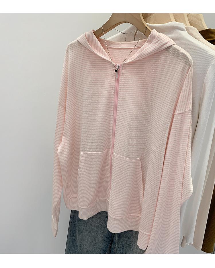 Chaqueta Cárdigan con Capucha y Protección Solar Moda Mujer 2025 Principios de Otoño Nuevo Delgado Cierre Casual Versátil Manga Larga Top