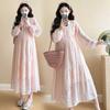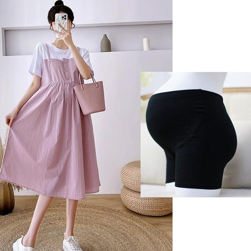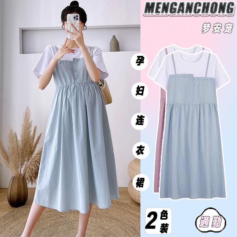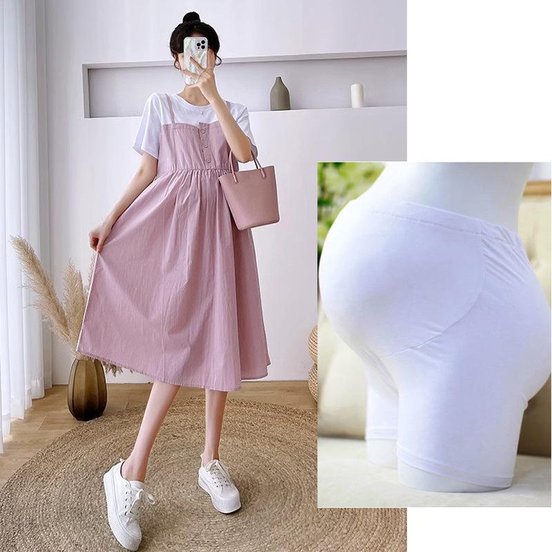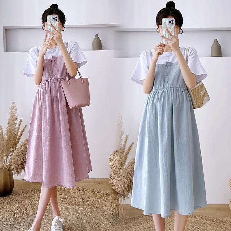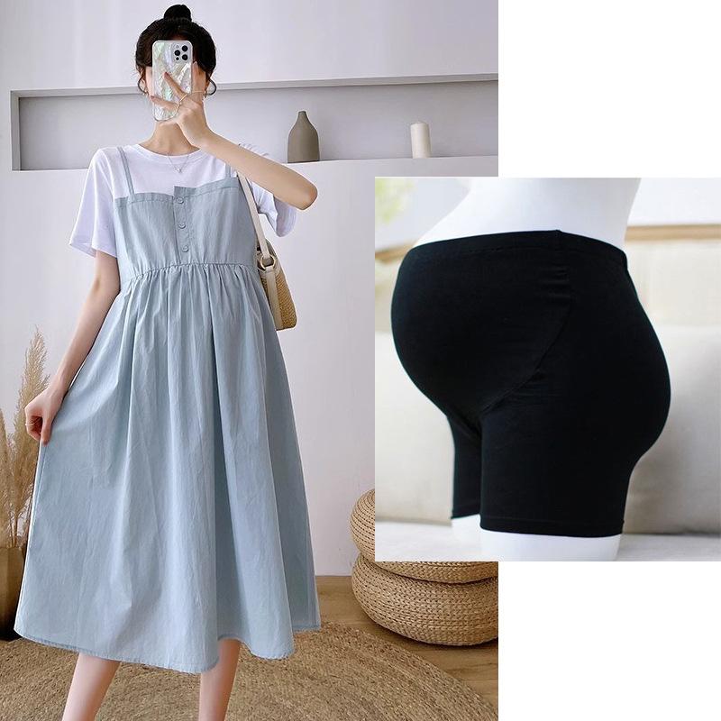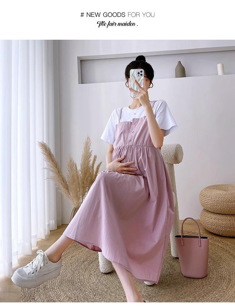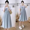 Vestido de Maternidad Estilo Coreano Nuevo Verano Delgado Falso Dos Piezas Falda Media Longitud Cintura Alta Cubre Abdomen Traje Adelgazante de Vientre