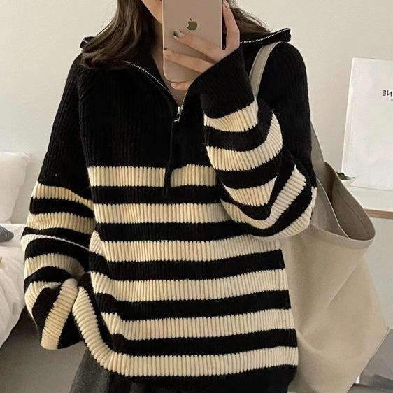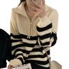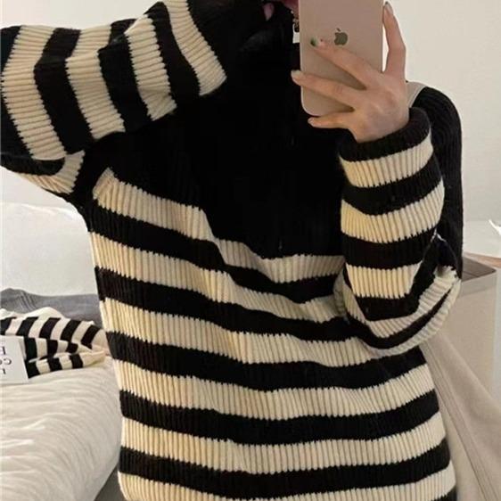 Suéter Pulóver a Rayas con Media Cremallera para Mujer Otoño/Invierno 2025, Suave y Esponjoso Retro Holgado Versátil Adelgazante Tejido Top
