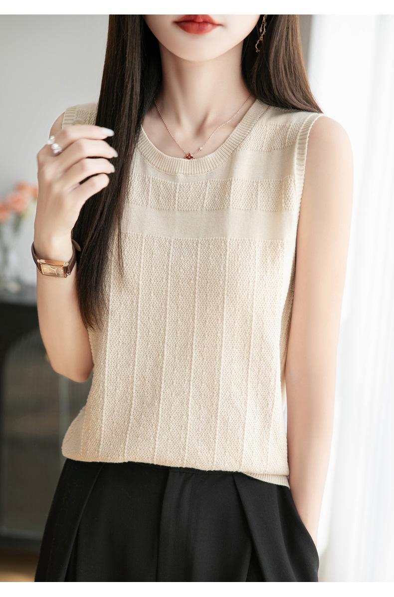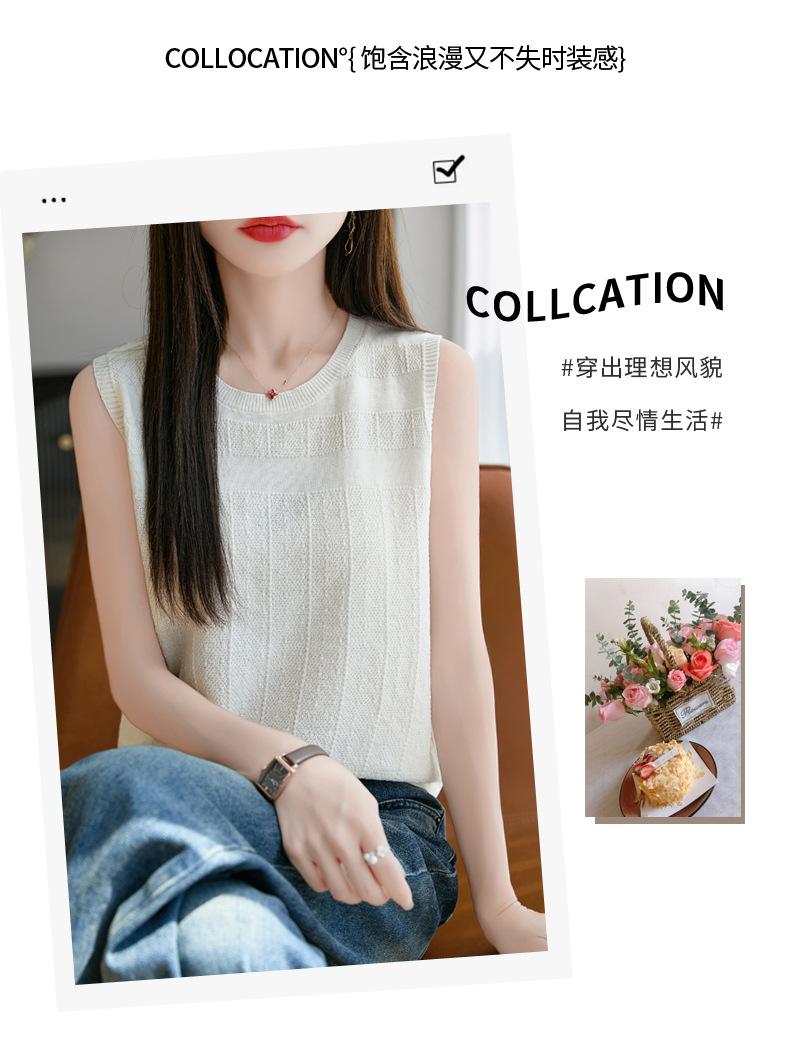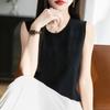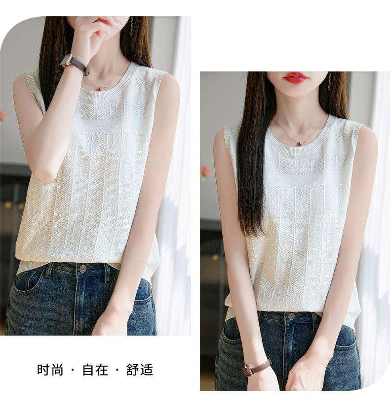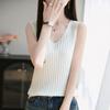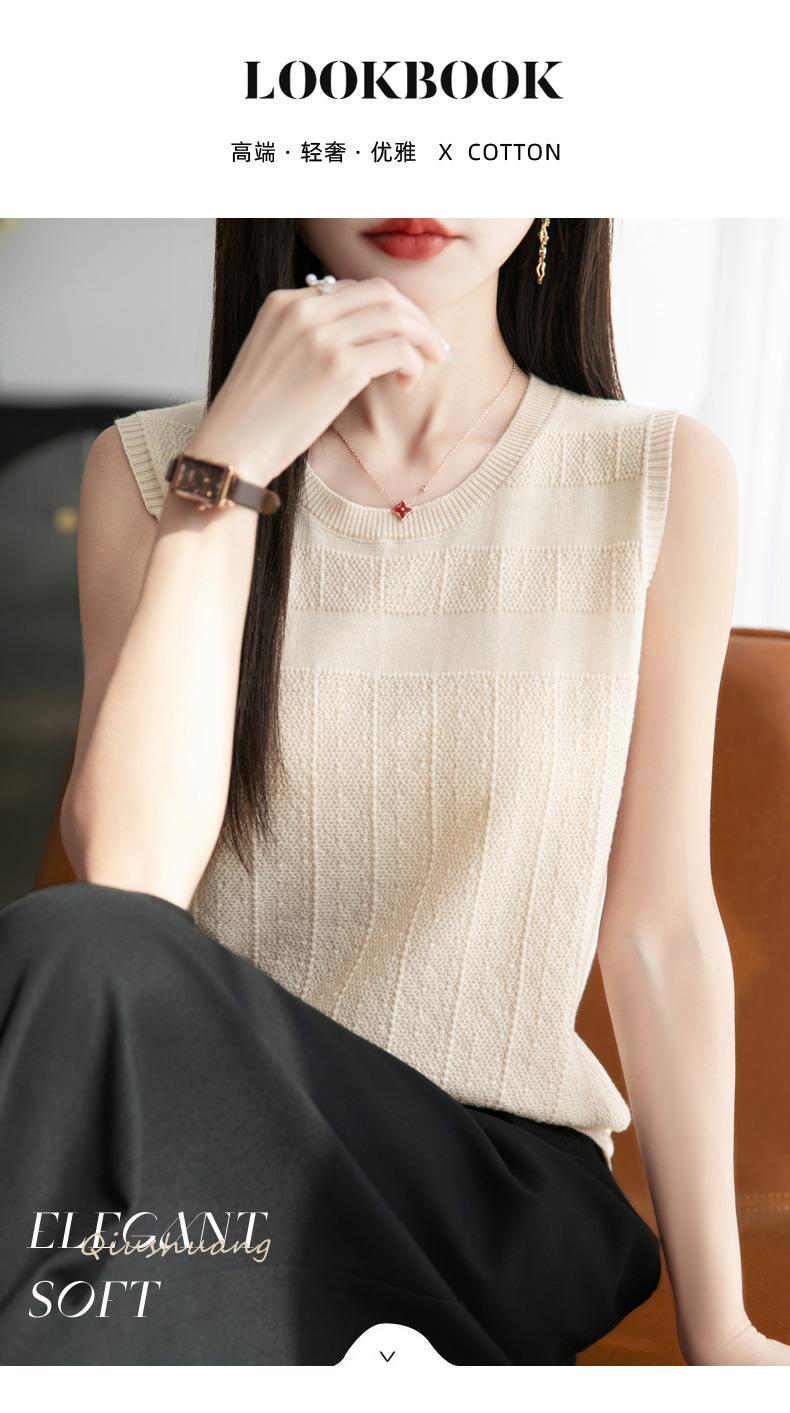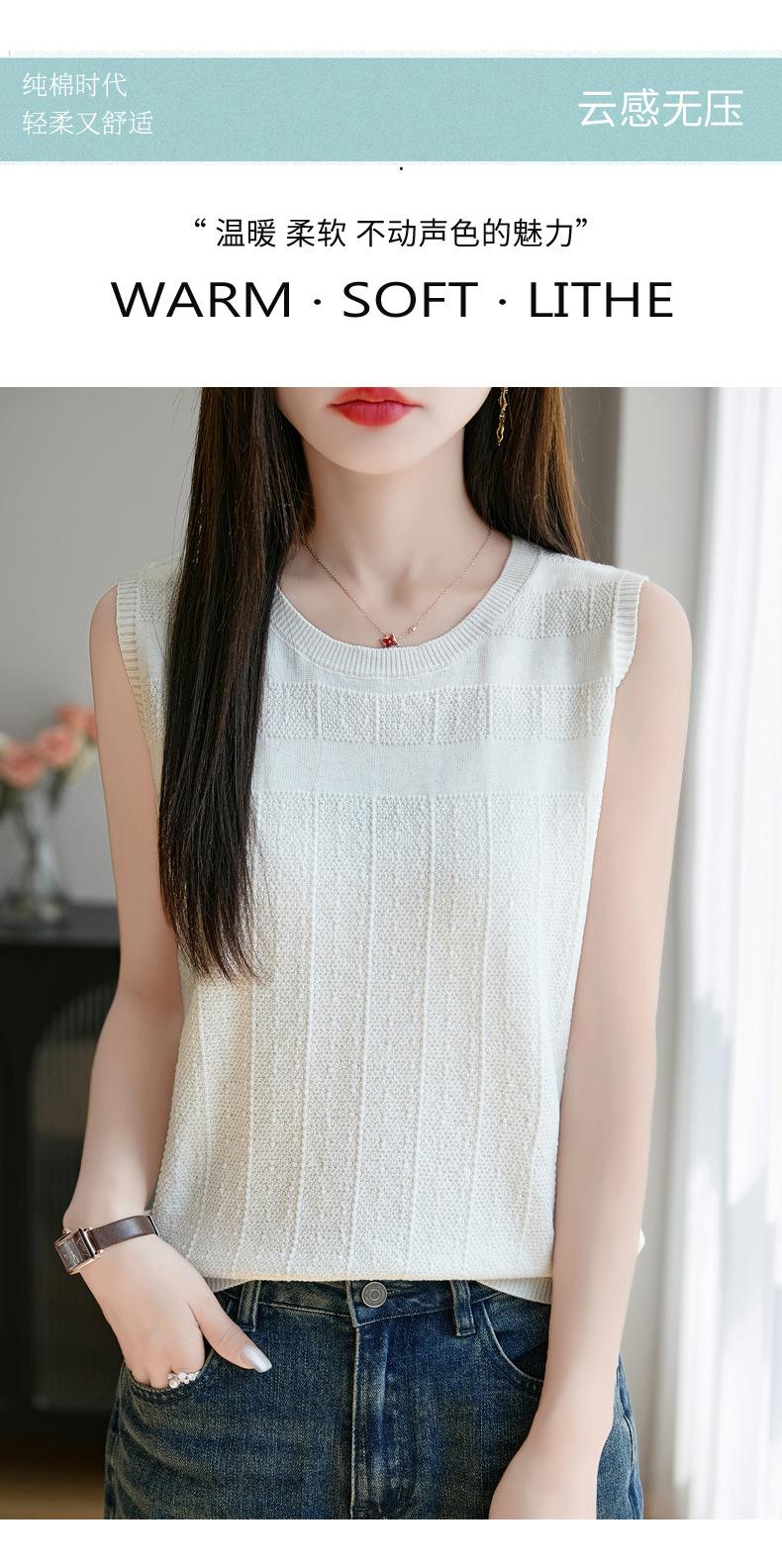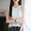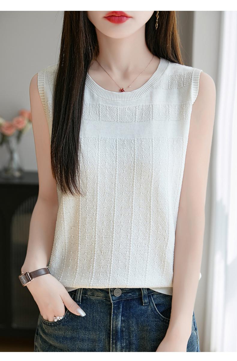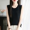 Verano 2025 Nuevo Algodón Puro Cuello Redondo Sin Mangas Chaleco Tejido Color Sólido Suéter Holgado Camiseta Base Top para Mujer