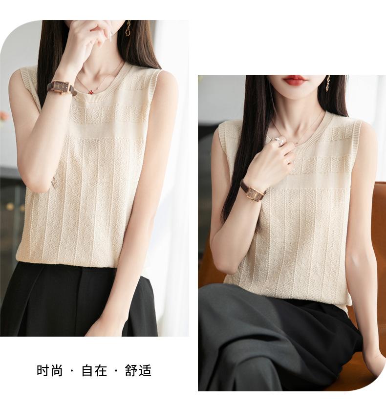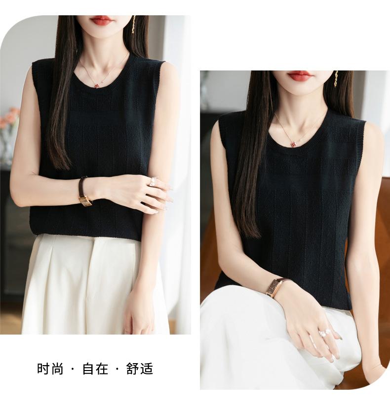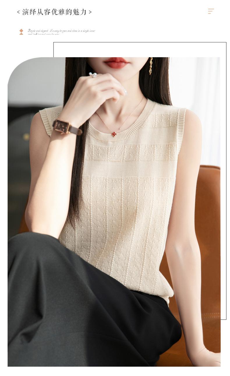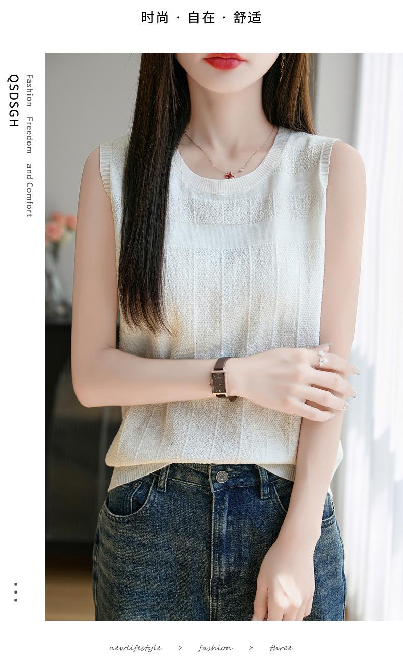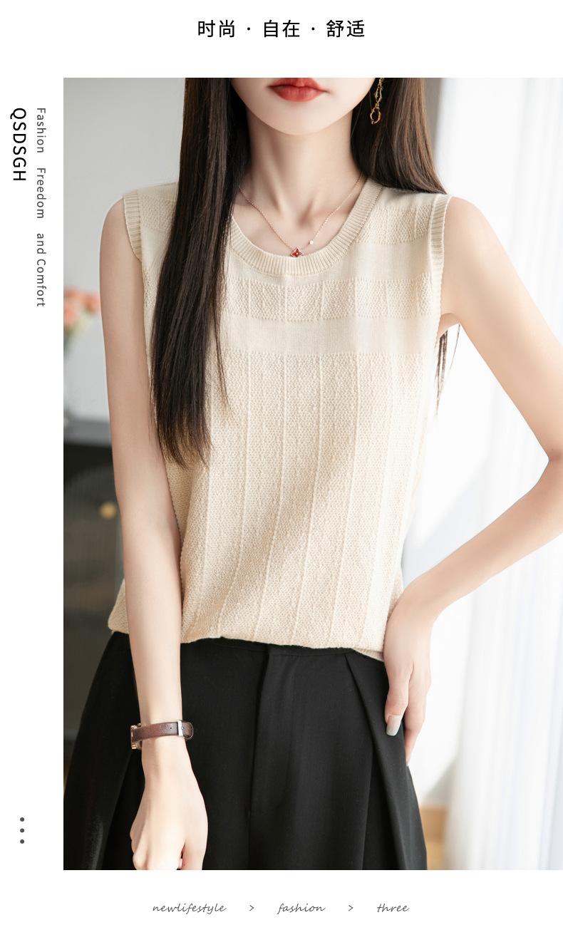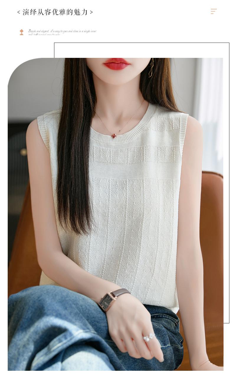 Verano 2025 Nuevo Algodón Puro Cuello Redondo Sin Mangas Chaleco Tejido Color Sólido Suéter Holgado Camiseta Base Top para Mujer