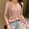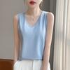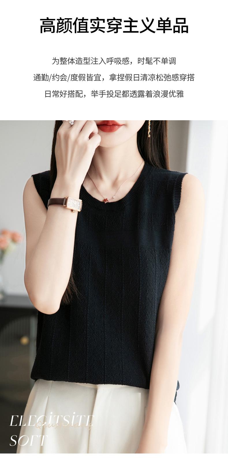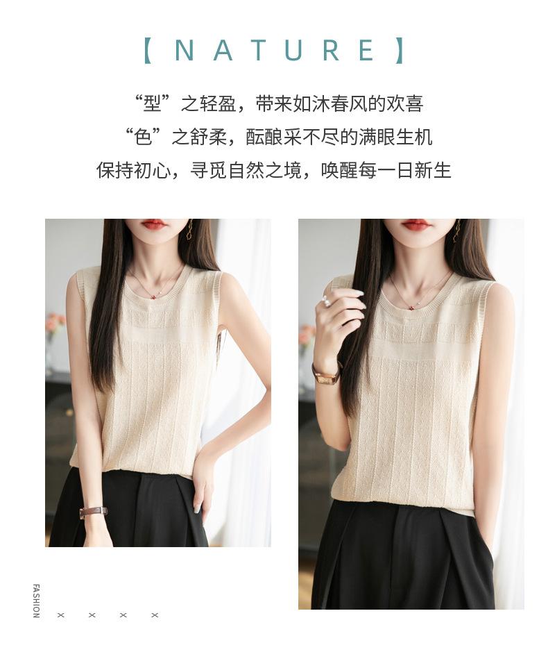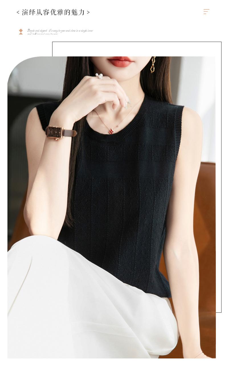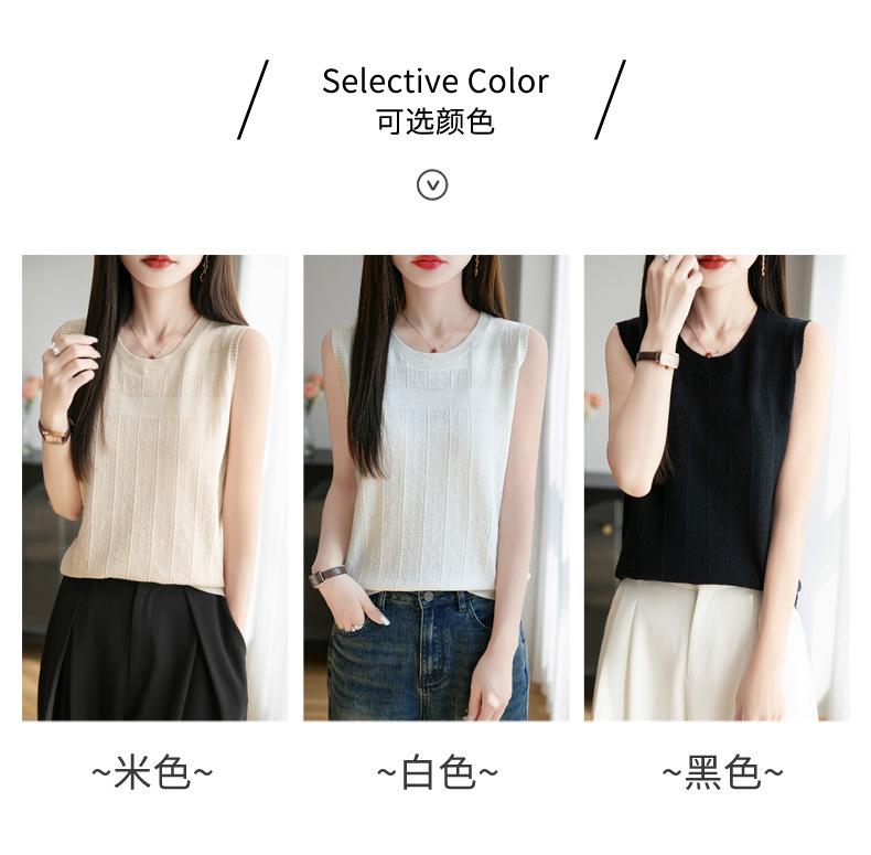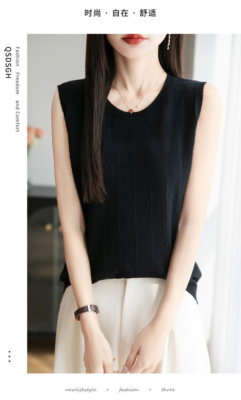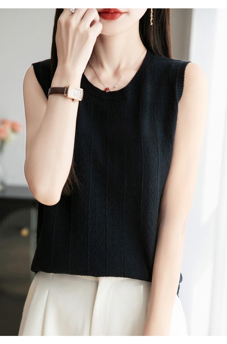 Verano 2025 Nuevo Algodón Puro Cuello Redondo Sin Mangas Chaleco Tejido Color Sólido Suéter Holgado Camiseta Base Top para Mujer