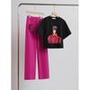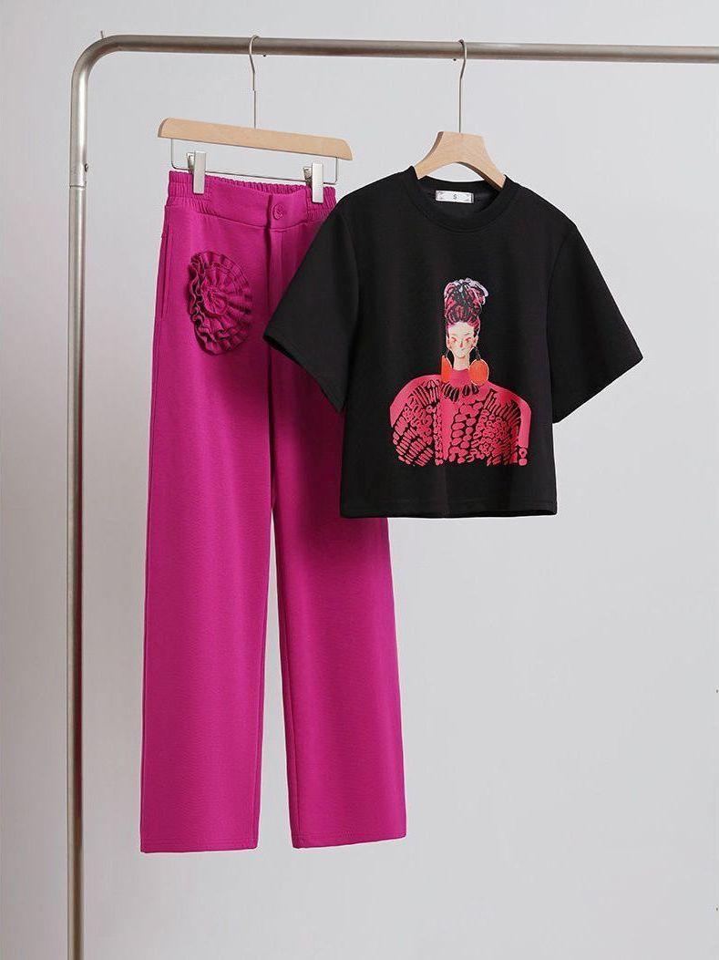 Traje Deportivo Casual Europeo Nuevo 2025 para Mujer, Moda de Verano, Elegante, Conjunto de Dos Piezas de Manga Corta Estampado que Reduce la Edad, Adelgazante