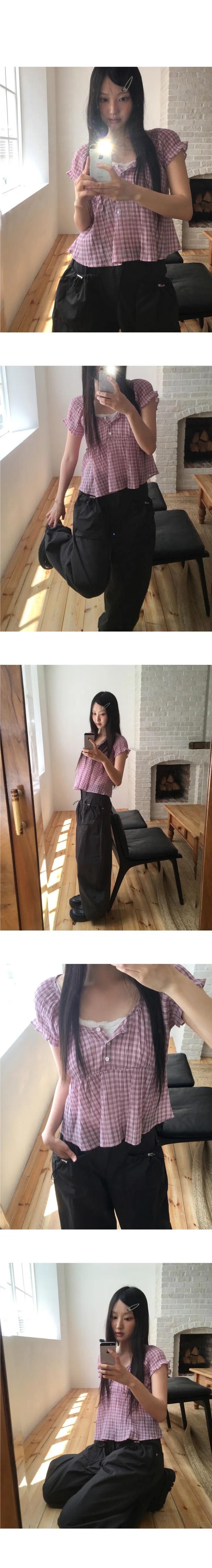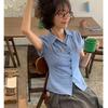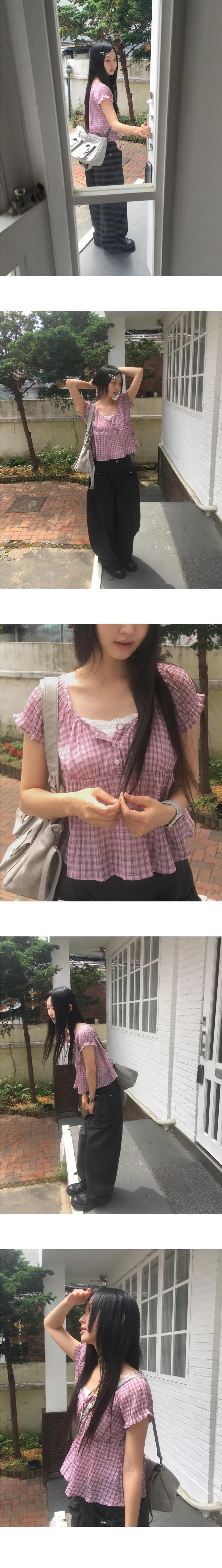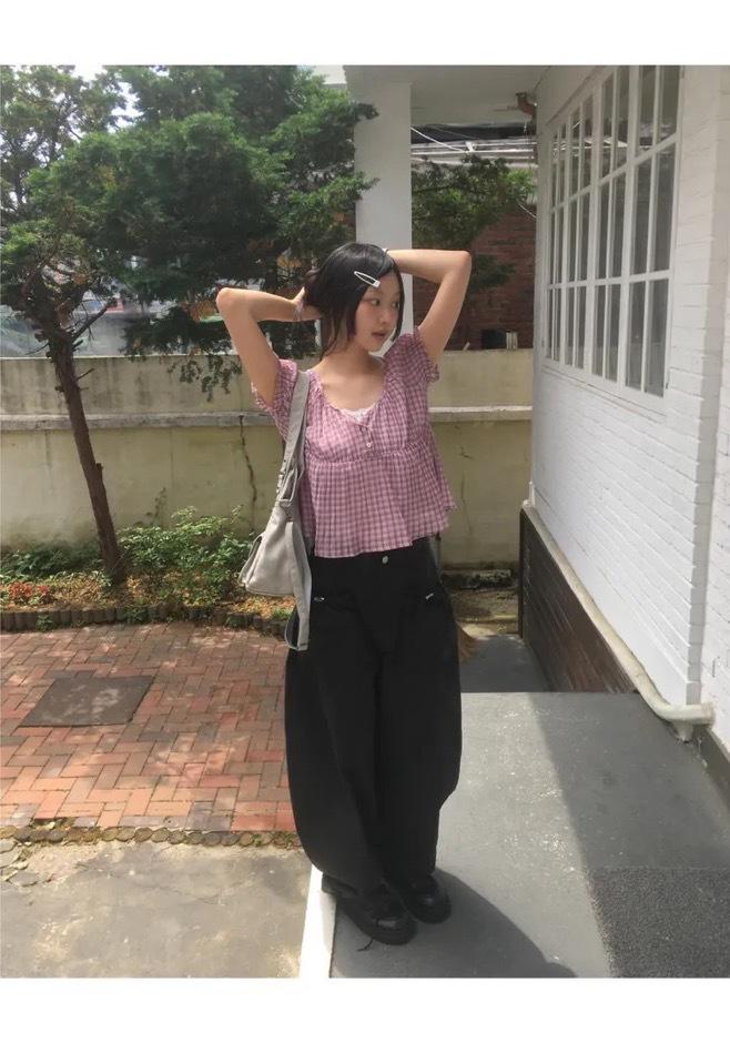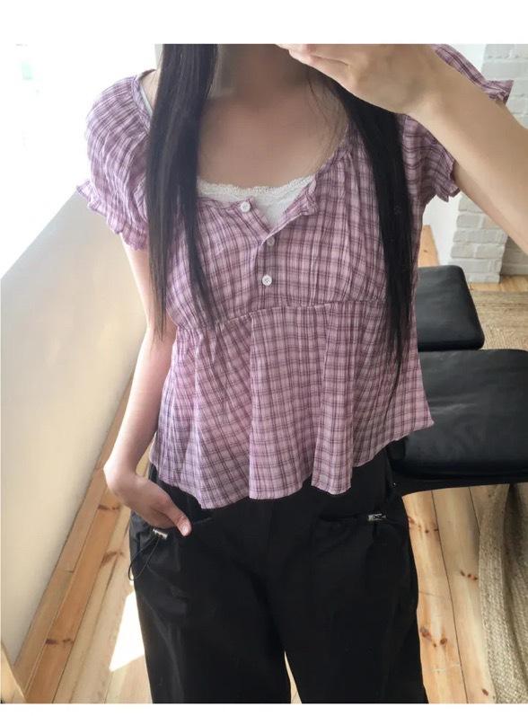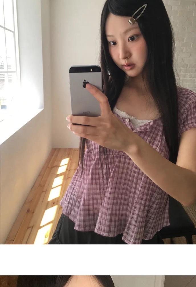 2025 Dongdaemun Nuevo Verano Forus Camisa Versátil a Cuadros de Manga Corta Tendencia