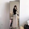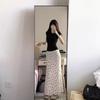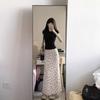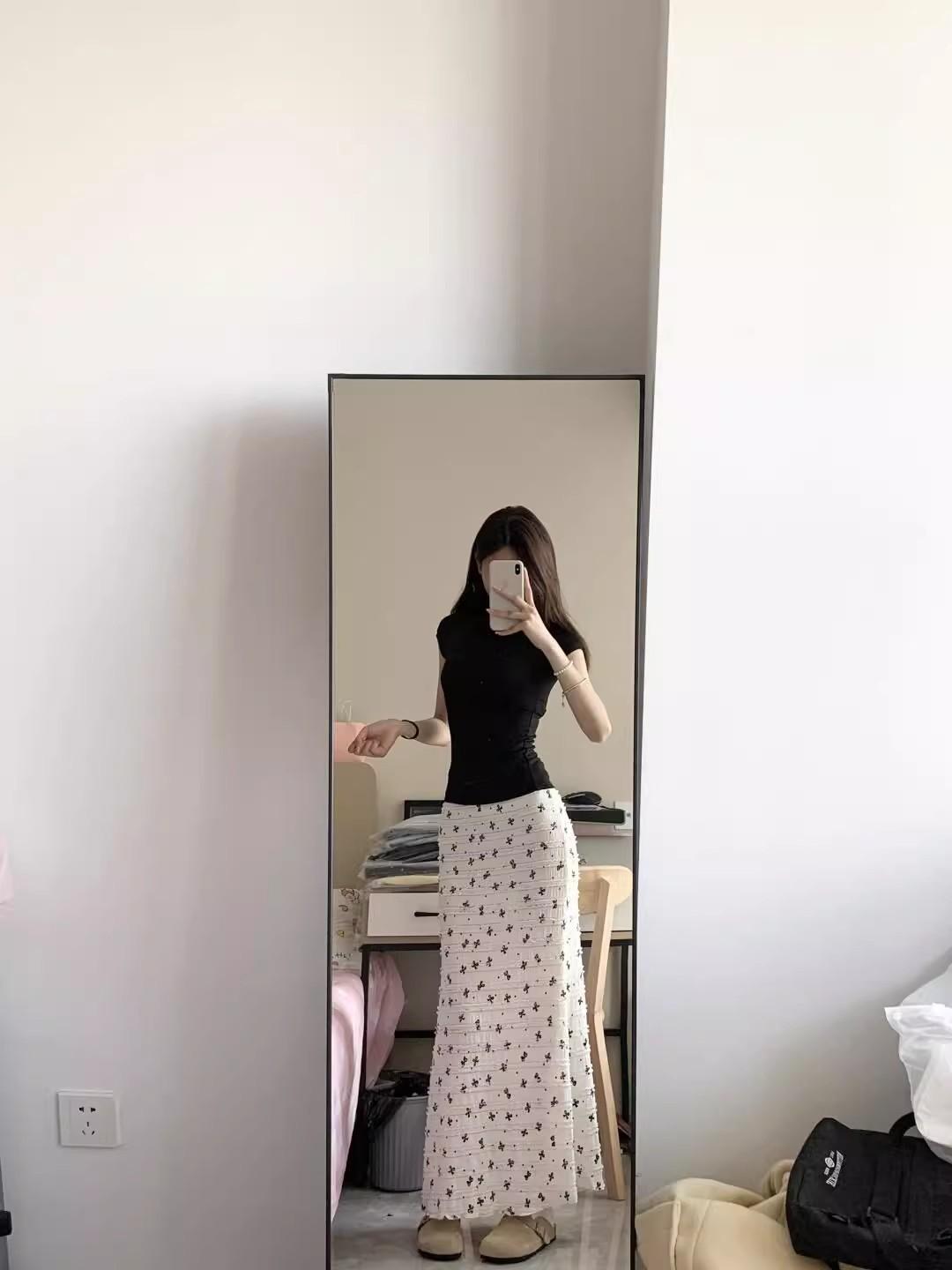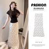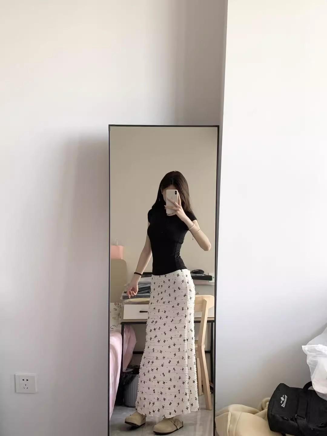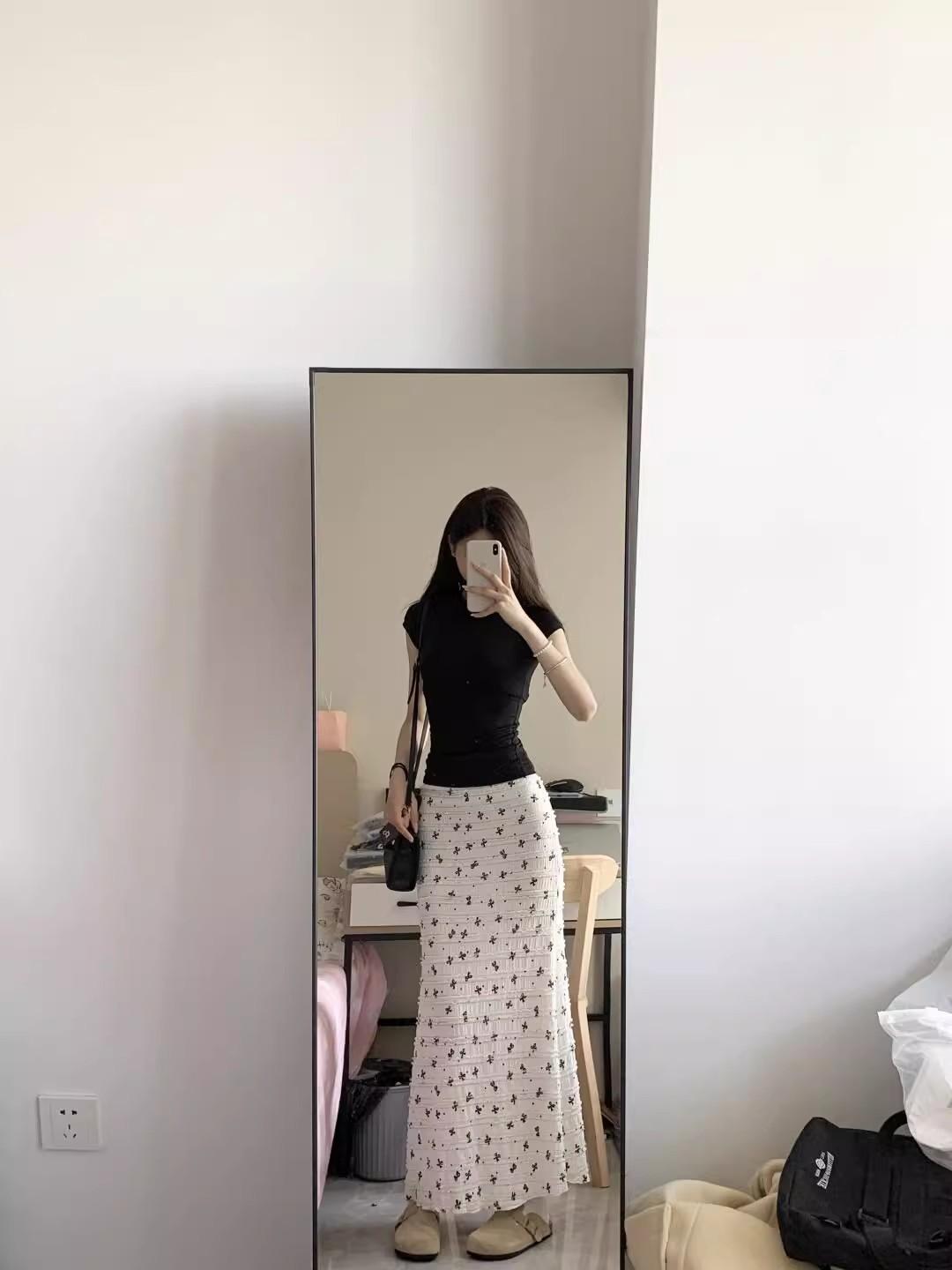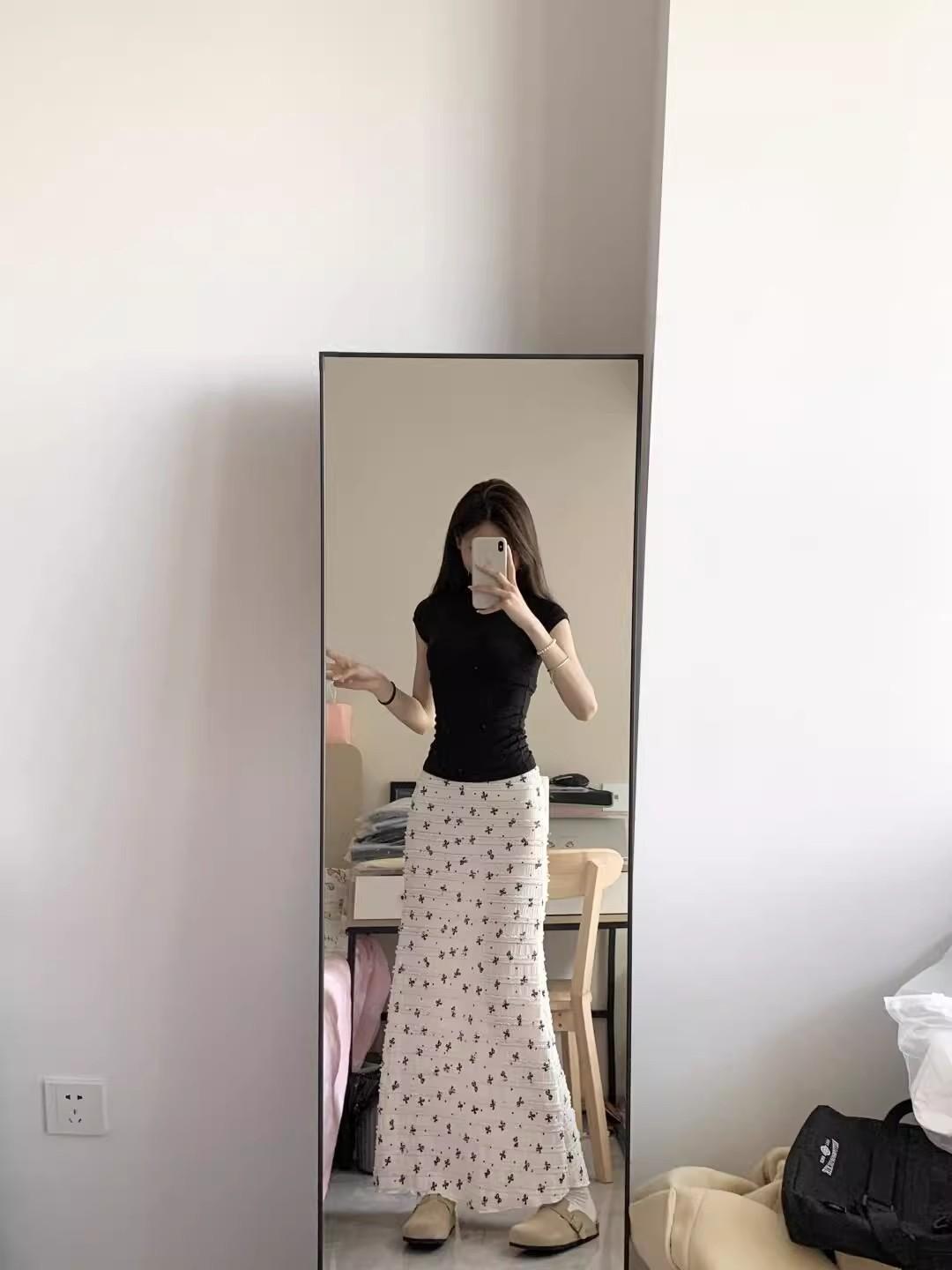 Falda midi floral de cola de pez con lazo francés para mujer 2025 nuevo verano cintura alta línea A largo medio ajustada