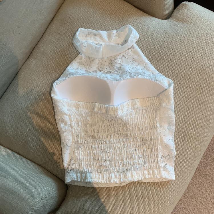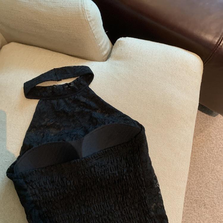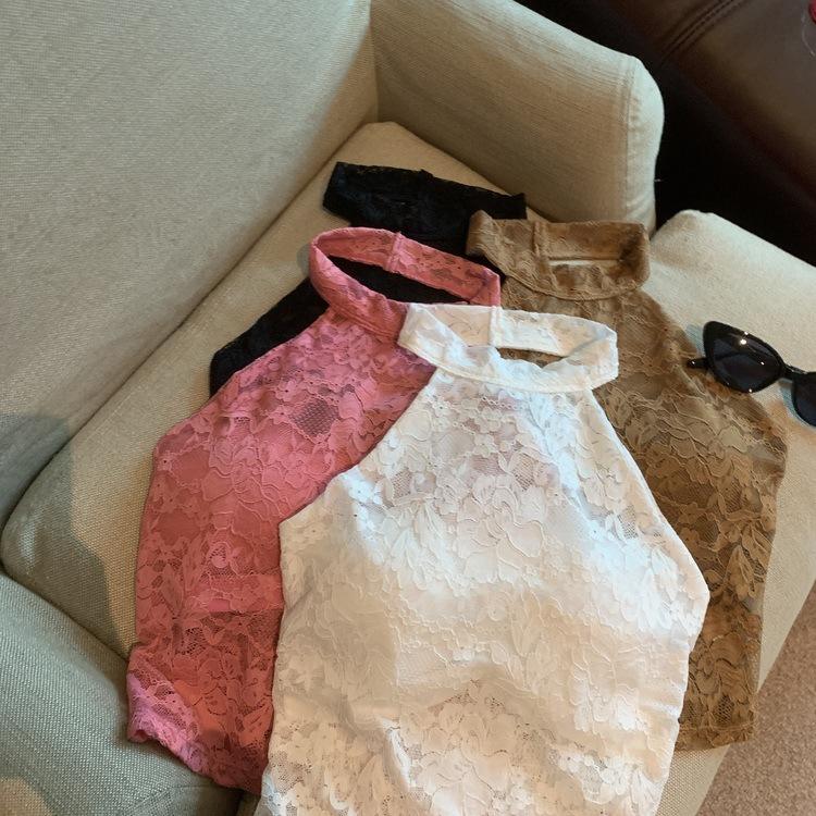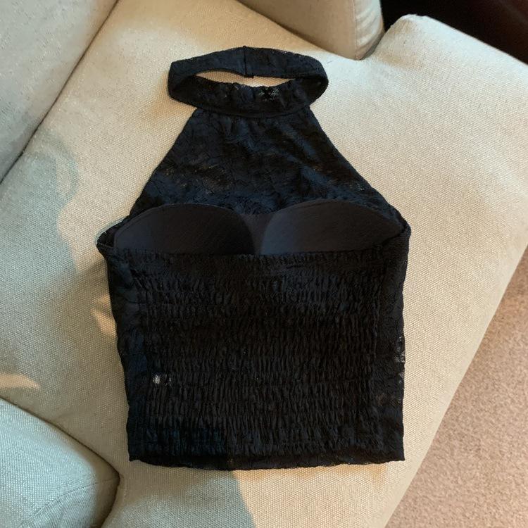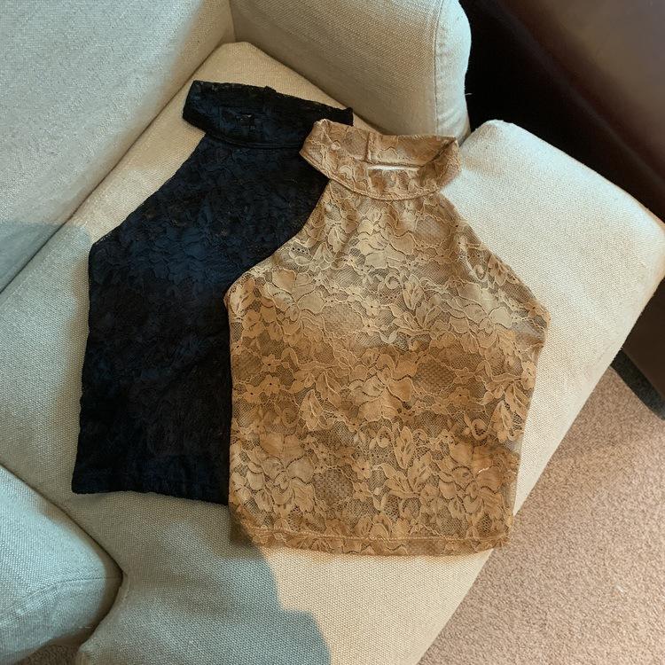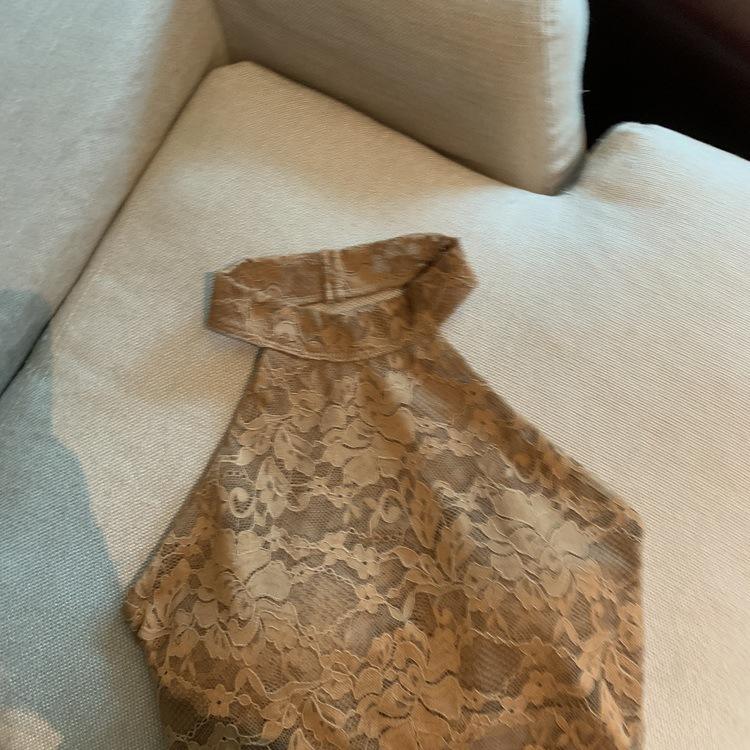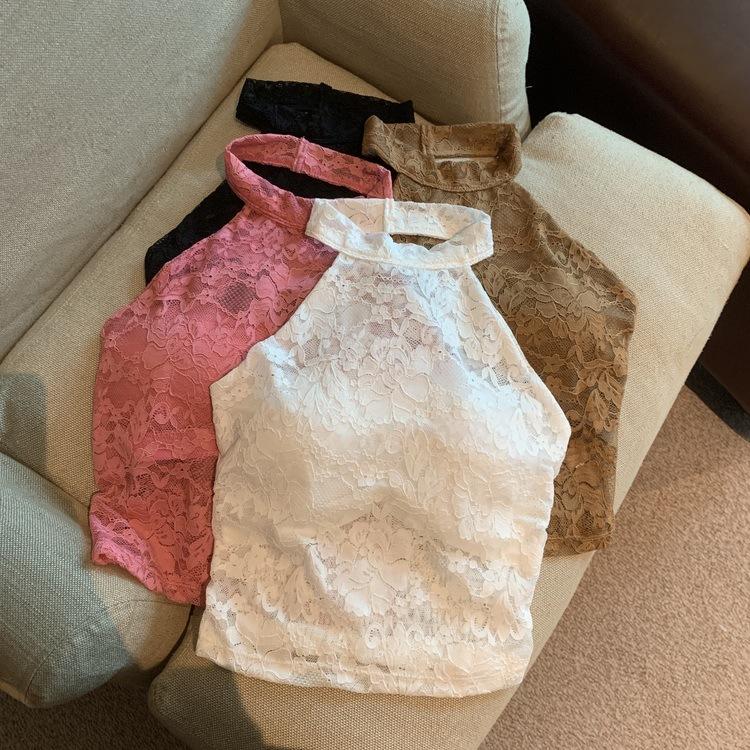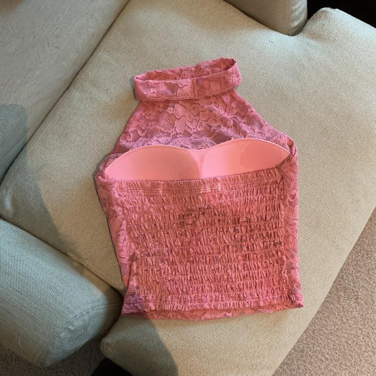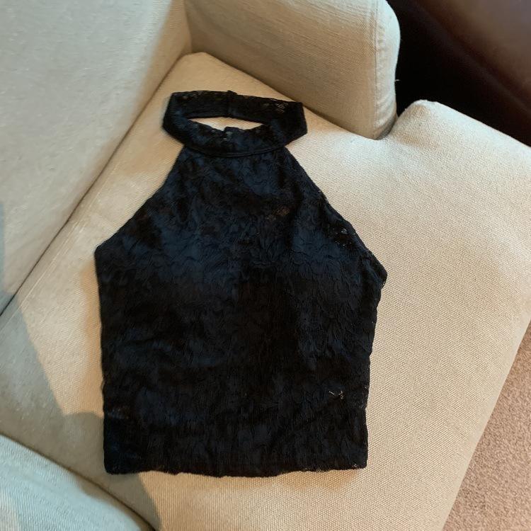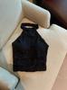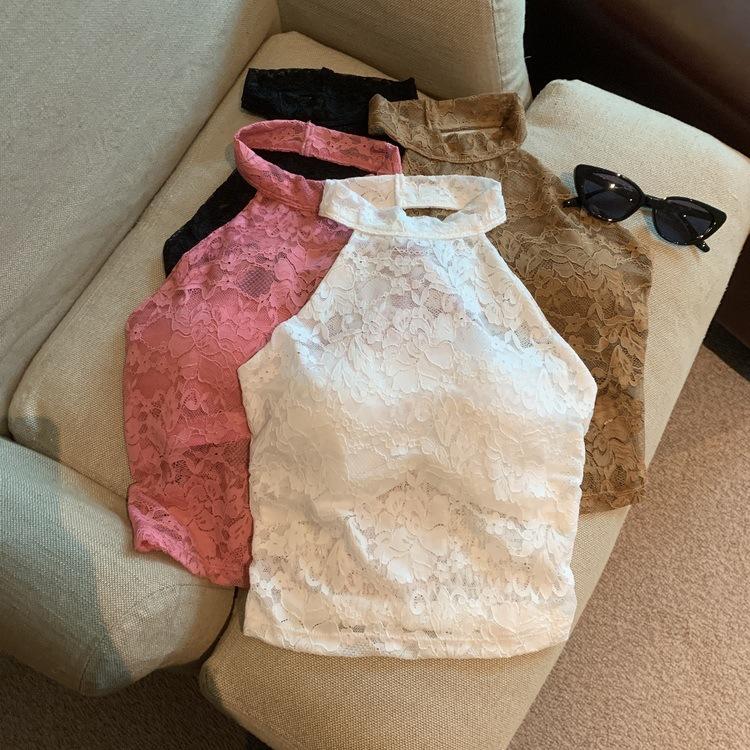 Camisola Corta de Encaje con Halter para Mujer 2025 Nuevo Verano Ropa Exterior Hermosa Espalda Bajo Top sin Mangas