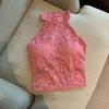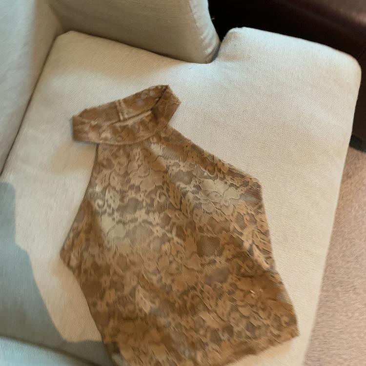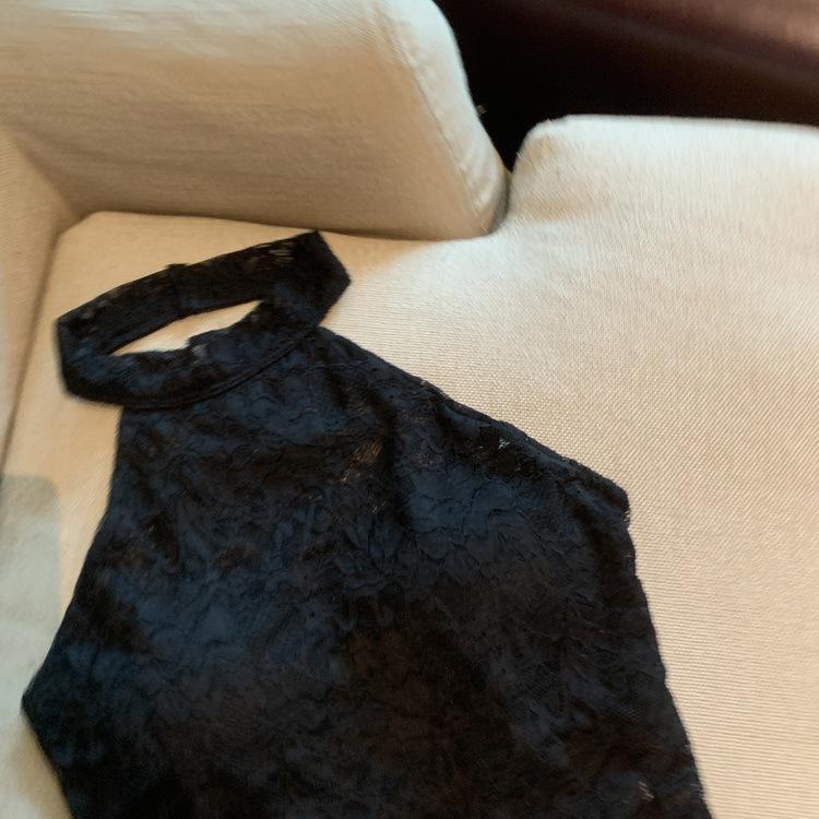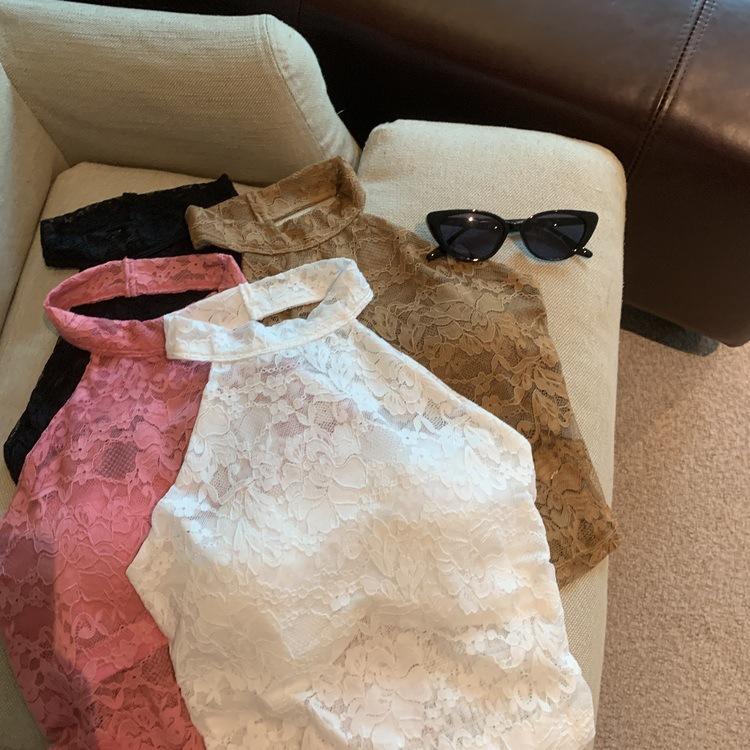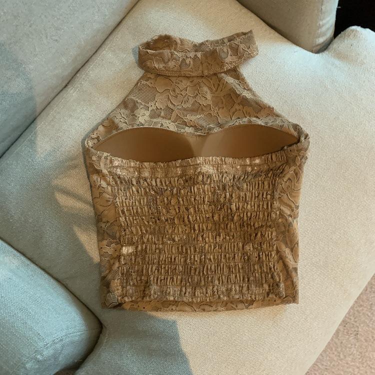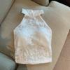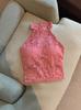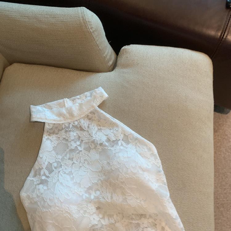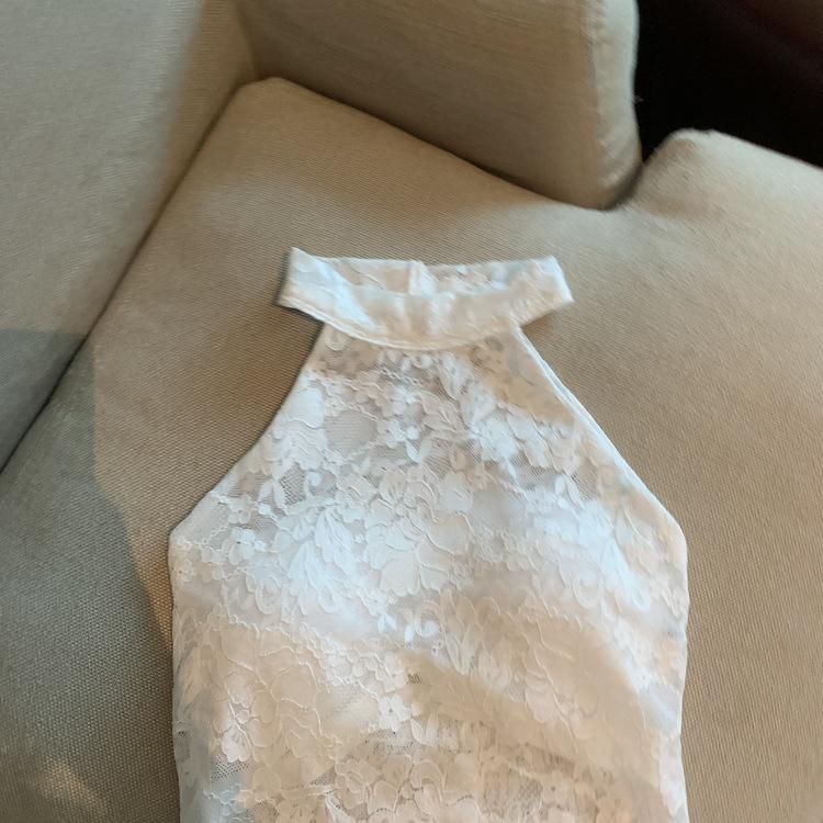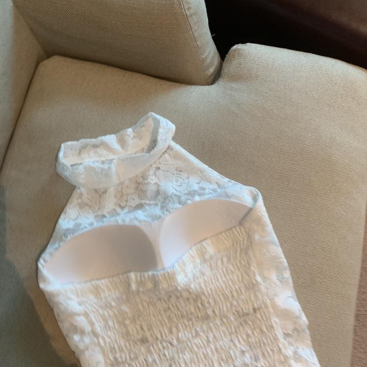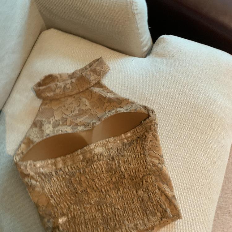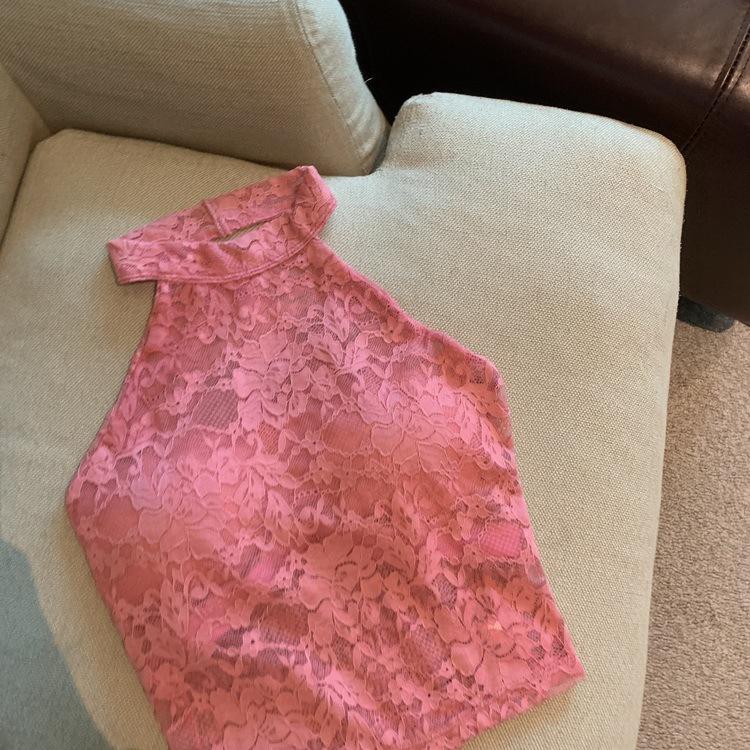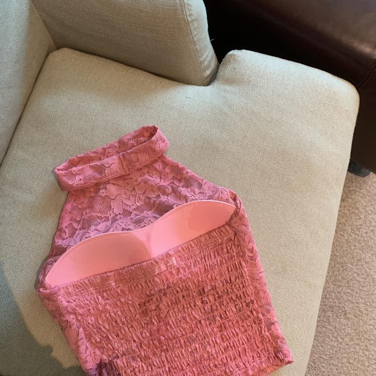 Camisola Corta de Encaje con Halter para Mujer 2025 Nuevo Verano Ropa Exterior Hermosa Espalda Bajo Top sin Mangas