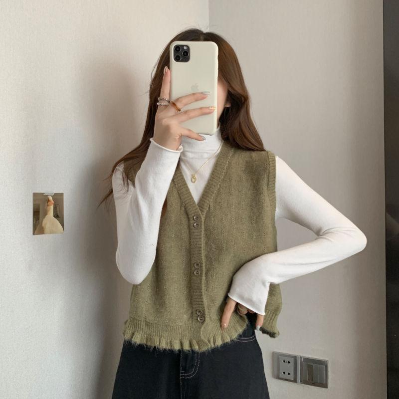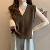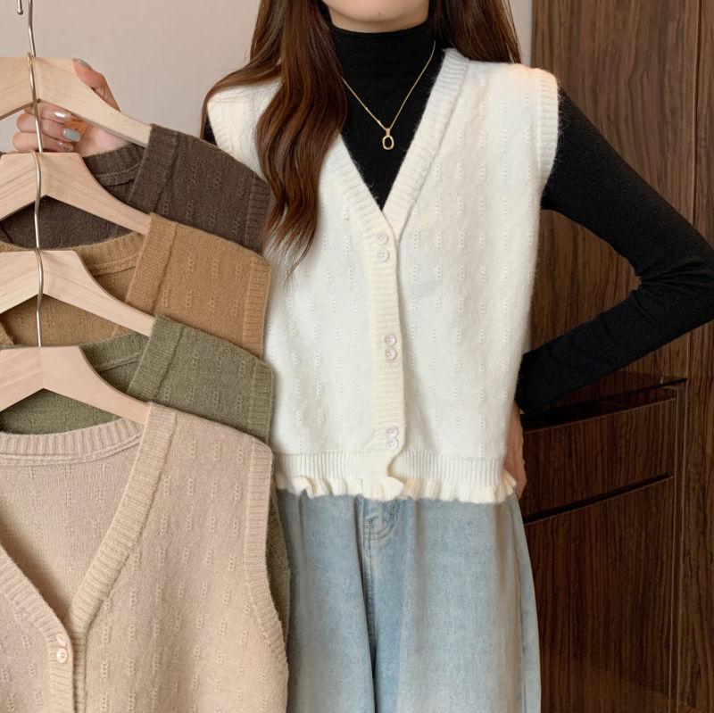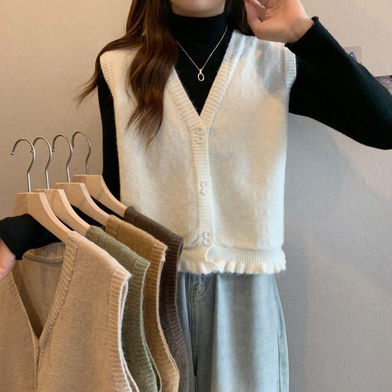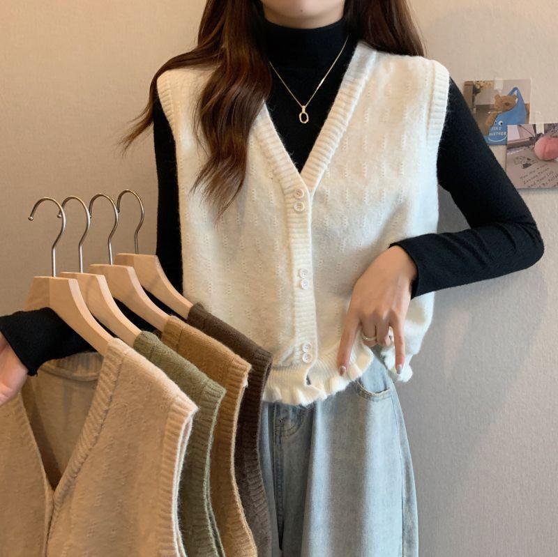 Chaleco de Punto para Mujer 2025 Nuevo Estilo Ropa Exterior Principios de Primavera Corto con Borde de Volante Cárdigan Chaleco Suéter para Superponer Chaqueta sin Mangas para Mujer