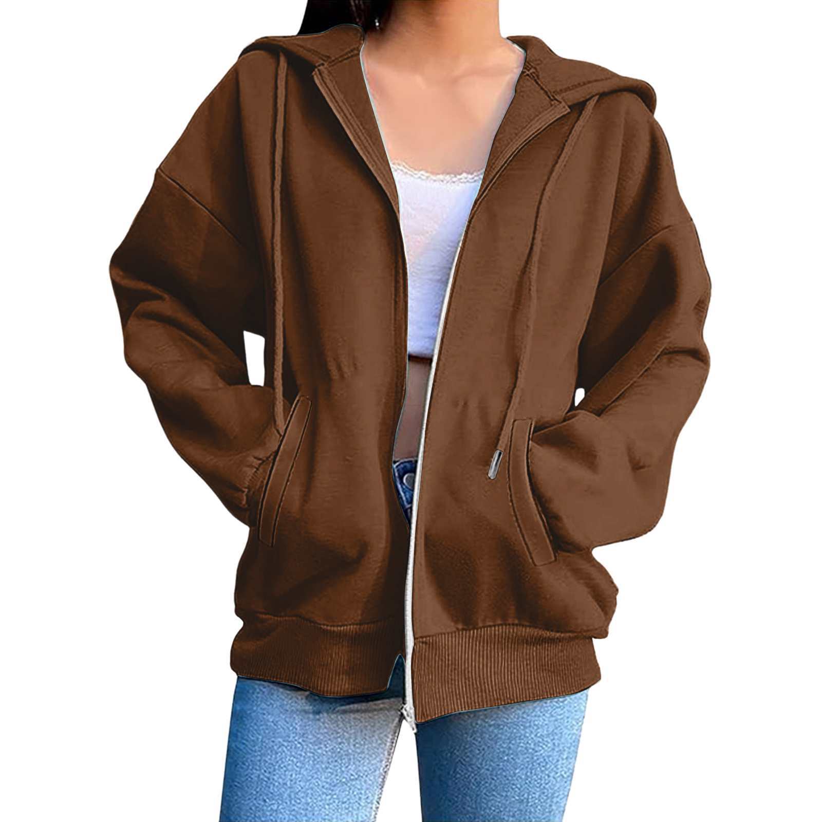 Otoño e Invierno 2025 Casual Nuevo Transfronterizo Exportación Europea y Americana Ropa de Mujer Amazon Sudadera Regular de Manga Larga con Capucha y Cremallera