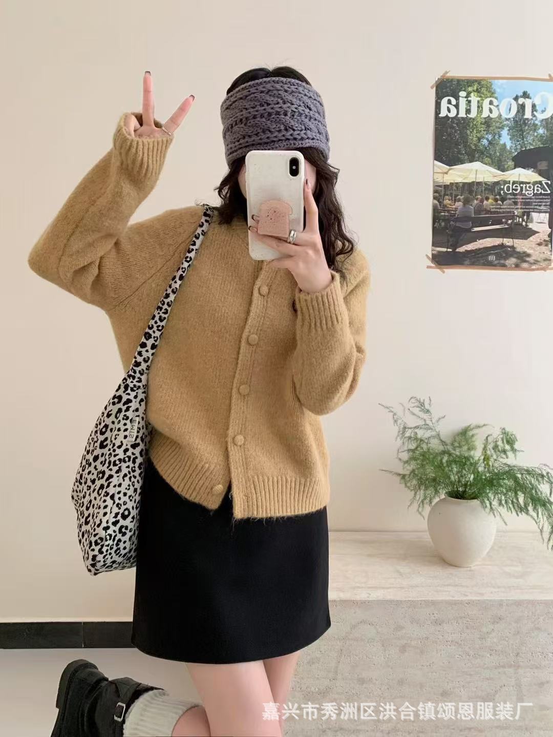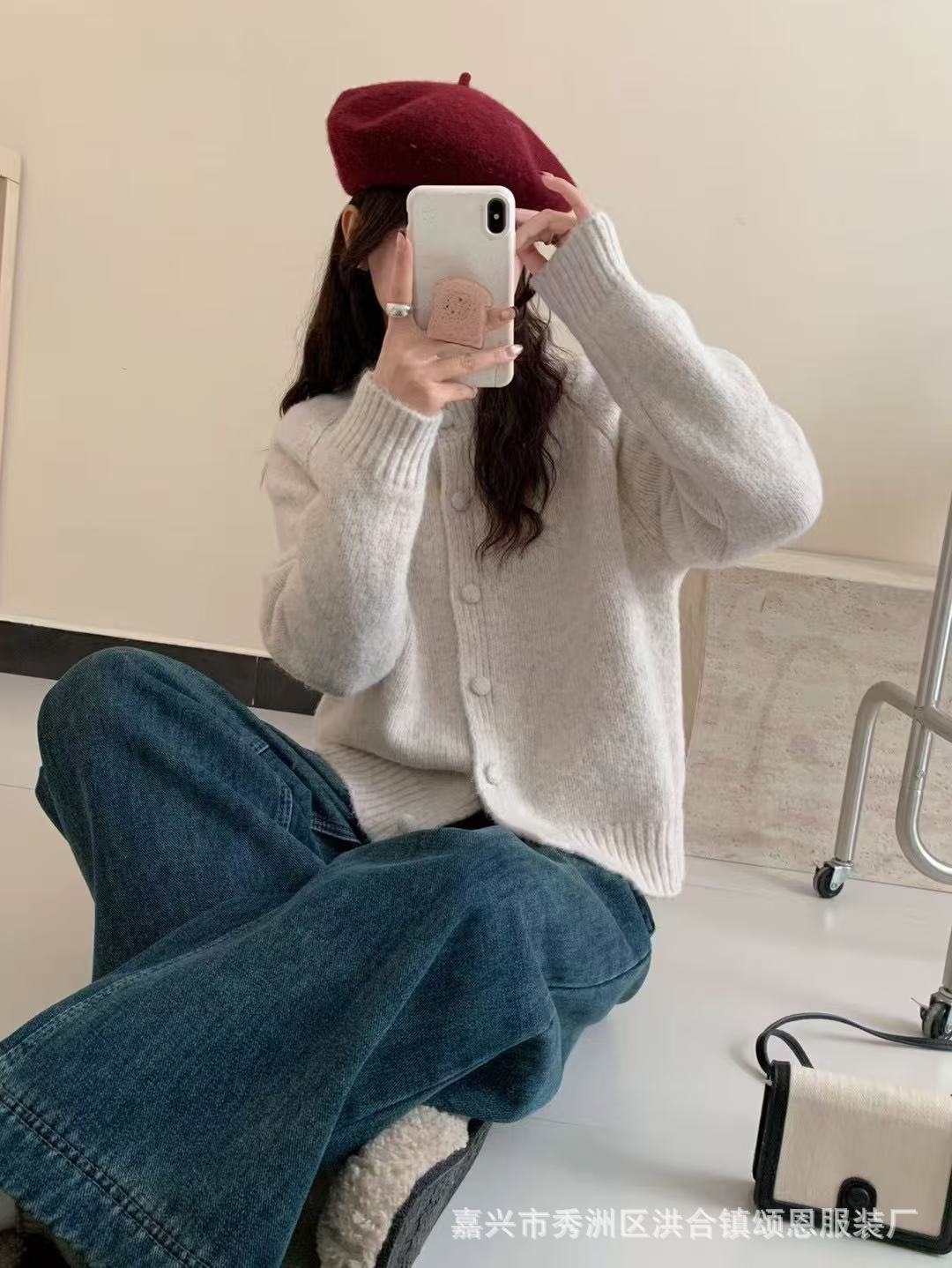 Cárdigan Japonés de Otoño Temprano Nuevo Retro Color Sólido Suéter Abrigo para Mujer Estilo Lazy Holgado Tejido Top Moderno