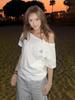 Playera estampada de hombros descubiertos y manga corta con hombros caídos, playera de algodón puro de manga corta para mujer con diseño de hombros descubiertos, borrosa y guapa
