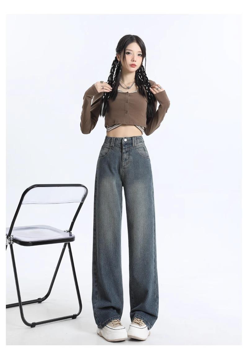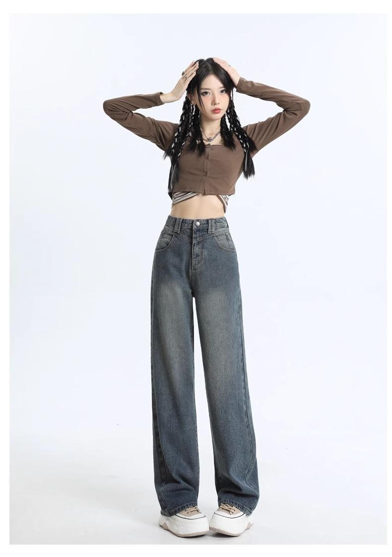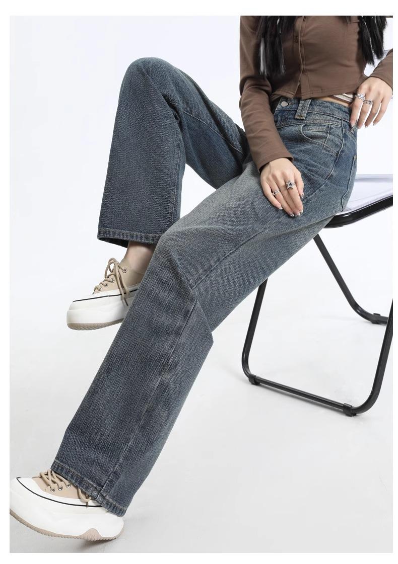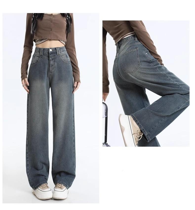 Jeans Rectos de Cintura Alta Retro para Mujer, Modernos, Combinan con Todo, Holgados, Adelgazantes, Diseño High Street, Casuales, de Pierna Ancha, Pantalones Largos