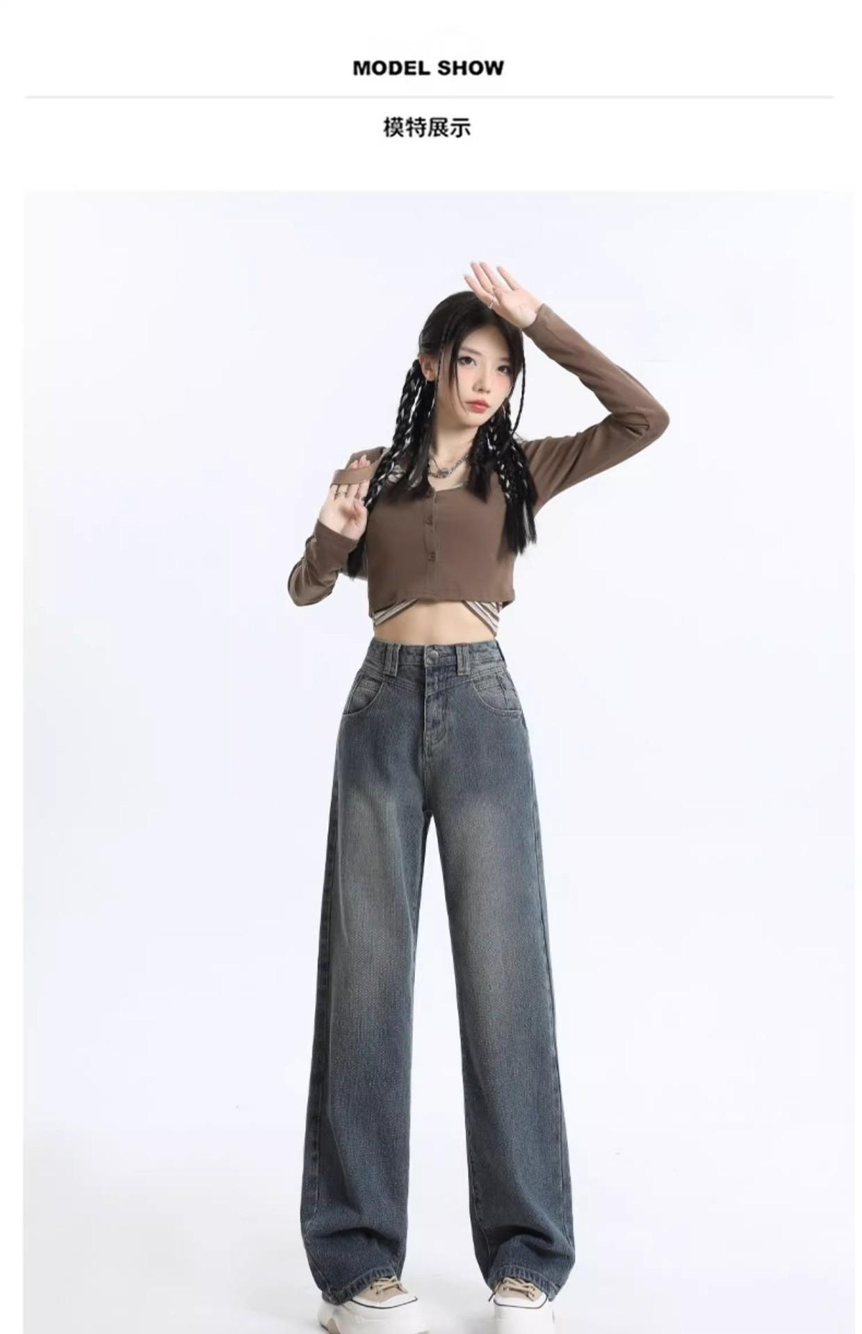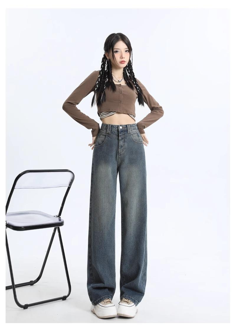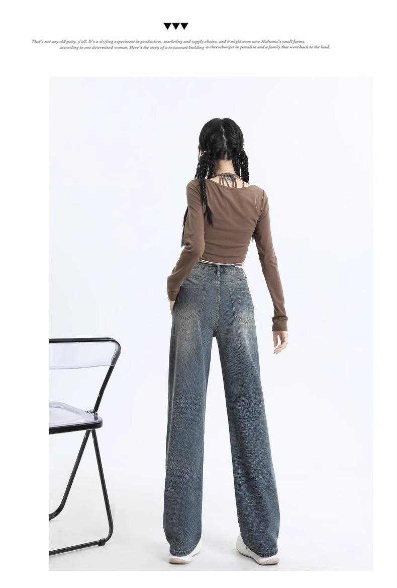 Jeans Rectos de Cintura Alta Retro para Mujer, Modernos, Combinan con Todo, Holgados, Adelgazantes, Diseño High Street, Casuales, de Pierna Ancha, Pantalones Largos
