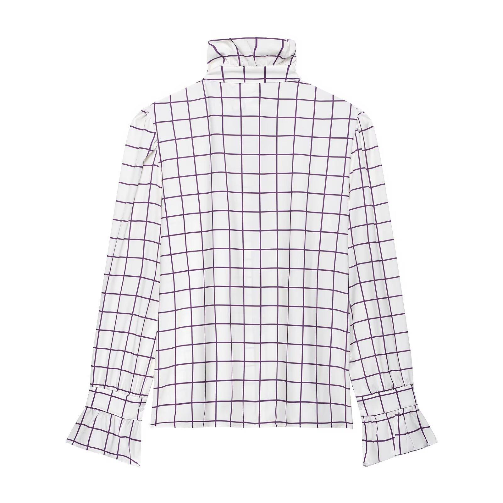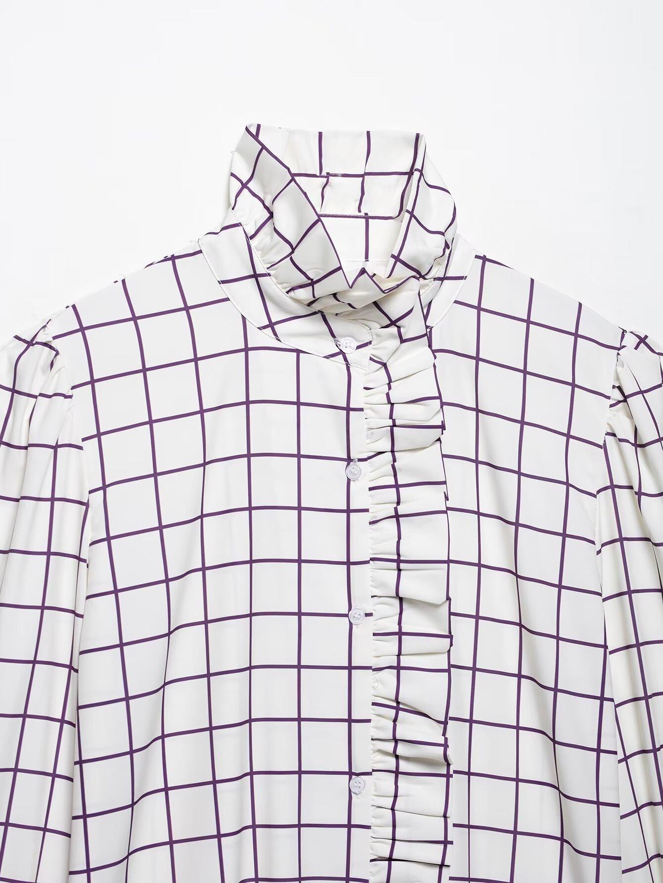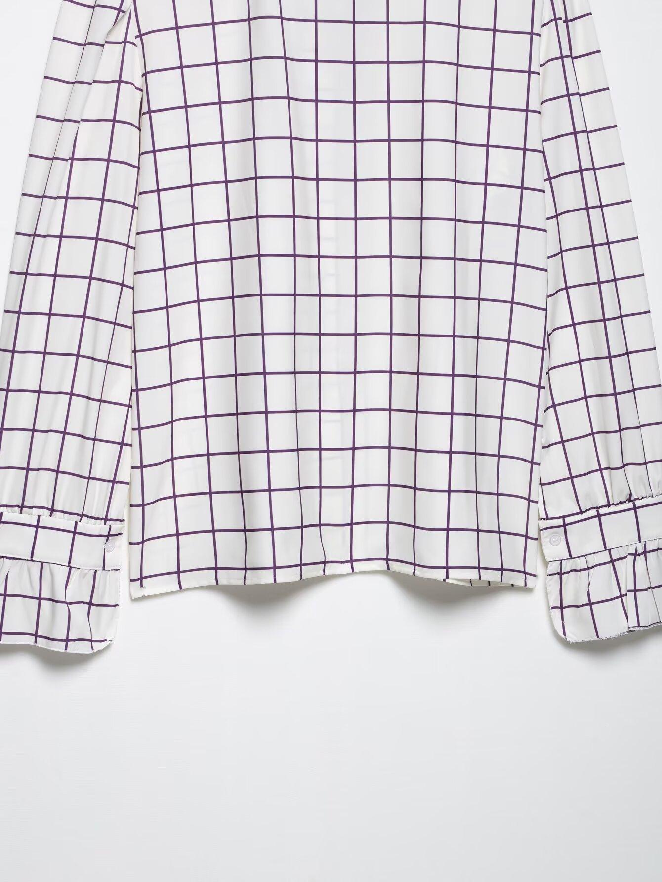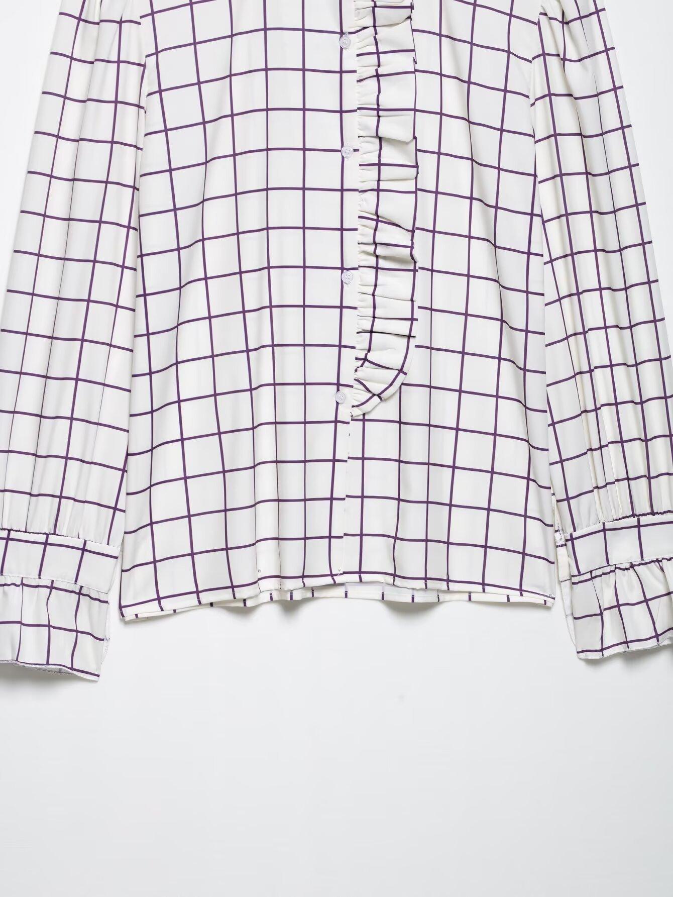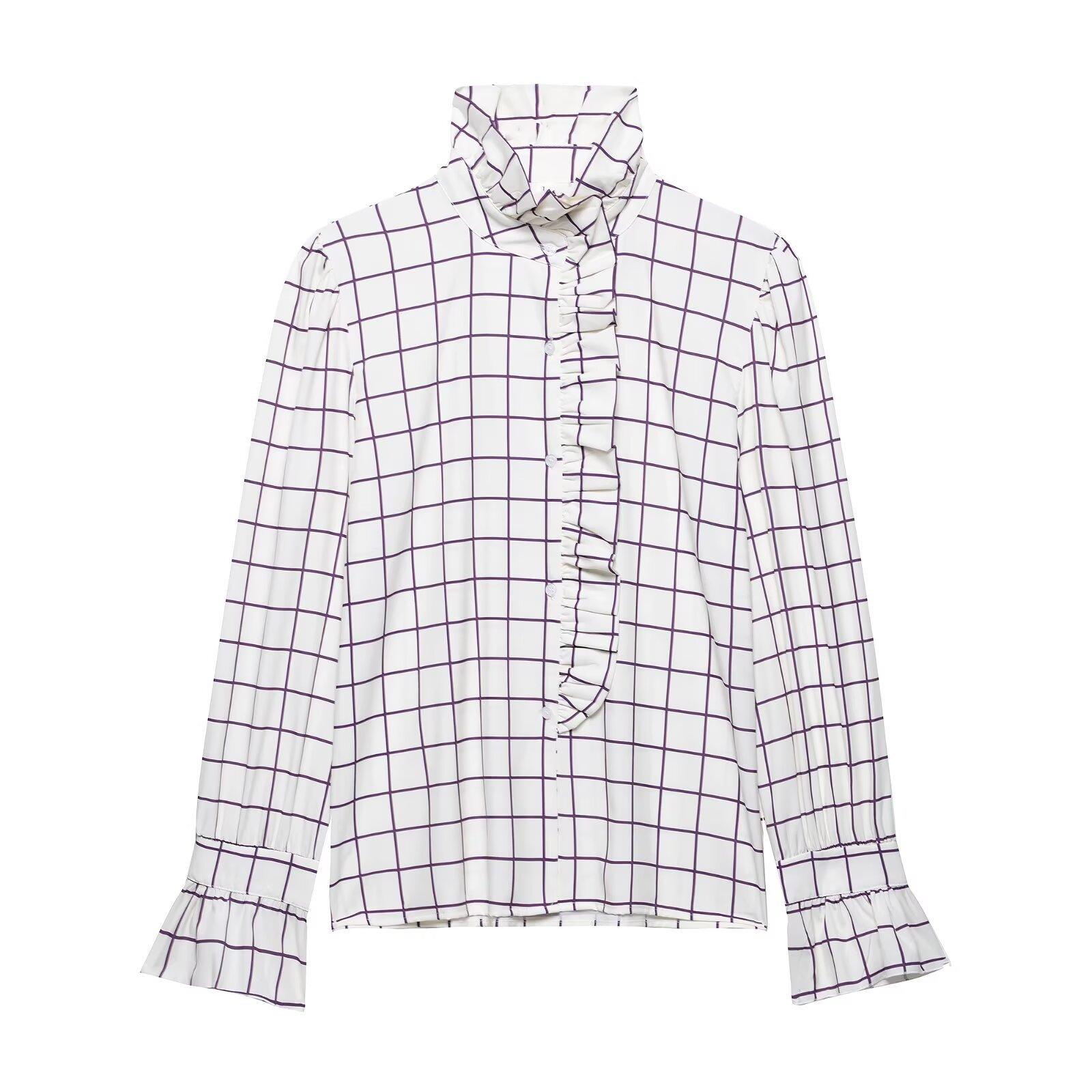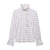 Ropa de mujer europea y americana transfronteriza 2025 primavera nueva moda temperamento sentido del diseño camisa de oreja de madera a cuadros