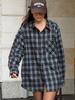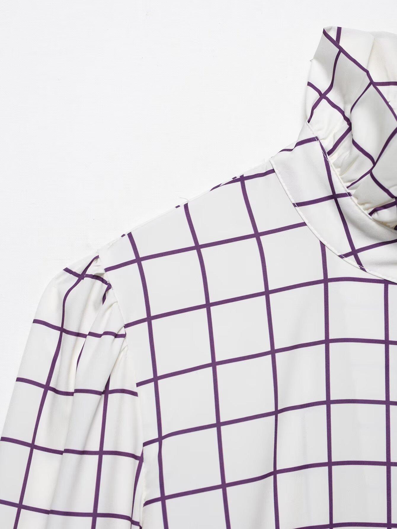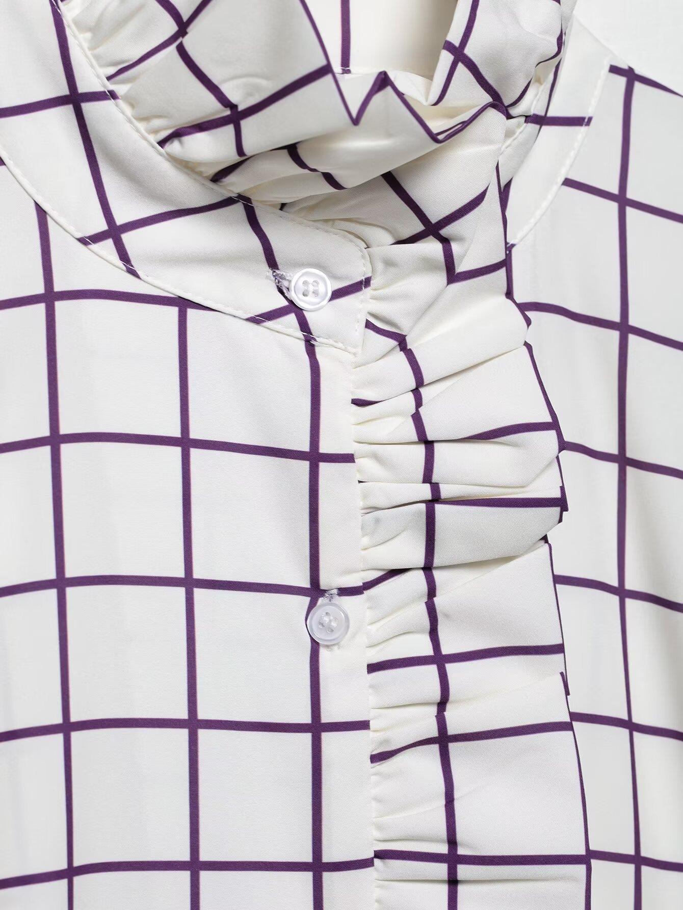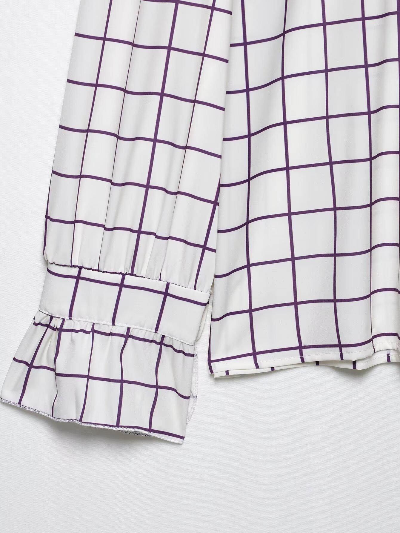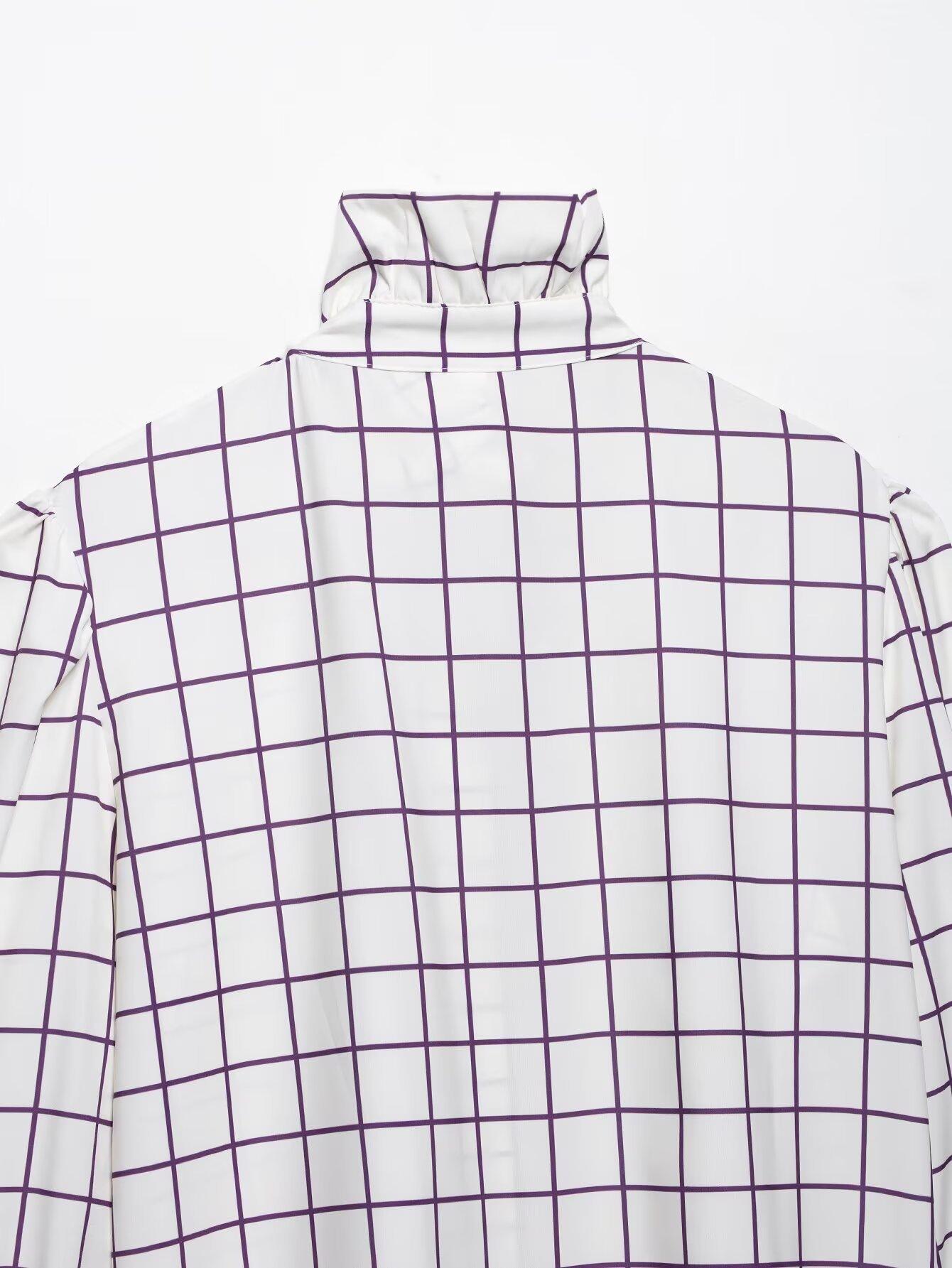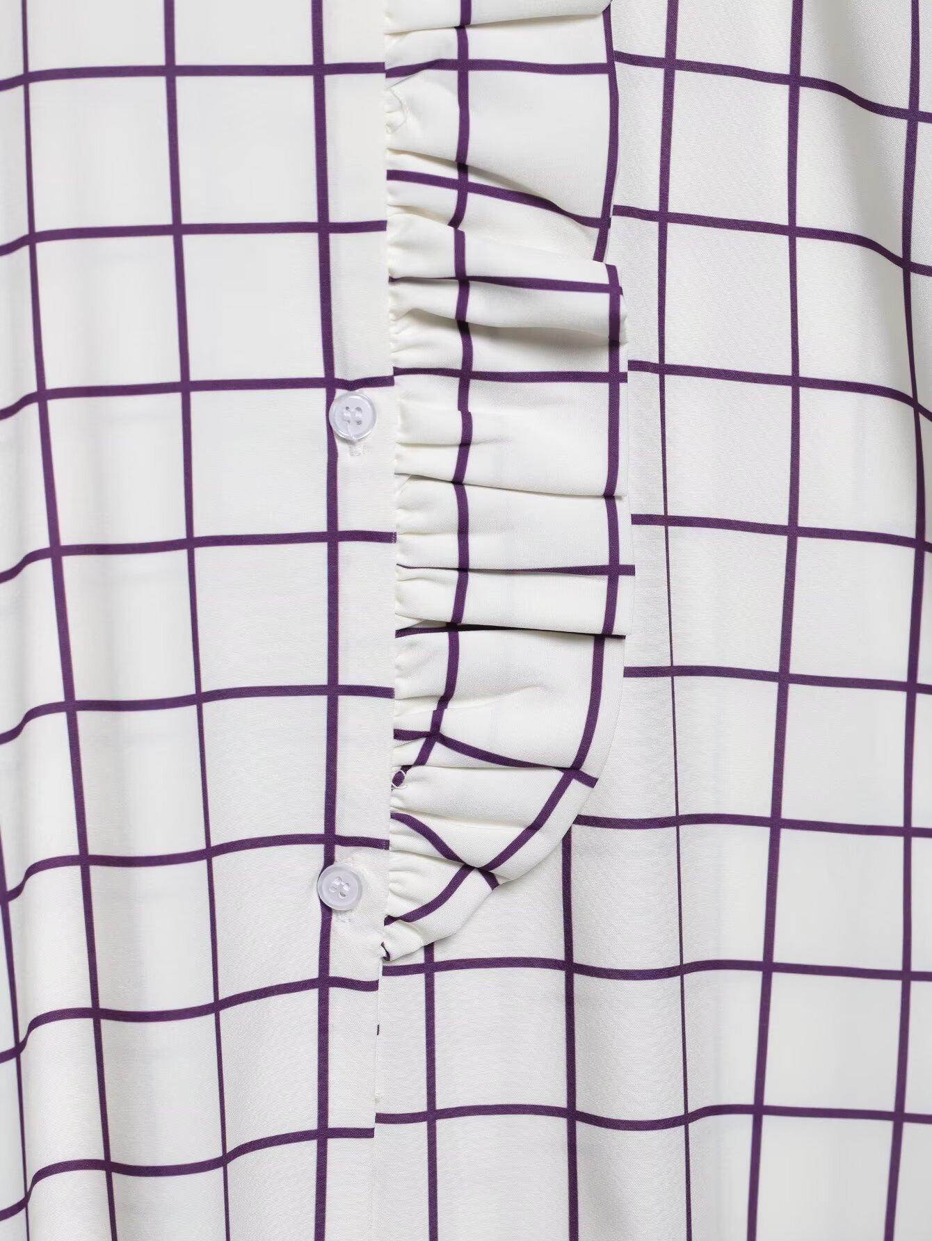 Ropa de mujer europea y americana transfronteriza 2025 primavera nueva moda temperamento sentido del diseño camisa de oreja de madera a cuadros