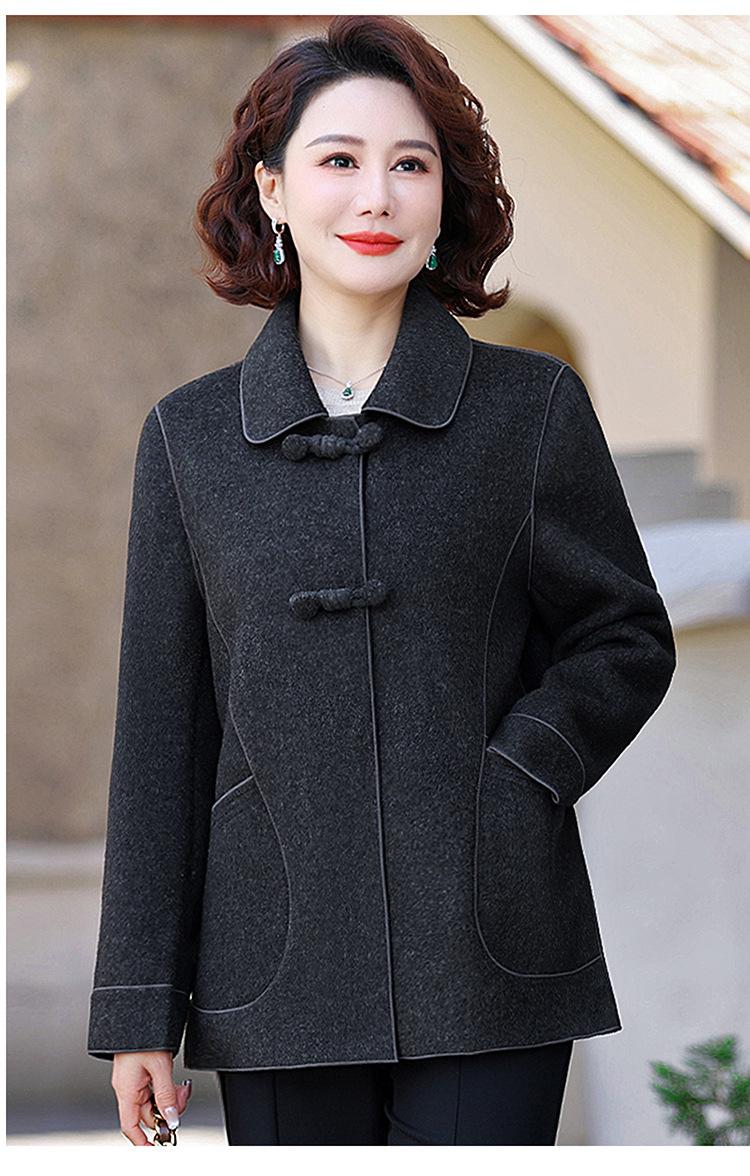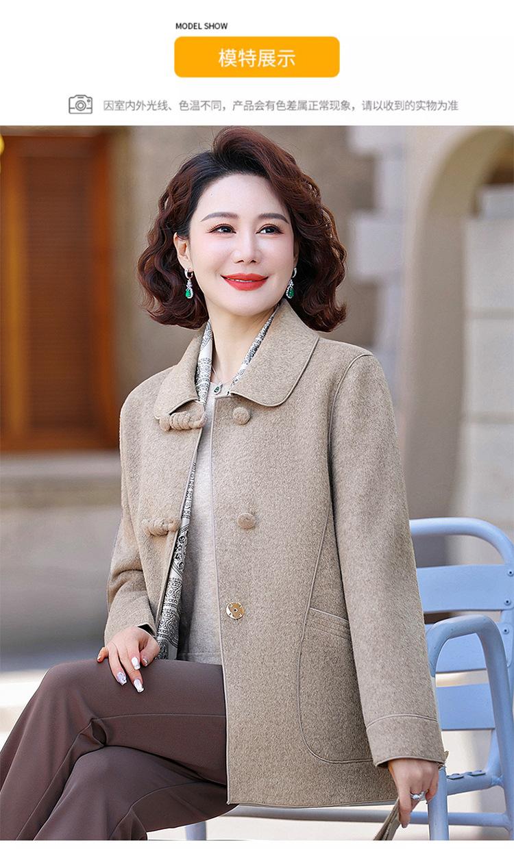 2025 Nuevo Abrigo de Lana de Primavera y Otoño para Madres de Mediana Edad Ropa de Moda para Mujeres de Mediana Edad y Mayores Elegante Top de Lana de Doble Faz