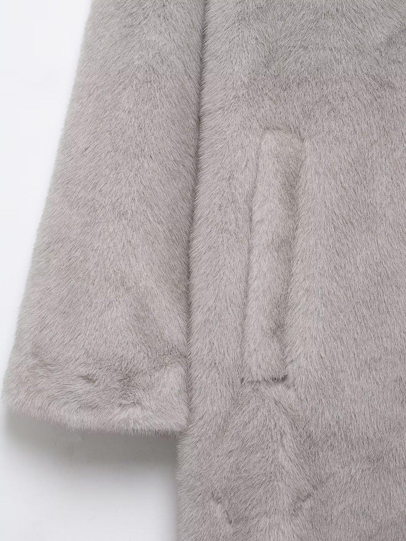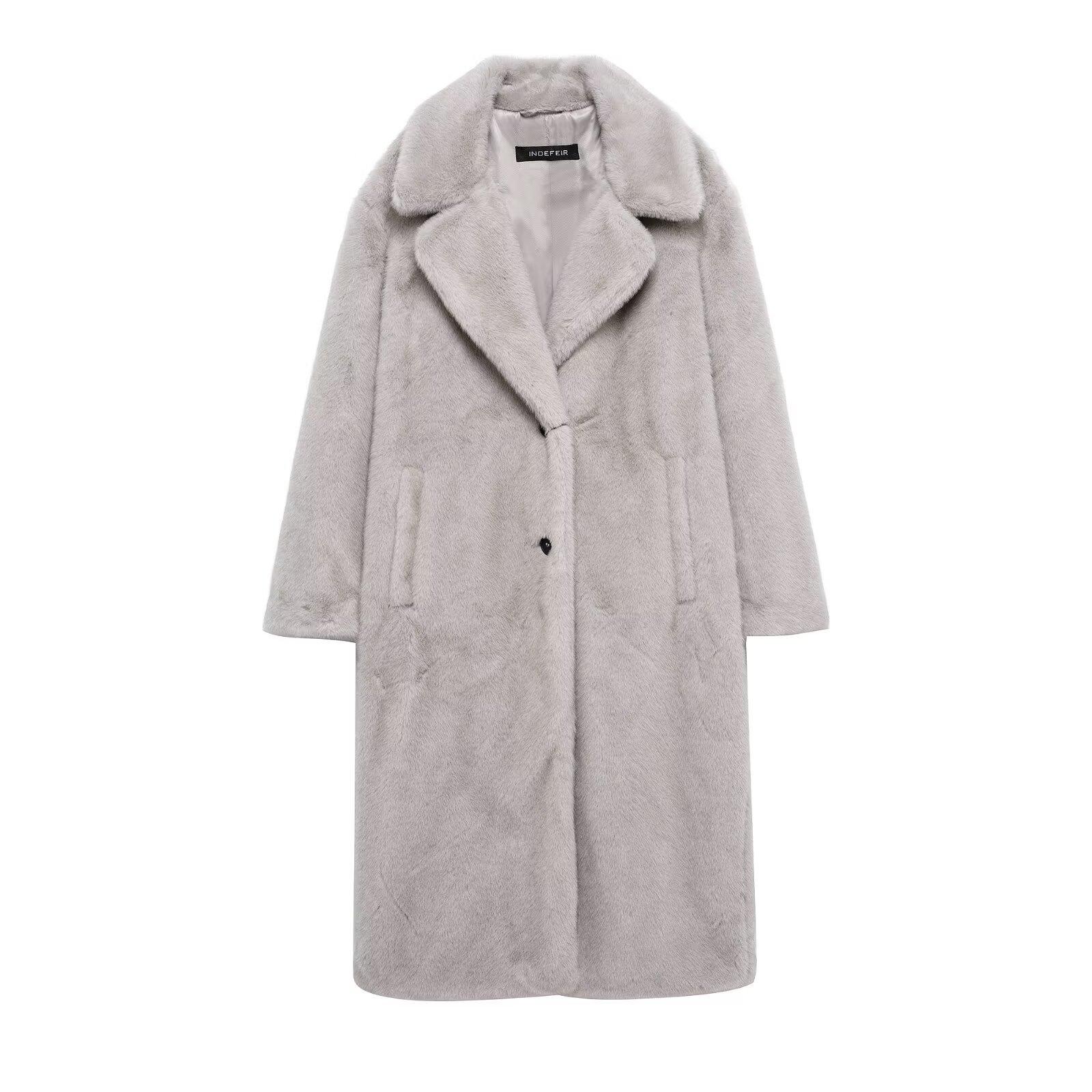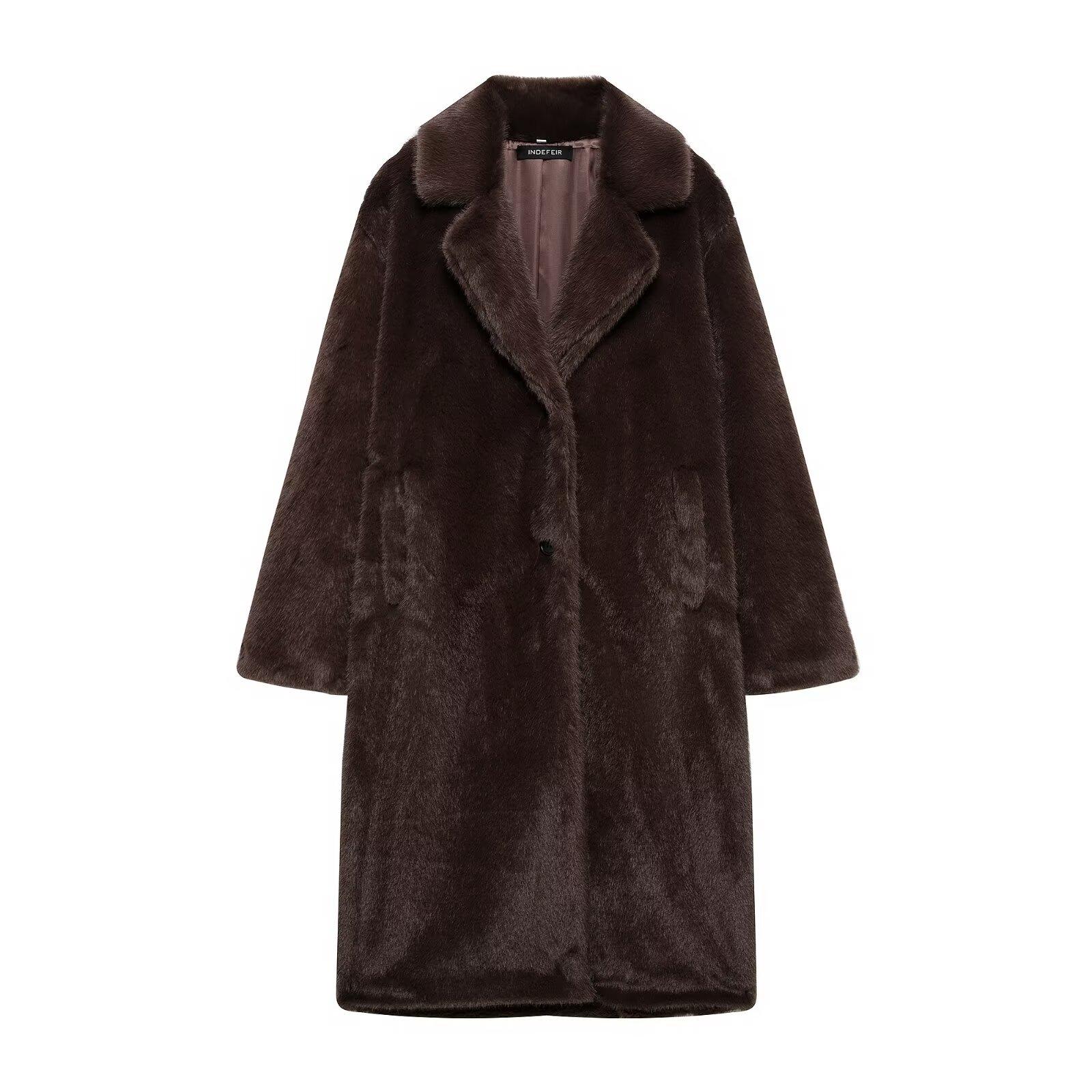 Amazon transfronterizo 2024 otoño e invierno nuevo estilo europeo y americano efecto piel sintética abrigo largo 6318/245