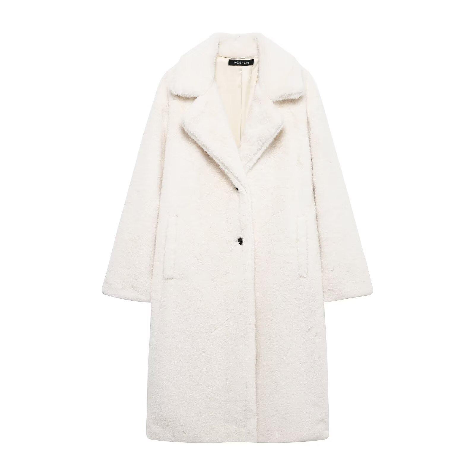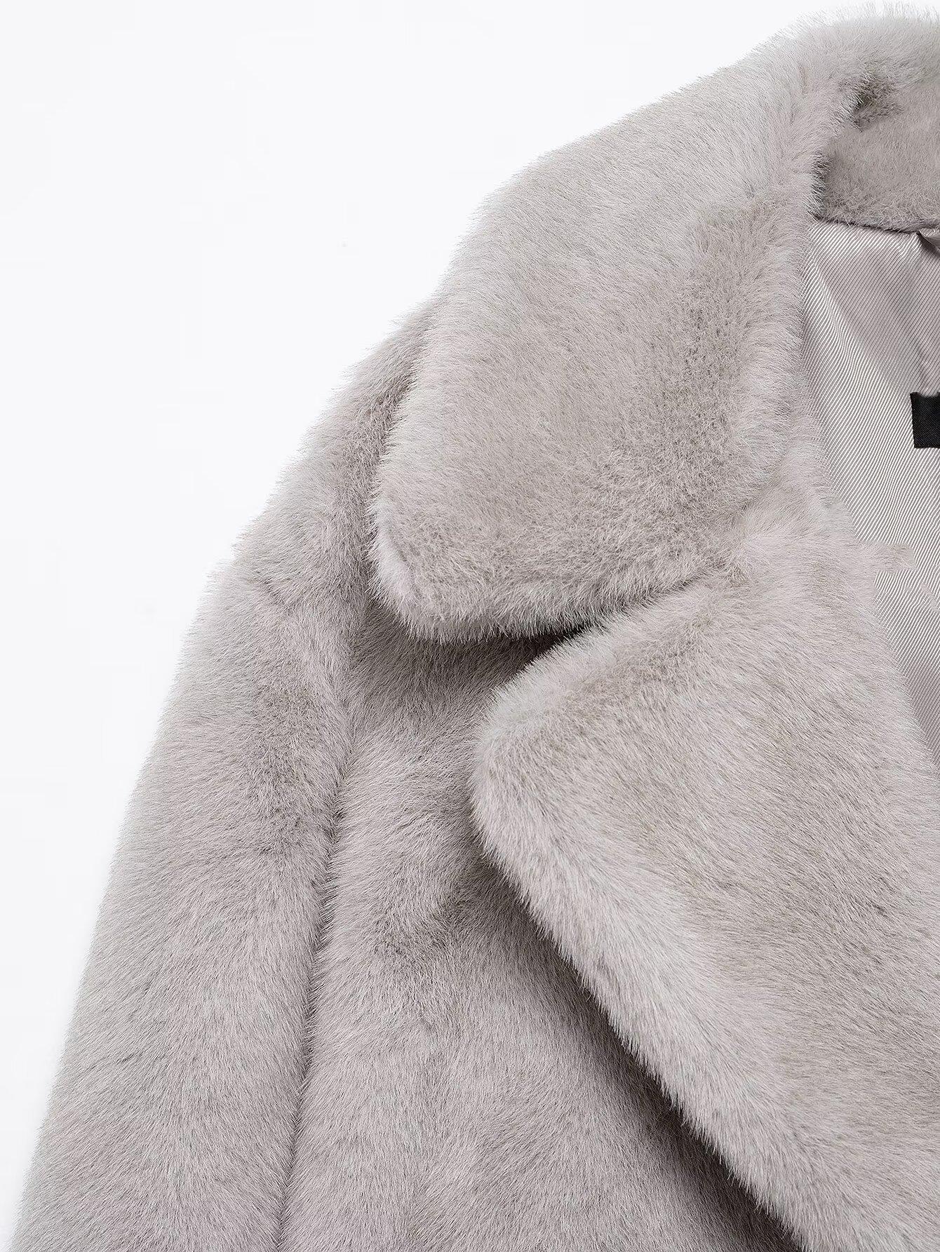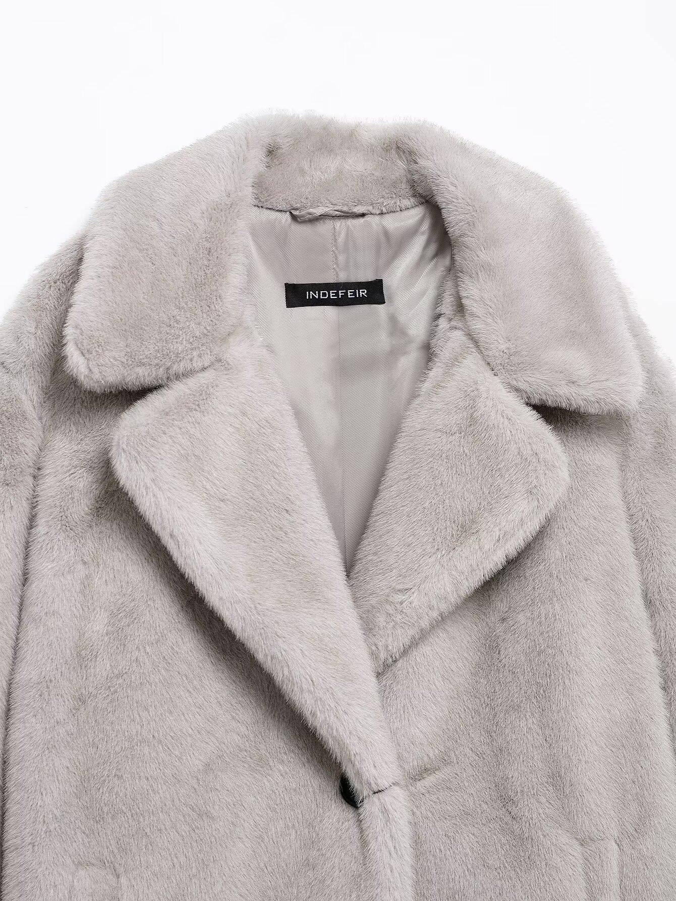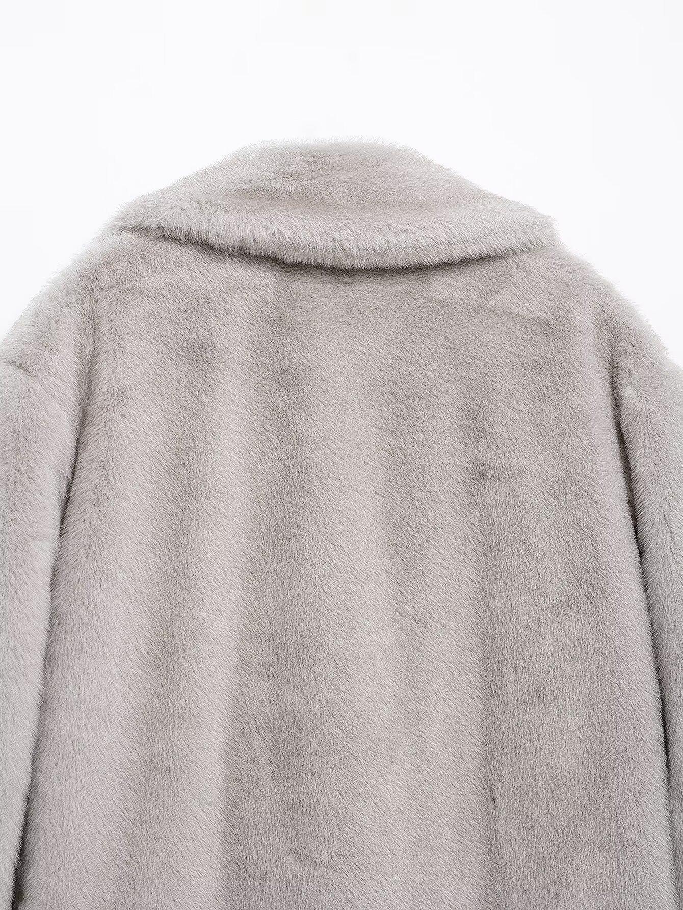 Amazon transfronterizo 2024 otoño e invierno nuevo estilo europeo y americano efecto piel sintética abrigo largo 6318/245