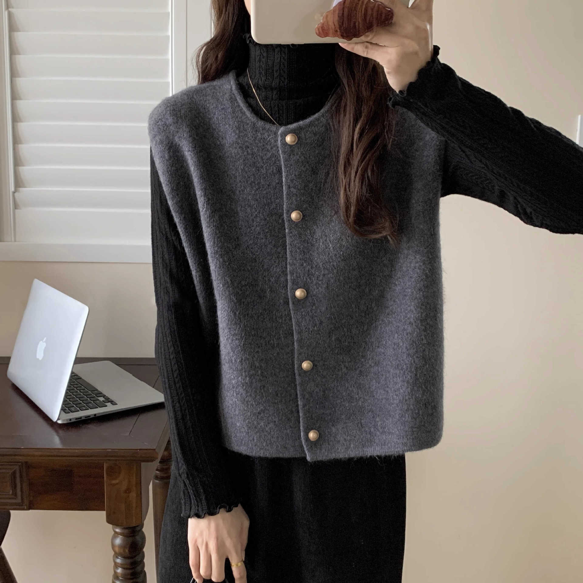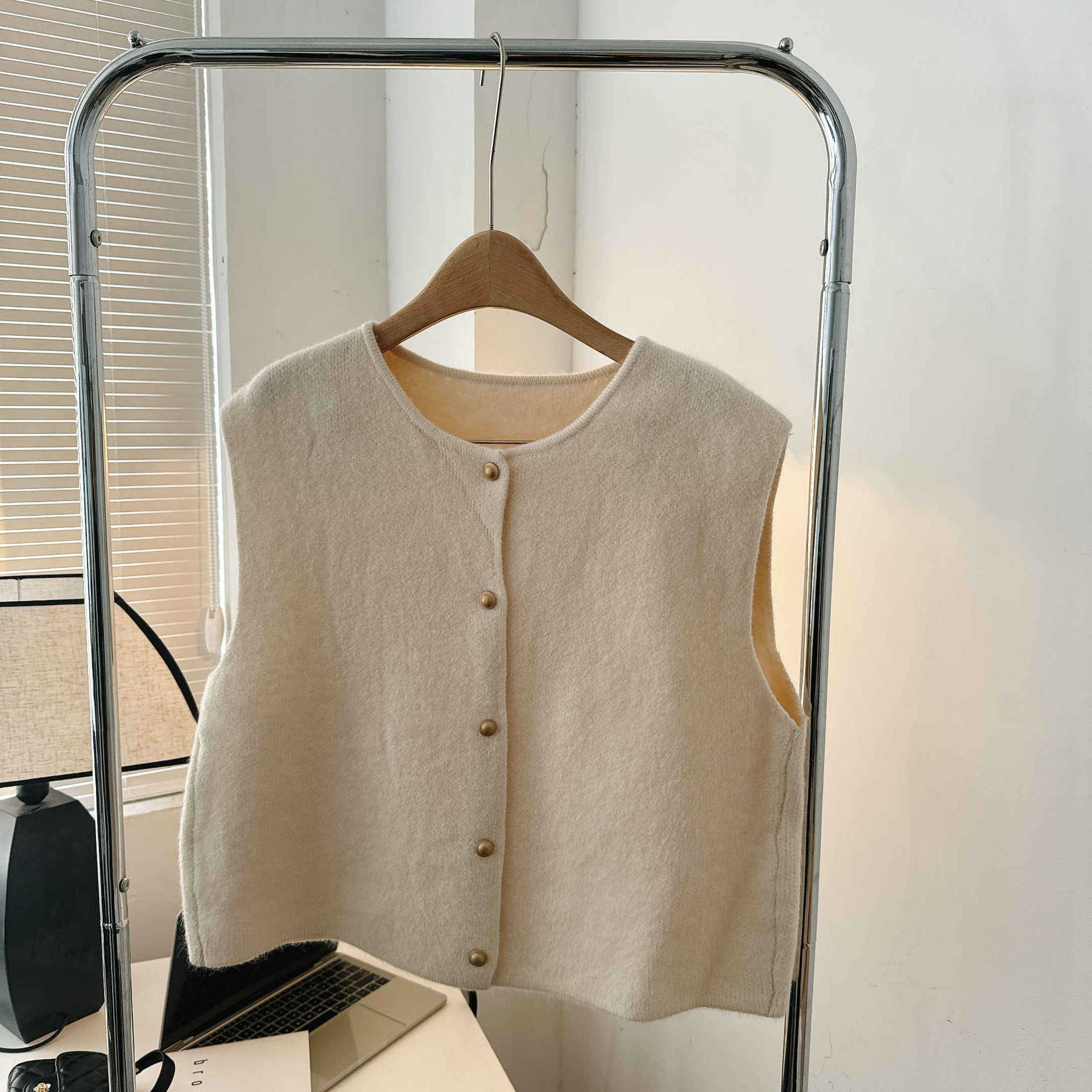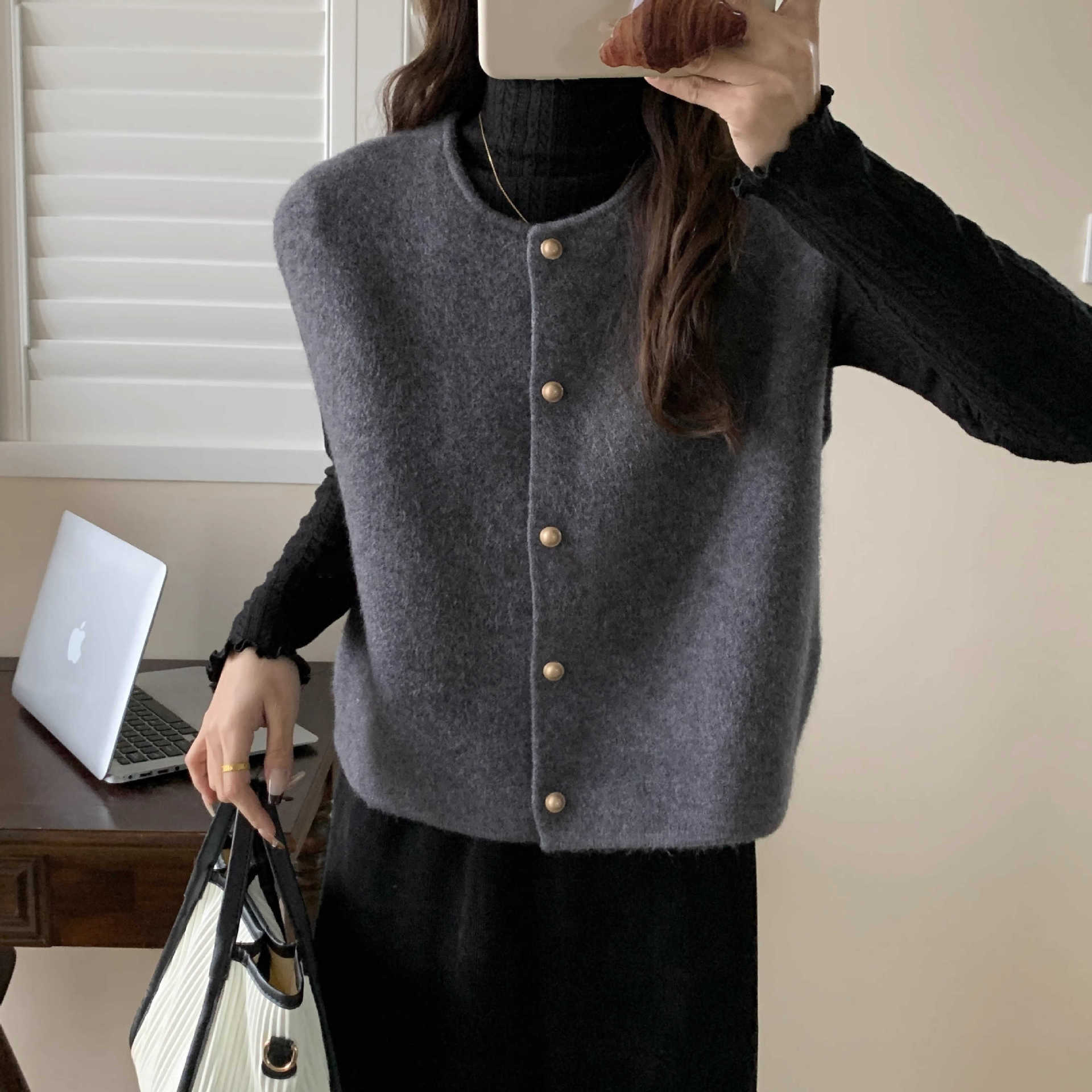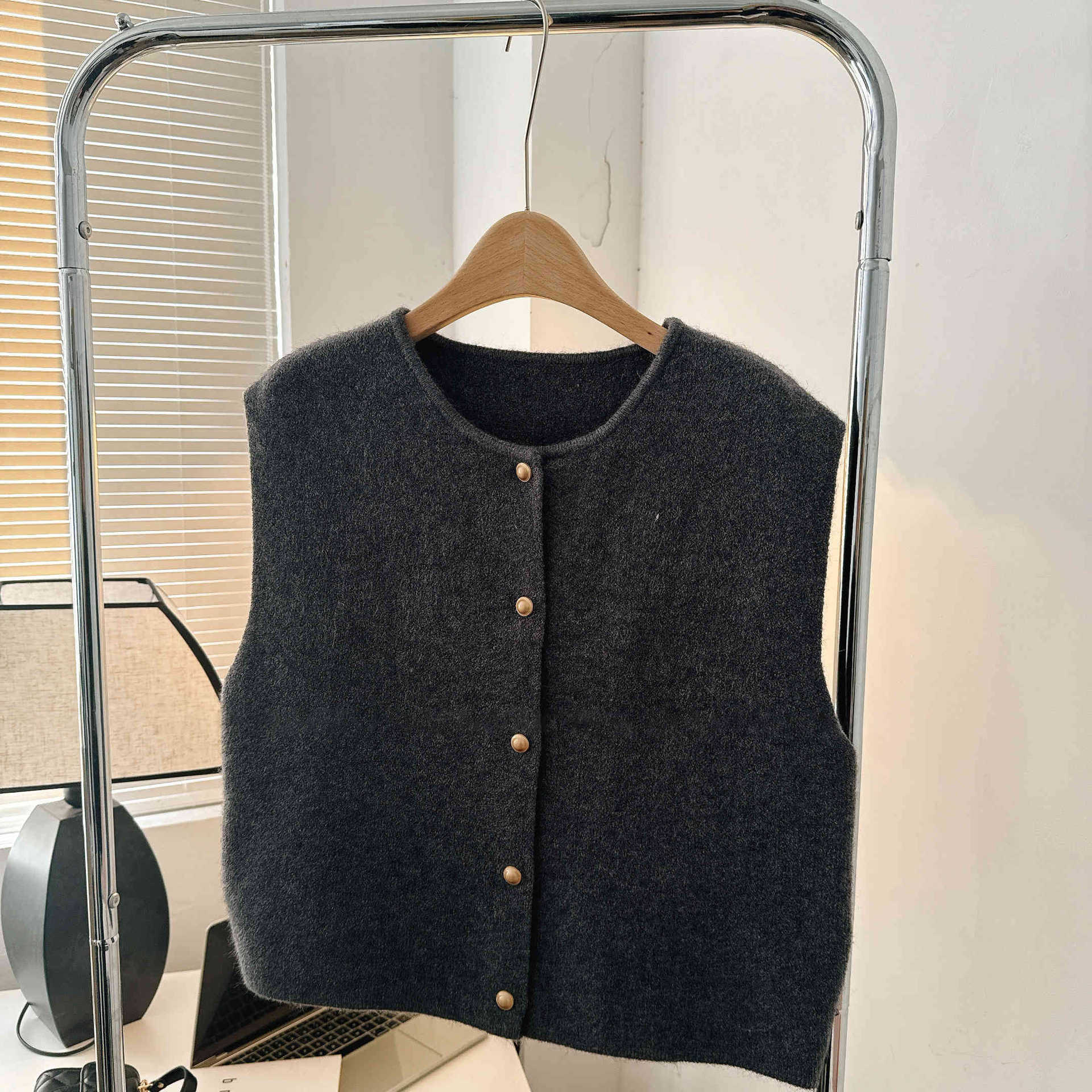 Chaleco de Punto Gris en Capas Estilo Coreano para Mujer Primavera 2025 Suéter Suave Ceroso Cárdigan sin Mangas Chaleco Relajado y Versátil