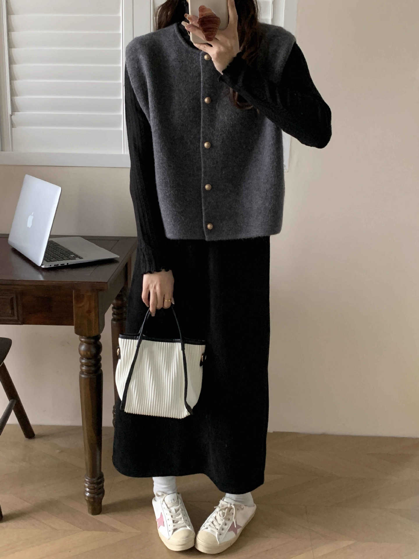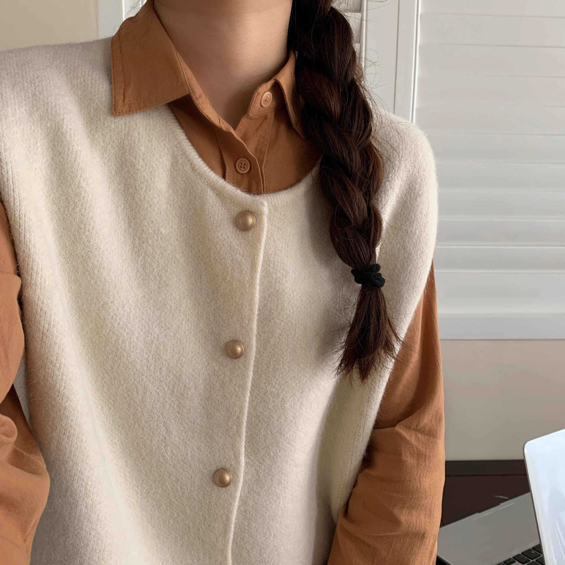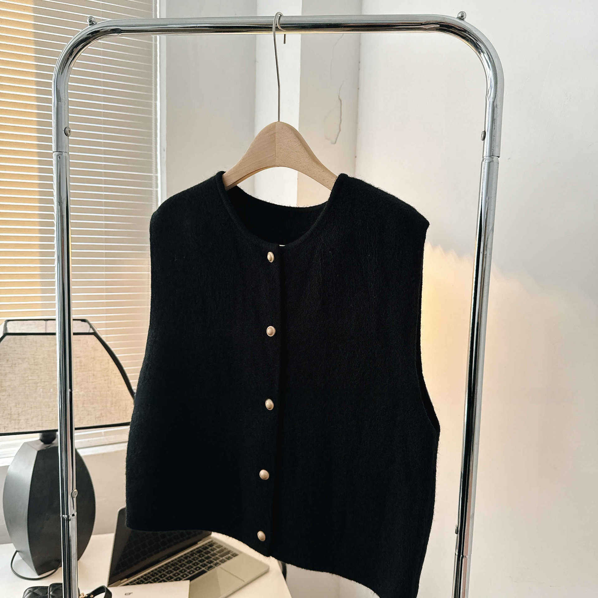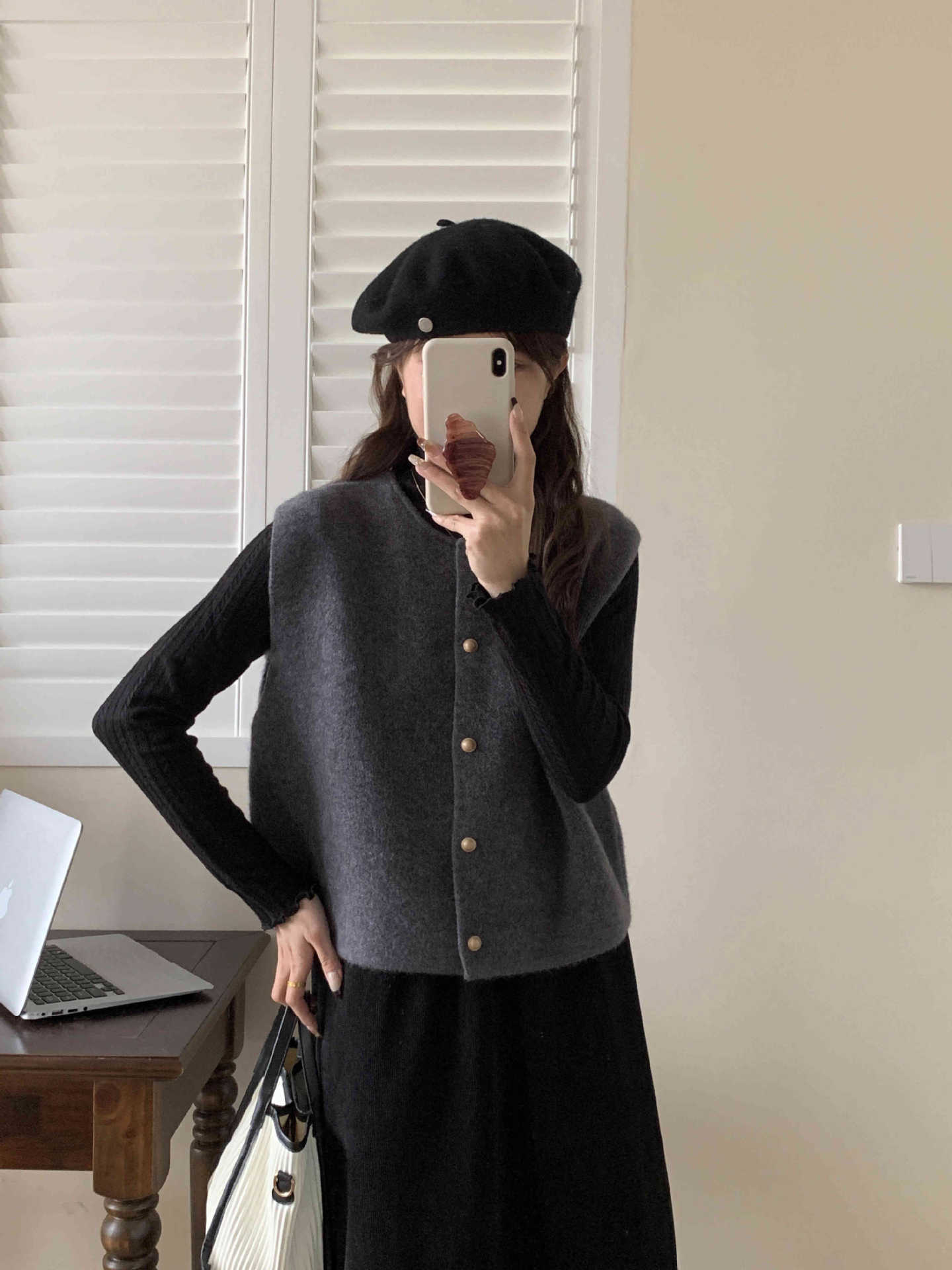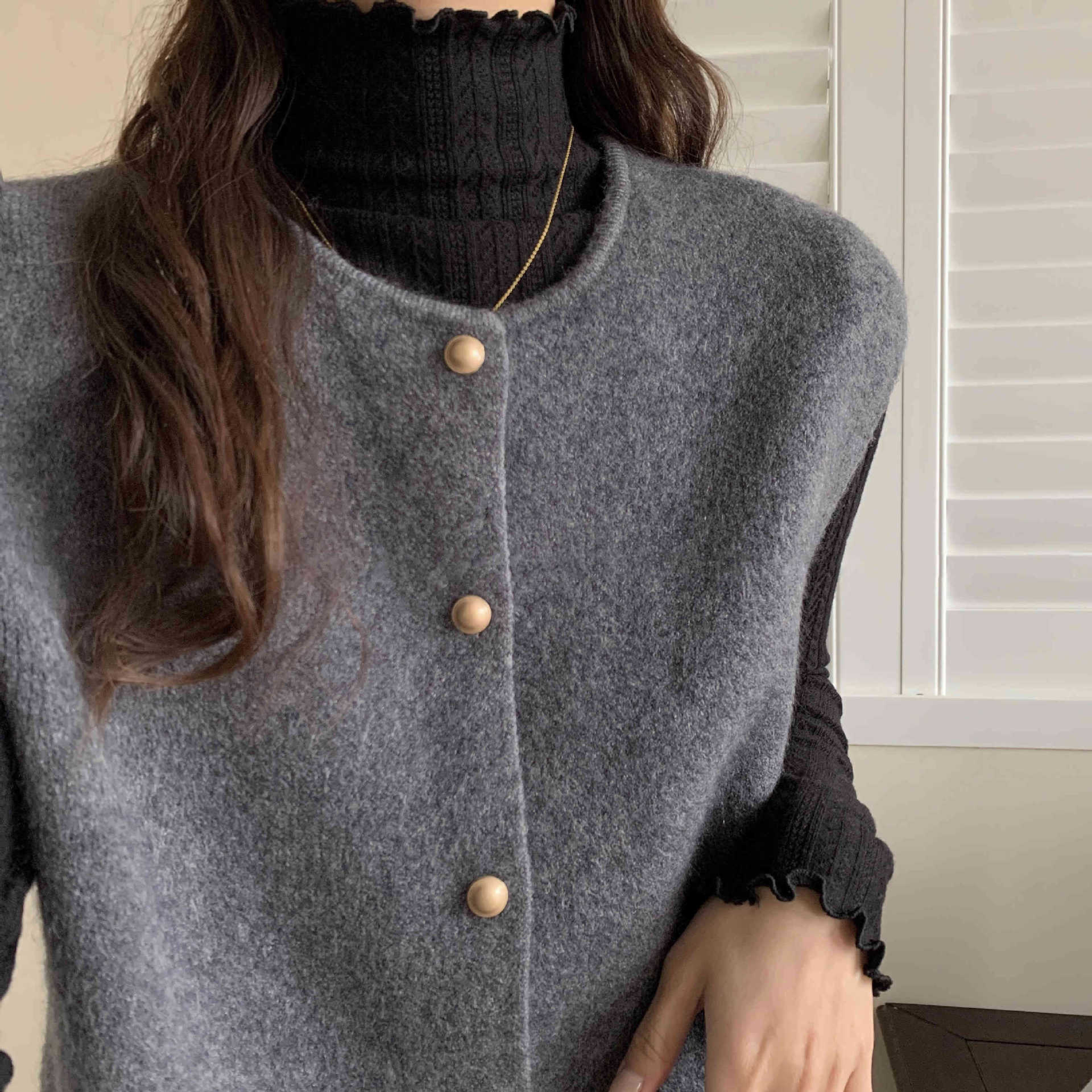Chaleco de Punto Gris en Capas Estilo Coreano para Mujer Primavera 2025 Suéter Suave Ceroso Cárdigan sin Mangas Chaleco Relajado y Versátil