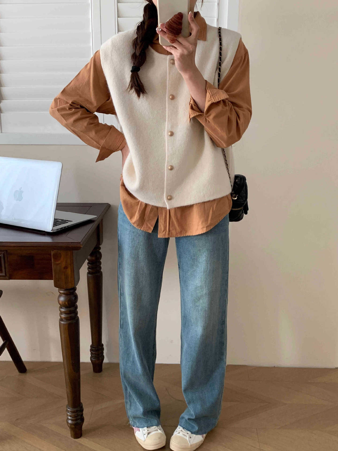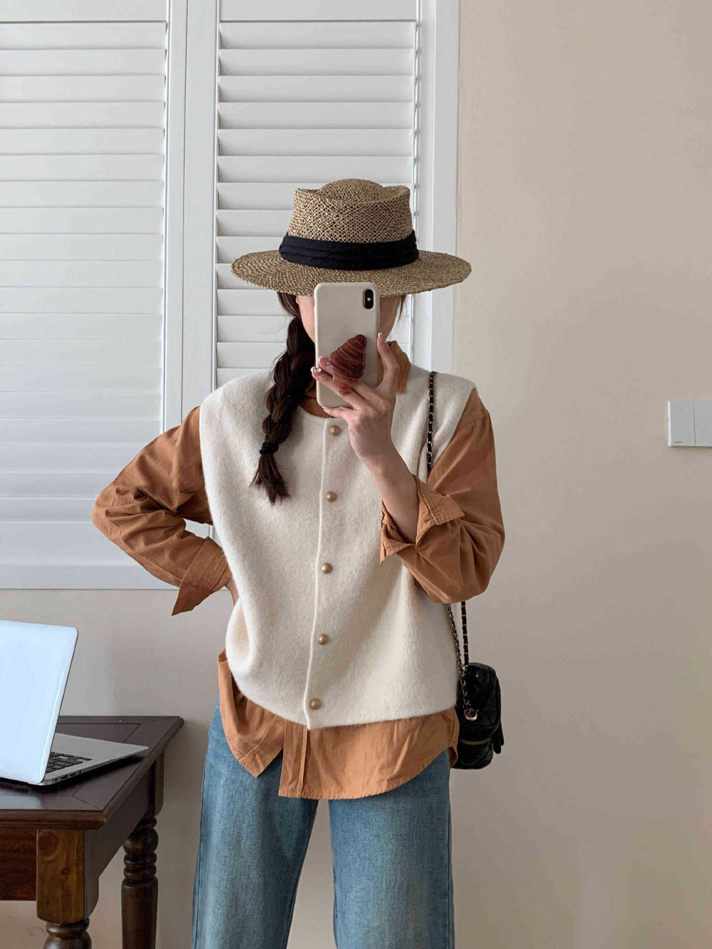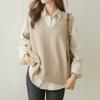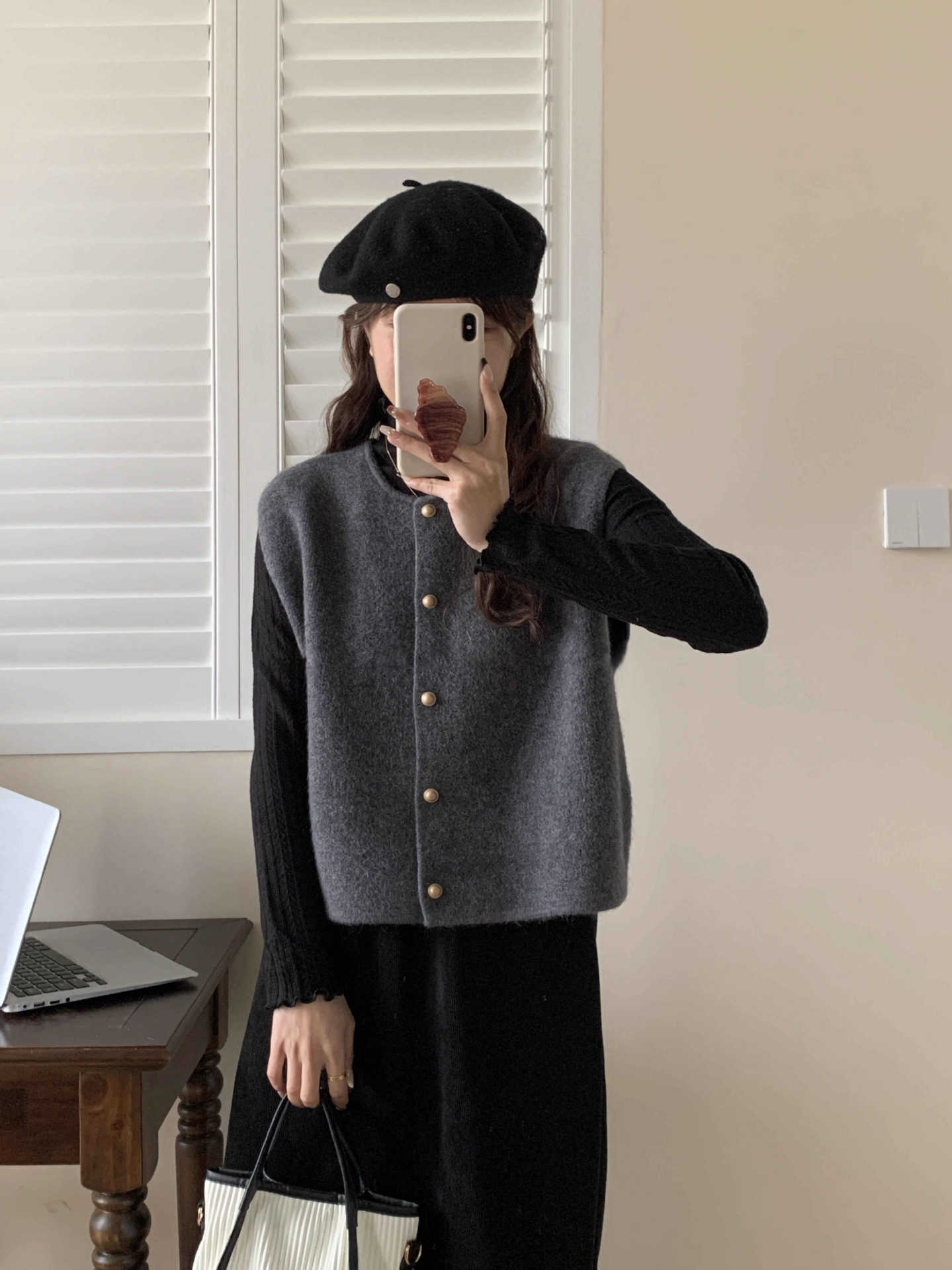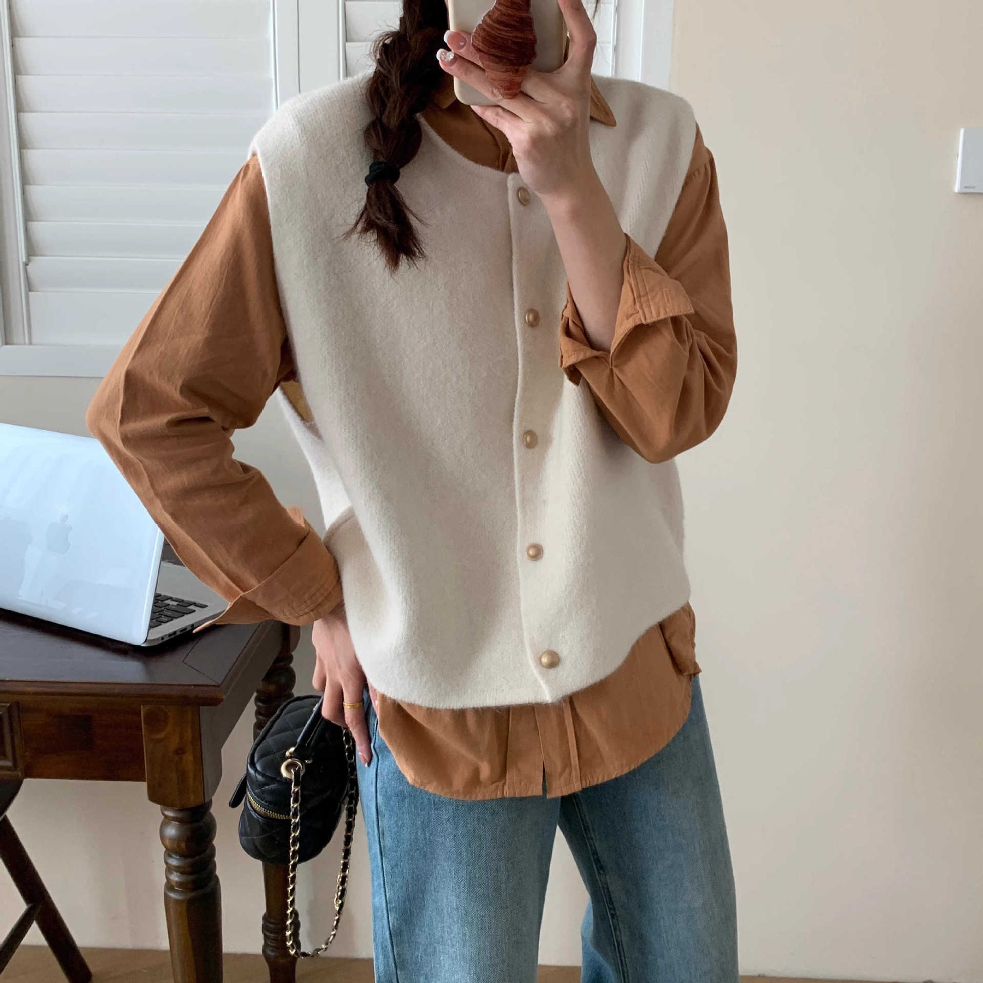 Chaleco de Punto Gris en Capas Estilo Coreano para Mujer Primavera 2025 Suéter Suave Ceroso Cárdigan sin Mangas Chaleco Relajado y Versátil