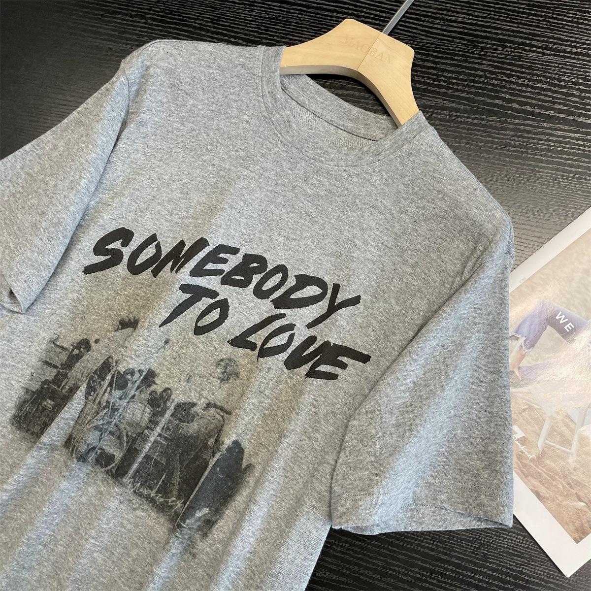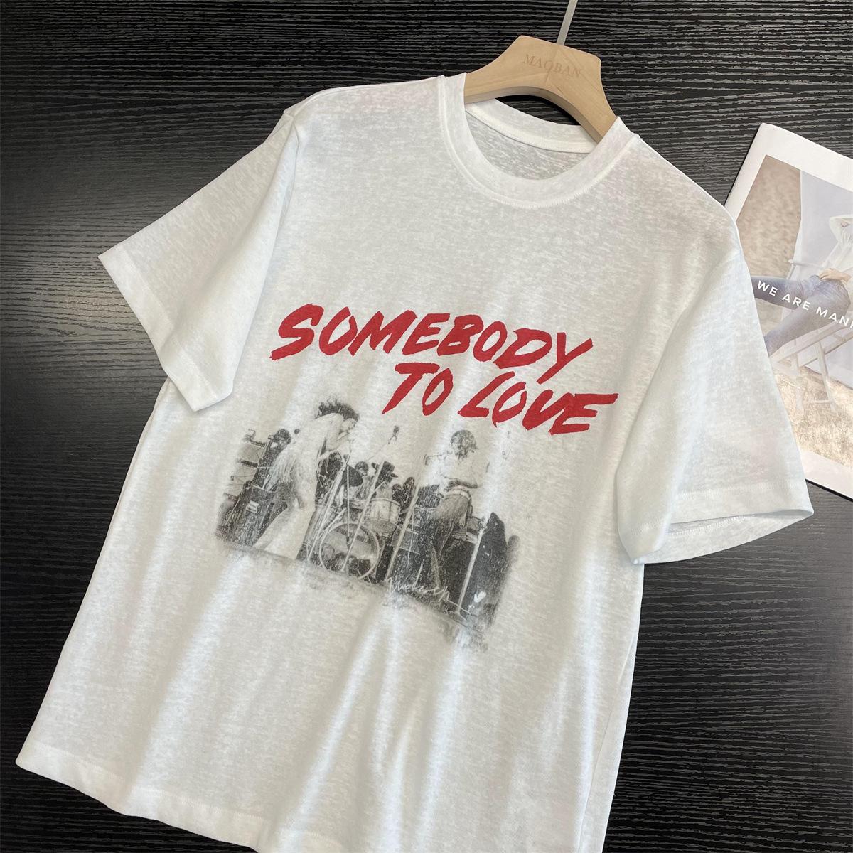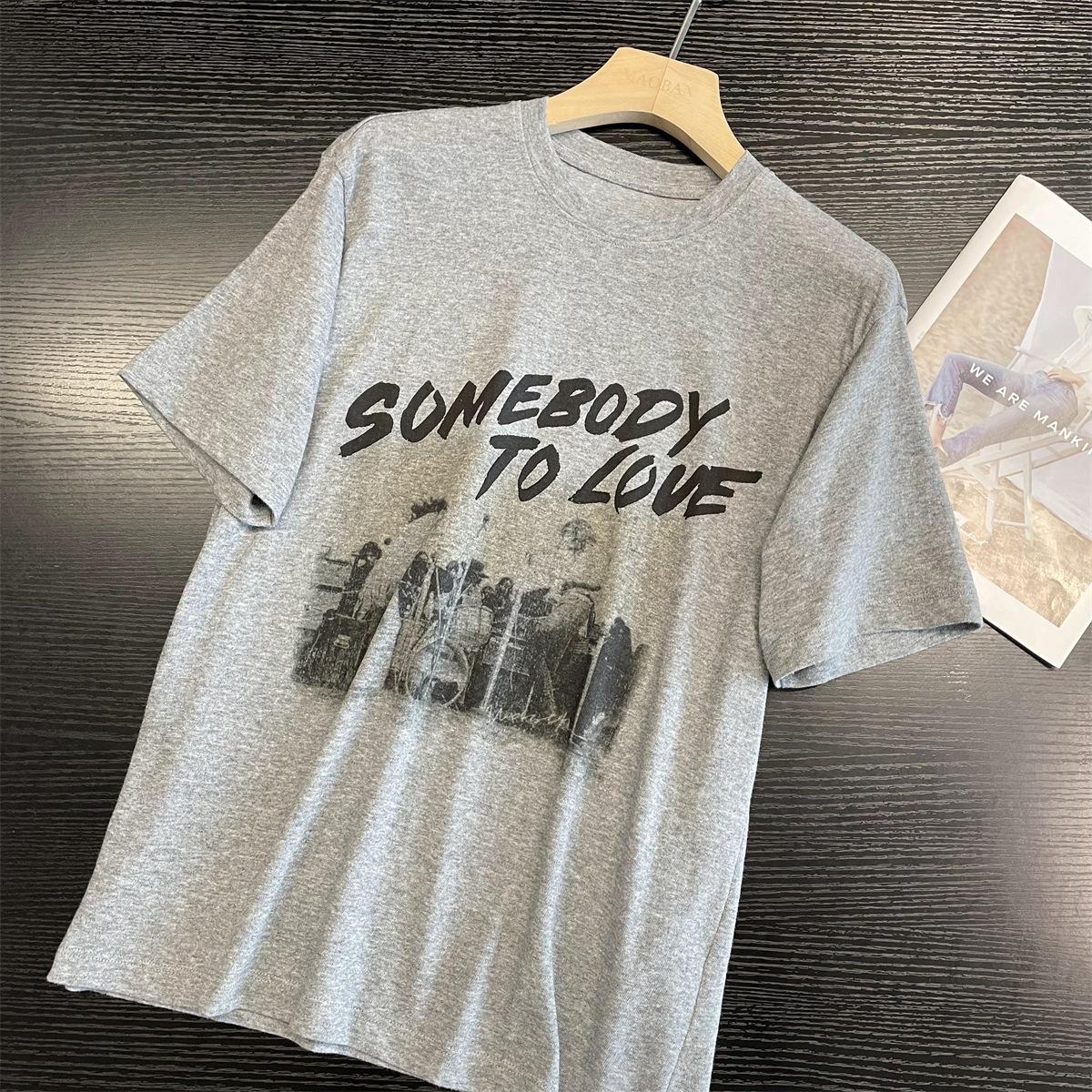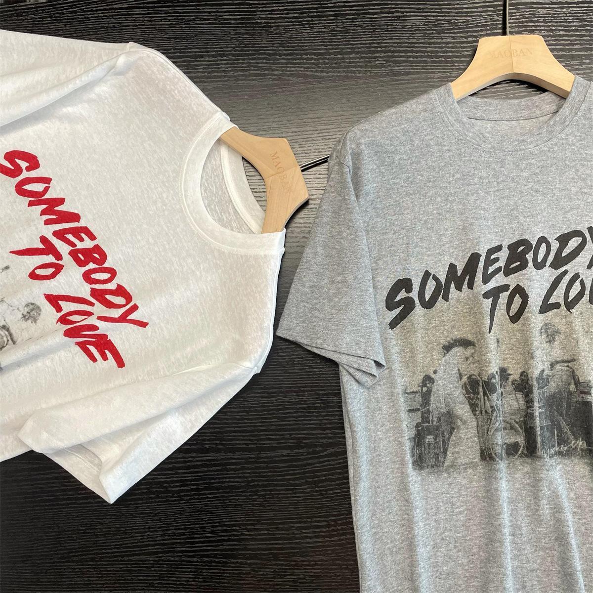 El estampado "Somebody to Love" en el pecho usa un acabado desgastado.
