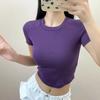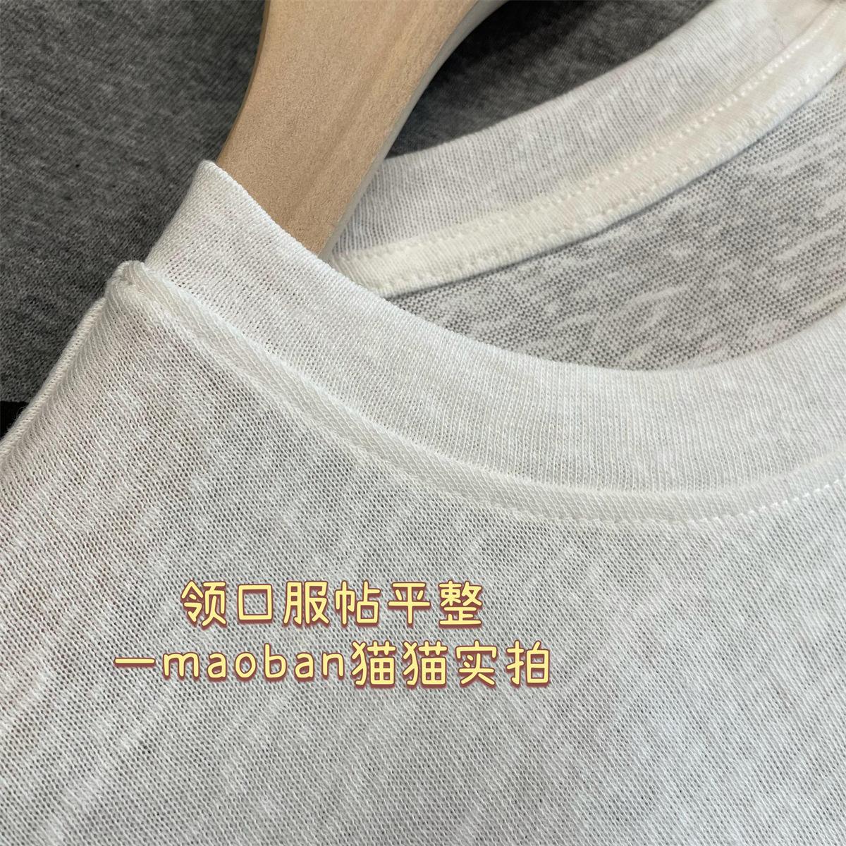 El cuello redondo a medida es simple y poderoso, equilibrando el aire casual de la camiseta.
