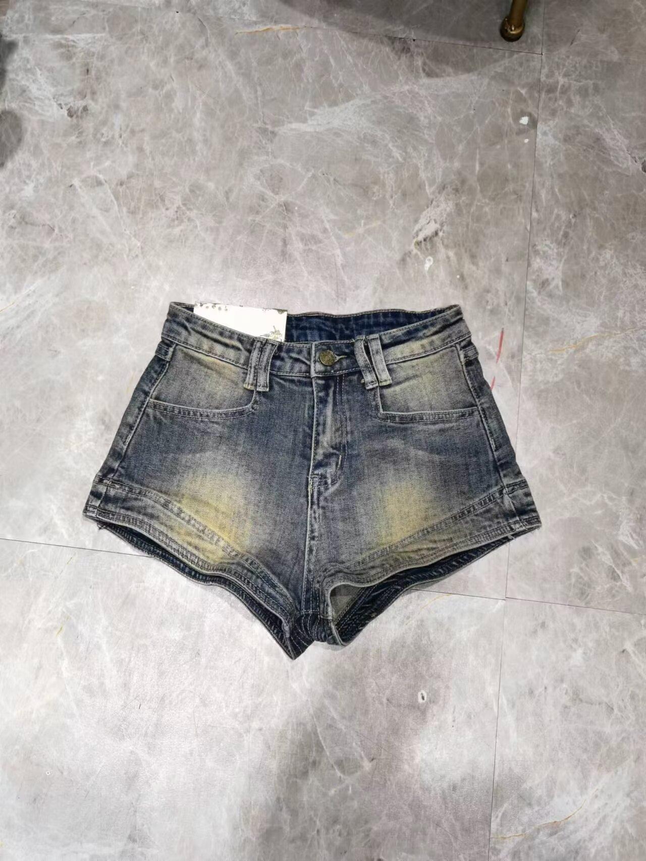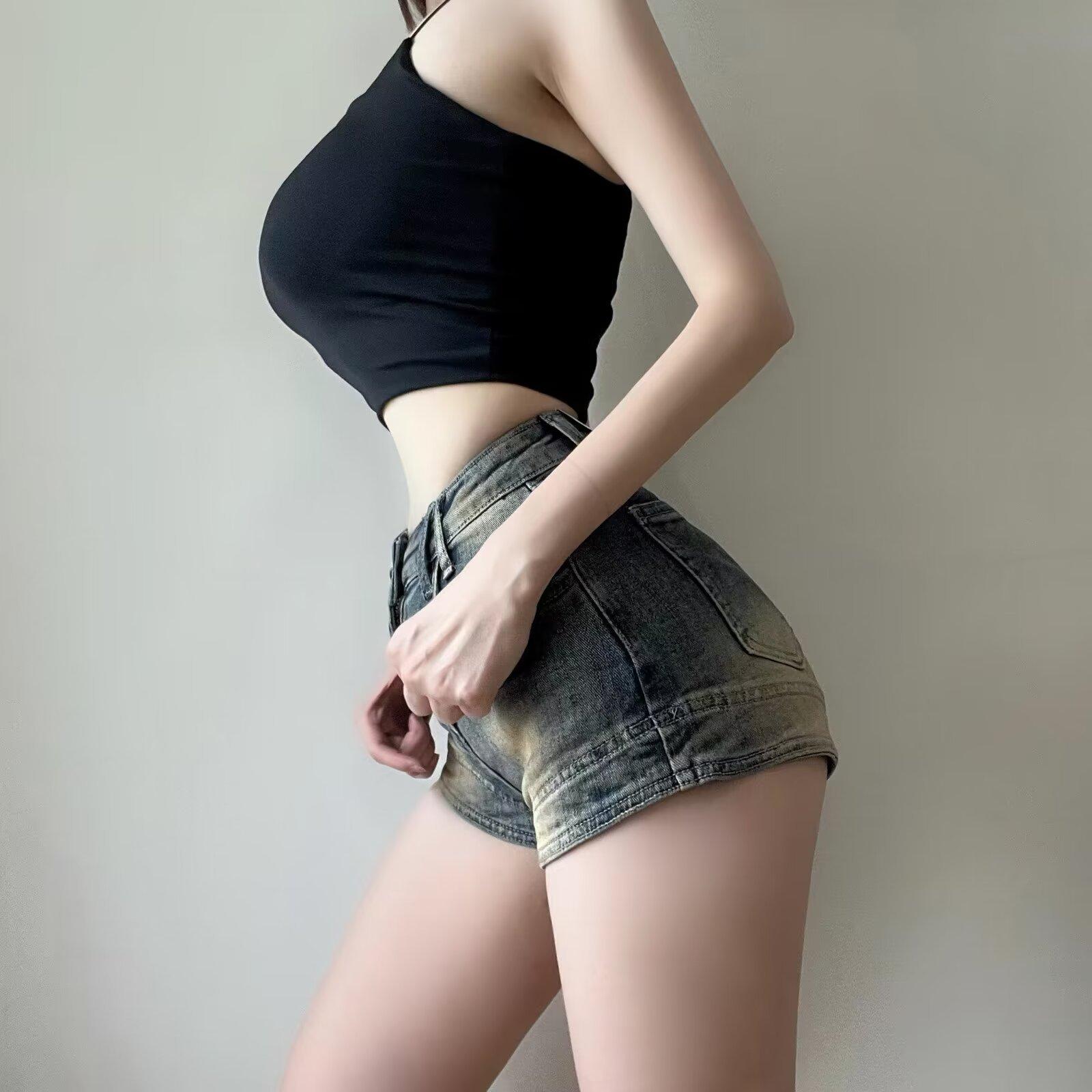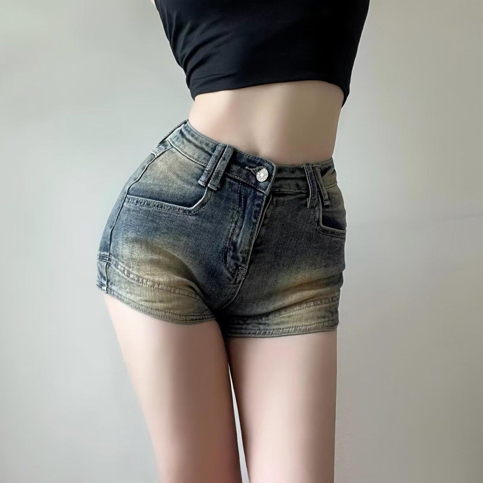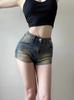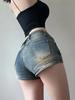 Shorts de mezclilla desgastados retro americanos para chica sexy para mujer 2025 verano nuevo diseño cintura alta look adelgazante pantalones cortos
